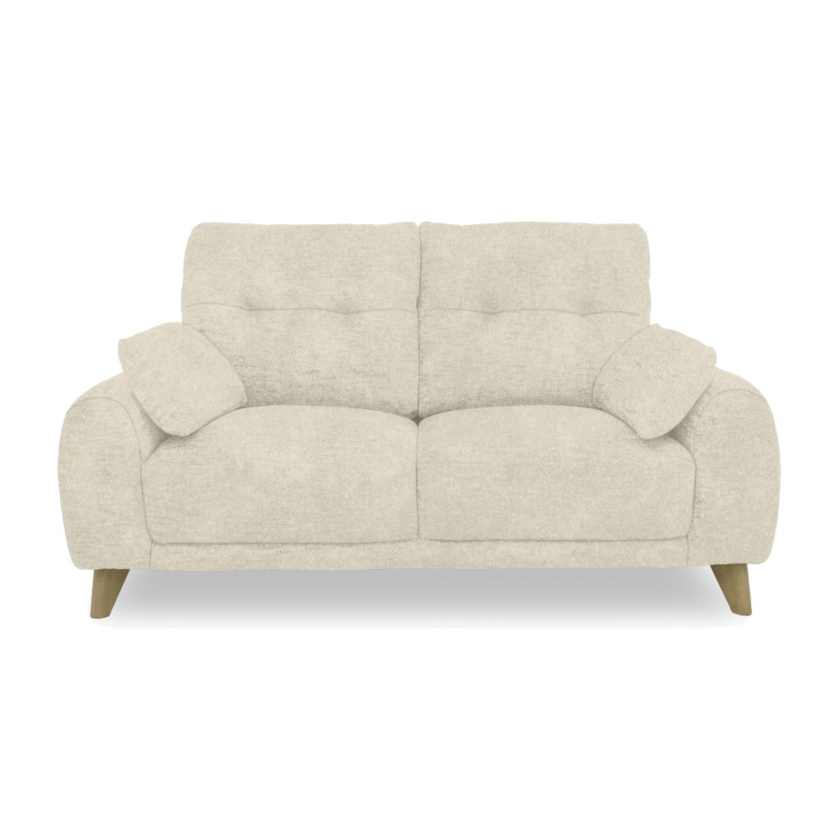 Clean, calming and neutral, Scandi style is everyone’s favourite way to bring home a relaxed feel. Our modern Scandi-inspired Malmo range does exactly that, and adds a touch of luxury to the mix. That comes in the shape of elevated comfort – sprung suspension promises all-over support and wide seats offer generous loungeability – as well as a suite of cool design touches. These include the soft, rounded arm bolsters that come with every sofa and armchair, the simple buttoning that adorns back cushions, and the tapered wooden legs in a choice of finishes. Handcrafted exclusively for Furniture Village, Malmo is available in a huge selection of lovely textured fabrics and 100% leather. All the cool and calm style of Scandi-inspired furniture with modern design touches – that’s our two-seater Malmo sofa. And it’s very comfy too. Why you’ll love it Clean lines meet gentle curves in this modern Scandi-style sofa. Designed for relaxed living with wide and inviting seats. Sprung for all-over support and improved comfort. Simple buttoning detail complements this sofa’s understated look. 2 arm bolster cushions included. Choice of dark and light wood finish for the legs. Huge selection of beautiful and fashionable upholstery fabrics. Also available with 100% leather upholstery. Handcrafted for Furniture Village. This 2-seater sofa is part of our Malmo range. What you need to know Medium comfort level. Seat suspension: spring. Seat cushioning: foam, fibre and inner coil. Seat cushioning is fixed. Back suspension: webbing. Back cushioning: loose fibre. Back cushioning is fixed. Arm cushioning: foam and fibre. Back cushions and feet are removable for ease of access. Fixed seat and back cushions require smoothing and straightening regularly. To smooth and straighten fixed cushions, punch the back cushion’s top two corners and the seat cushion’s outer two corners, and pinch outwards. Some fabrics can show wear on areas of more use or in direct sunlight. Clean regularly using a soft brush or vacuum with the curtain attachment. Deal with any spills promptly. Professional cleaning advised for oil- and grease-based stains. Please read our upholstery care guide for more advice. Item code: MALM2S--FAB-014