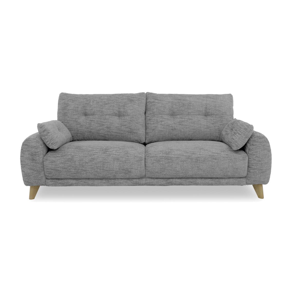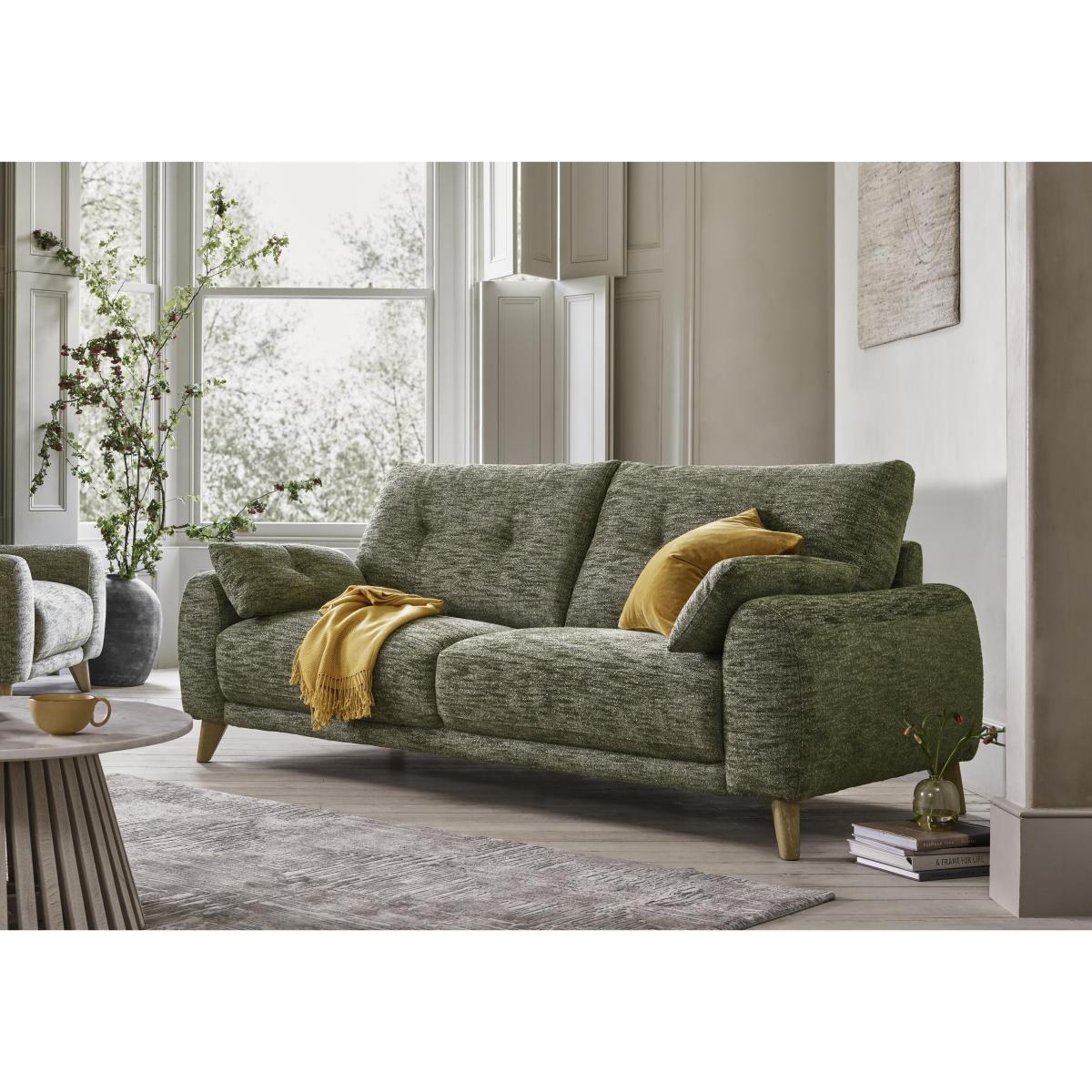 Clean, calming and neutral, Scandi style is everyone’s favourite way to bring home a relaxed feel. Our modern Scandi-inspired Malmo range does exactly that, and adds a touch of luxury to the mix. That comes in the shape of elevated comfort – sprung suspension promises all-over support and wide seats offer generous loungeability – as well as a suite of cool design touches. These include the soft, rounded arm bolsters that come with every sofa and armchair, the simple buttoning that adorns back cushions, and the tapered wooden legs in a choice of finishes. Handcrafted exclusively for Furniture Village, Malmo is available in a huge selection of lovely textured fabrics and 100% leather. Relaxed, modern and utterly stylish, our Malmo three-seater sofa is a modern take on popular Scandi style. In a wide choice of beautiful fabrics. Why you’ll love it Clean lines meet gentle curves in this modern Scandi-style sofa. Designed for relaxed living with wide and inviting seats. Sprung for all-over support and improved comfort. Simple buttoning detail complements this sofa’s understated look. 2 arm bolster cushions included. Choice of dark and light wood finish for the legs. Huge selection of beautiful and fashionable upholstery fabrics. Also available with 100% leather upholstery. Handcrafted for Furniture Village. This 3-seater sofa is part of our Malmo range. What you need to know Medium comfort level. Seat suspension: spring. Seat cushioning: foam, fibre and inner coil. Seat cushioning is fixed. Back suspension: webbing. Back cushioning: loose fibre. Back cushioning is fixed. Arm cushioning: foam and fibre. Back cushions and feet are removable for ease of access. Fixed seat and back cushions require smoothing and straightening regularly. To smooth and straighten fixed cushions, punch the back cushion’s top two corners and the seat cushion’s outer two corners, and pinch outwards. Some fabrics can show wear on areas of more use or in direct sunlight. Clean regularly using a soft brush or vacuum with the curtain attachment. Deal with any spills promptly. Professional cleaning advised for oil- and grease-based stains. Please read our upholstery care guide for more advice. Item code: MALM3S--LUX-038