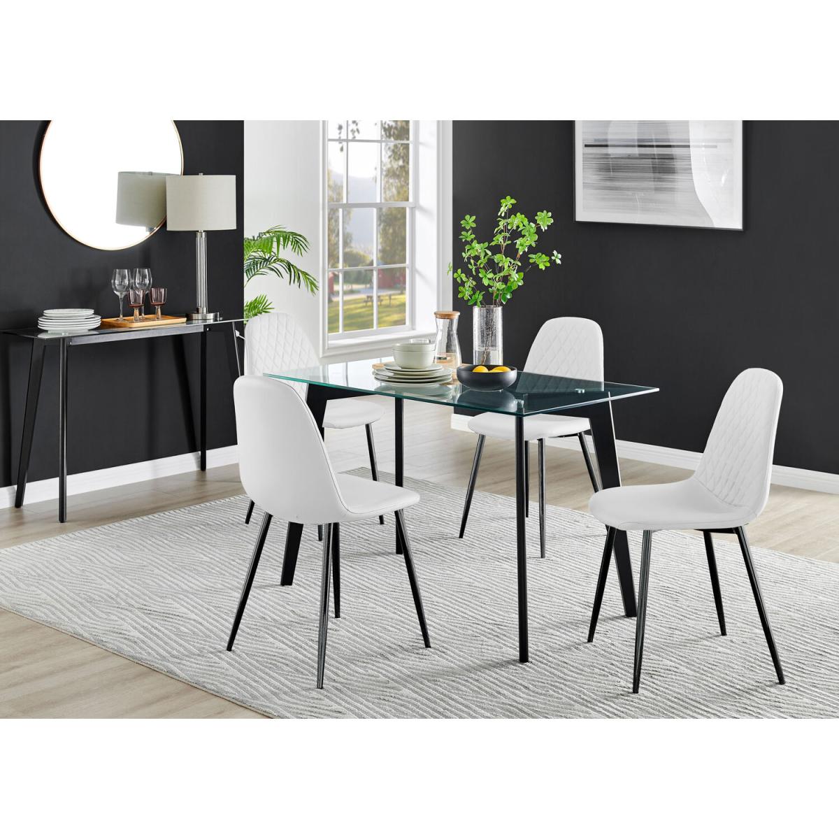 Our Malmo Scandi inspired rectangular glass dining table features simple and effortless clear glass and black wooden legs, perfect for modern homes. This dinner table has a 1cm thick tempered glass tabletop sat on four angled black beech wood legs with rounded edges. It will comfortably seat 4 so perfect for family dinners or for entertaining guests. This design is all about keeping things unfussy and light with that minimalist Industrial look and laid-back Scandinavian touch. This beautifully designed dining table will set the scene for a stylish and contemporary dining room. Want to complete the look Shop the rest of the Malmo range for on-trend furniture!