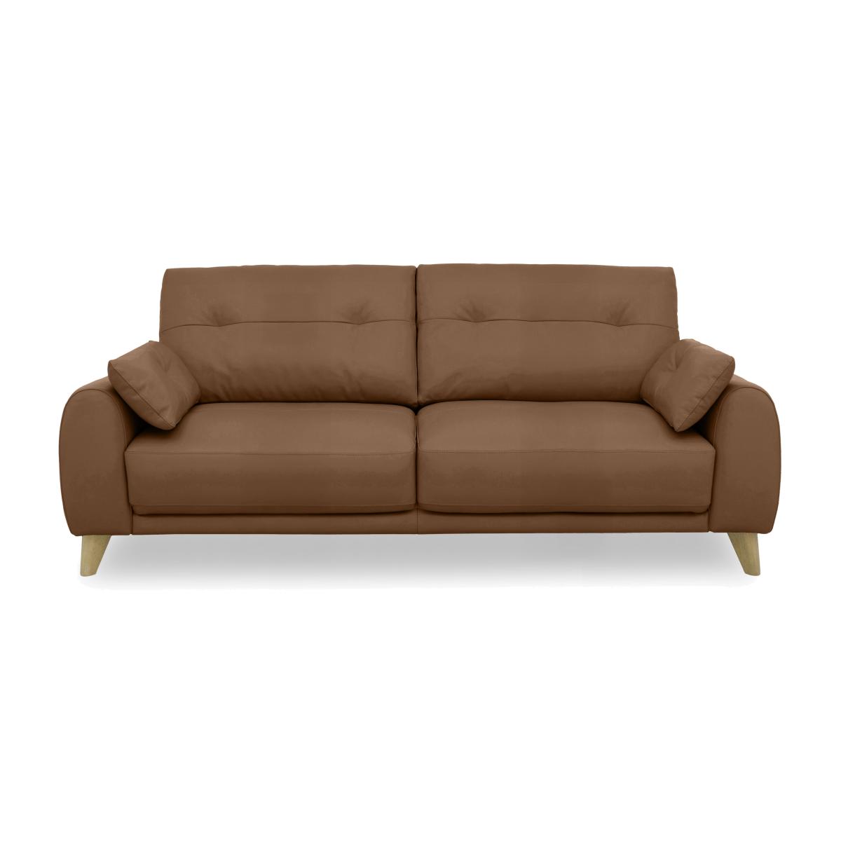 Clean, calming and neutral, Scandi style is everyone’s favourite way to bring home a relaxed feel. Our modern Scandi-inspired Malmo range does exactly that, and adds a touch of luxury to the mix. That comes in the shape of elevated comfort – sprung suspension promises all-over support and wide seats offer generous loungeability – as well as a suite of cool design touches. These include the soft, rounded arm bolsters that come with every sofa and armchair, the simple buttoning that adorns back cushions, and the tapered wooden legs in a choice of finishes. Handcrafted exclusively for Furniture Village, Malmo is available in a huge selection of lovely textured fabrics and 100% leather. Scandi style but in leather? You got it. Modern and relaxed, this very cool and very comfortable three-seater sofa is upholstered in a wide choice of leather grades and colours. Only at Furniture Village. Why you’ll love it Clean lines meet gentle curves in this modern Scandi-style leather sofa. Designed for relaxed living with wide and inviting seats. Sprung for all-over support and improved comfort. Simple buttoning detail complements this sofa’s understated look. 2 arm bolster cushions included. Choice of dark and light wood finish for the legs. Wide selection of 100% leather upholstery grades and colours. Handcrafted for Furniture Village. This 3-seater leather sofa is part of our Malmo range. What you need to know Medium comfort level. Seat suspension: spring. Seat cushioning: foam, fibre and inner coil. Seat cushioning is fixed. Back suspension: webbing. Back cushioning: loose fibre. Back cushioning is fixed. Arm cushioning: foam and fibre. Back cushions and feet are removable for ease of access. Fixed seat and back cushions require smoothing and straightening regularly. To smooth and straighten fixed cushions, punch the back cushion’s top two corners and the seat cushion’s outer two corners, and pinch outwards. Leather has unique marks and characteristics with variation in colour and texture. Leather softens with use. Smoothing the tops of leather cushions prevents signs of visual comfort. Please read our upholstery care guide for more advice. Item code: MALM3S--NW-005