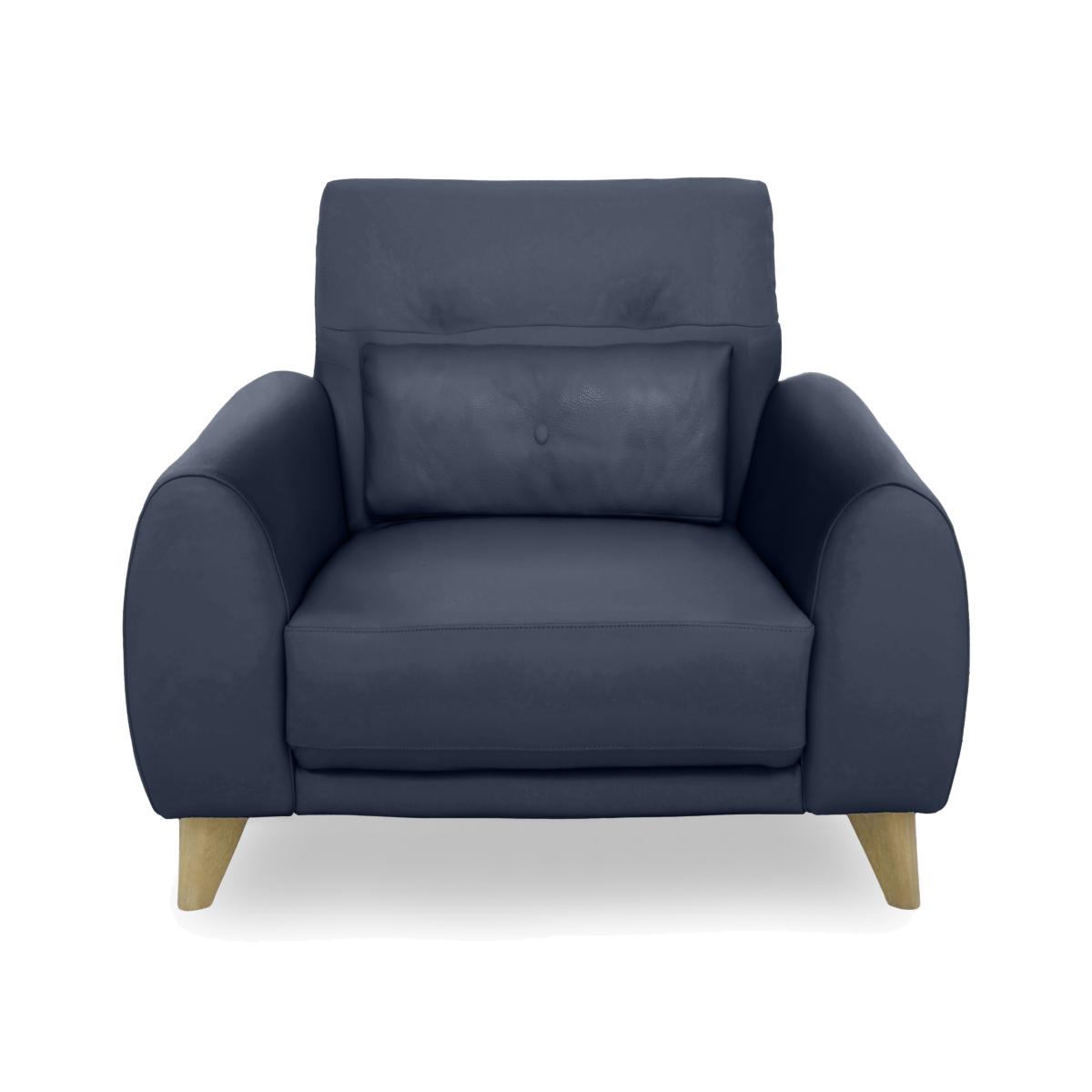 Clean, calming and neutral, Scandi style is everyone’s favourite way to bring home a relaxed feel. Our modern Scandi-inspired Malmo range does exactly that, and adds a touch of luxury to the mix. That comes in the shape of elevated comfort – sprung suspension promises all-over support and wide seats offer generous loungeability – as well as a suite of cool design touches. These include the soft, rounded arm bolsters that come with every sofa and armchair, the simple buttoning that adorns back cushions, and the tapered wooden legs in a choice of finishes. Handcrafted exclusively for Furniture Village, Malmo is available in a huge selection of lovely textured fabrics and 100% leather. Upholstered in 100% leather and showcasing Scandi influences, our Malmo armchair can’t help but make a statement. Its stunning style is matched by fantastic sprung seat comfort. Why you’ll love it Clean lines meet gentle curves in this modern Scandi-style leather armchair. Designed for relaxed living with a wide and inviting seat. Sprung for all-over support and improved comfort. Simple buttoning detail complements this chair’s understated look. 1 arm bolster cushion included. Choice of dark and light wood finish for the legs. Wide selection of 100% leather upholstery grades and colours. Handcrafted for Furniture Village. This leather chair is part of our Malmo range. What you need to know Medium comfort level. Seat suspension: spring. Seat cushioning: foam, fibre and inner coil. Seat cushioning is fixed. Back suspension: webbing. Back cushioning: loose fibre. Back cushioning is fixed. Arm cushioning: foam and fibre. Back cushion and feet are removable for ease of access. Fixed seat and back cushions require smoothing and straightening regularly. To smooth and straighten fixed cushions, punch the back cushion’s top two corners and the seat cushion’s outer two corners, and pinch outwards. Leather has unique marks and characteristics with variation in colour and texture. Leather softens with use. Smoothing the tops of leather cushions prevents signs of visual comfort. Please read our upholstery care guide for more advice. Item code: MALMCHR-NW-007