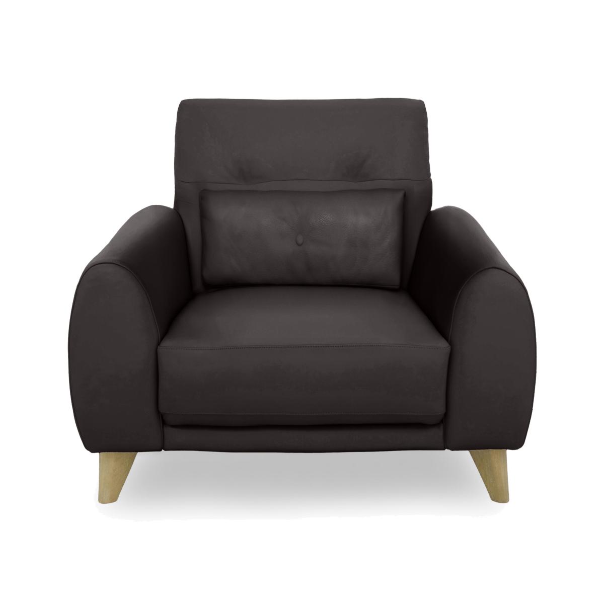 Clean, calming and neutral, Scandi style is everyone’s favourite way to bring home a relaxed feel. Our modern Scandi-inspired Malmo range does exactly that, and adds a touch of luxury to the mix. That comes in the shape of elevated comfort – sprung suspension promises all-over support and wide seats offer generous loungeability – as well as a suite of cool design touches. These include the soft, rounded arm bolsters that come with every sofa and armchair, the simple buttoning that adorns back cushions, and the tapered wooden legs in a choice of finishes. Handcrafted exclusively for Furniture Village, Malmo is available in a huge selection of lovely textured fabrics and 100% leather. Upholstered in 100% leather and showcasing Scandi influences, our Malmo armchair can’t help but make a statement. Its stunning style is matched by fantastic sprung seat comfort. Why you’ll love it Clean lines meet gentle curves in this modern Scandi-style leather armchair. Designed for relaxed living with a wide and inviting seat. Sprung for all-over support and improved comfort. Simple buttoning detail complements this chair’s understated look. 1 arm bolster cushion included. Choice of dark and light wood finish for the legs. Wide selection of 100% leather upholstery grades and colours. Handcrafted for Furniture Village. This leather chair is part of our Malmo range. What you need to know Medium comfort level. Seat suspension: spring. Seat cushioning: foam, fibre and inner coil. Seat cushioning is fixed. Back suspension: webbing. Back cushioning: loose fibre. Back cushioning is fixed. Arm cushioning: foam and fibre. Back cushion and feet are removable for ease of access. Fixed seat and back cushions require smoothing and straightening regularly. To smooth and straighten fixed cushions, punch the back cushion’s top two corners and the seat cushion’s outer two corners, and pinch outwards. Leather has unique marks and characteristics with variation in colour and texture. Leather softens with use. Smoothing the tops of leather cushions prevents signs of visual comfort. Please read our upholstery care guide for more advice. Item code: MALMCHR-NC-009