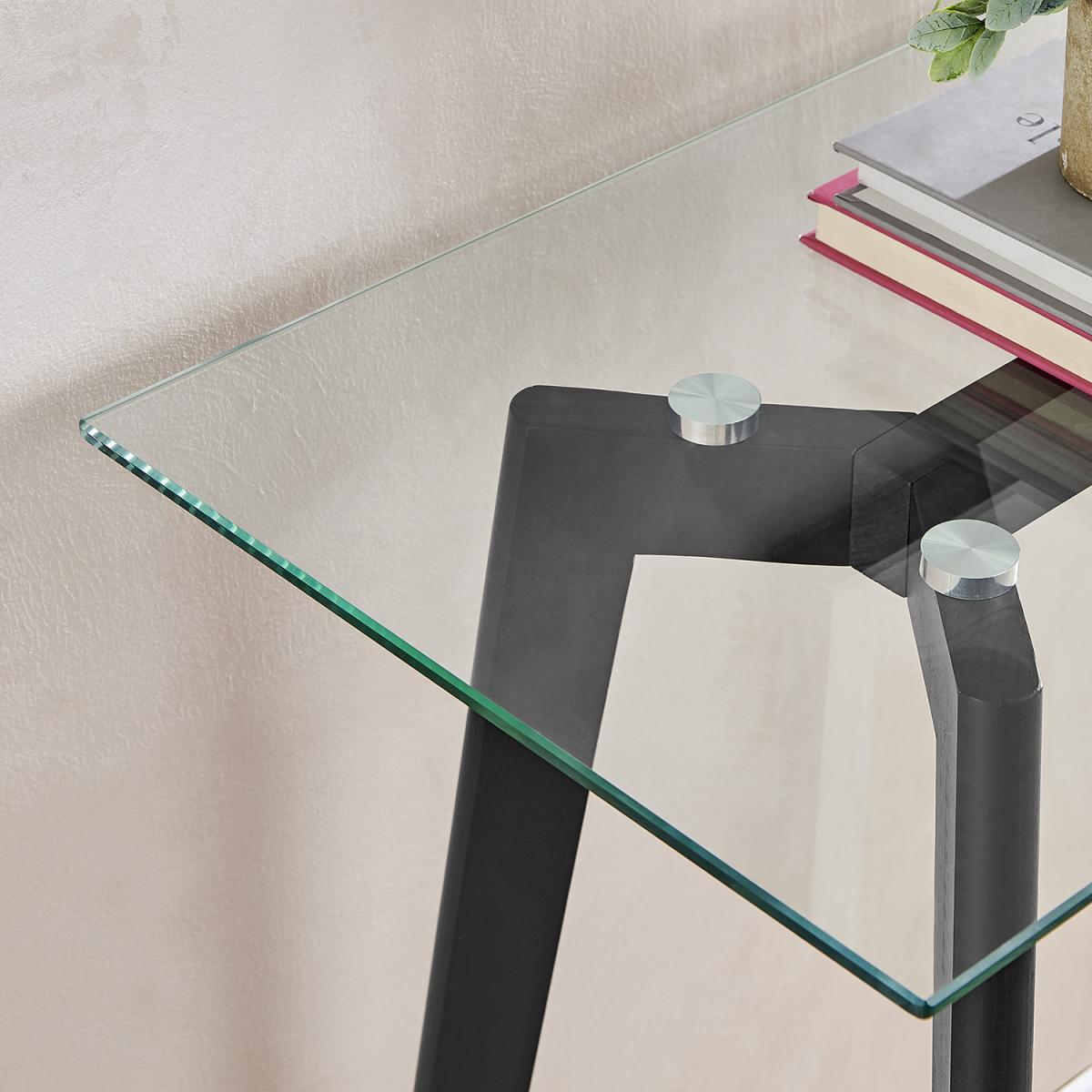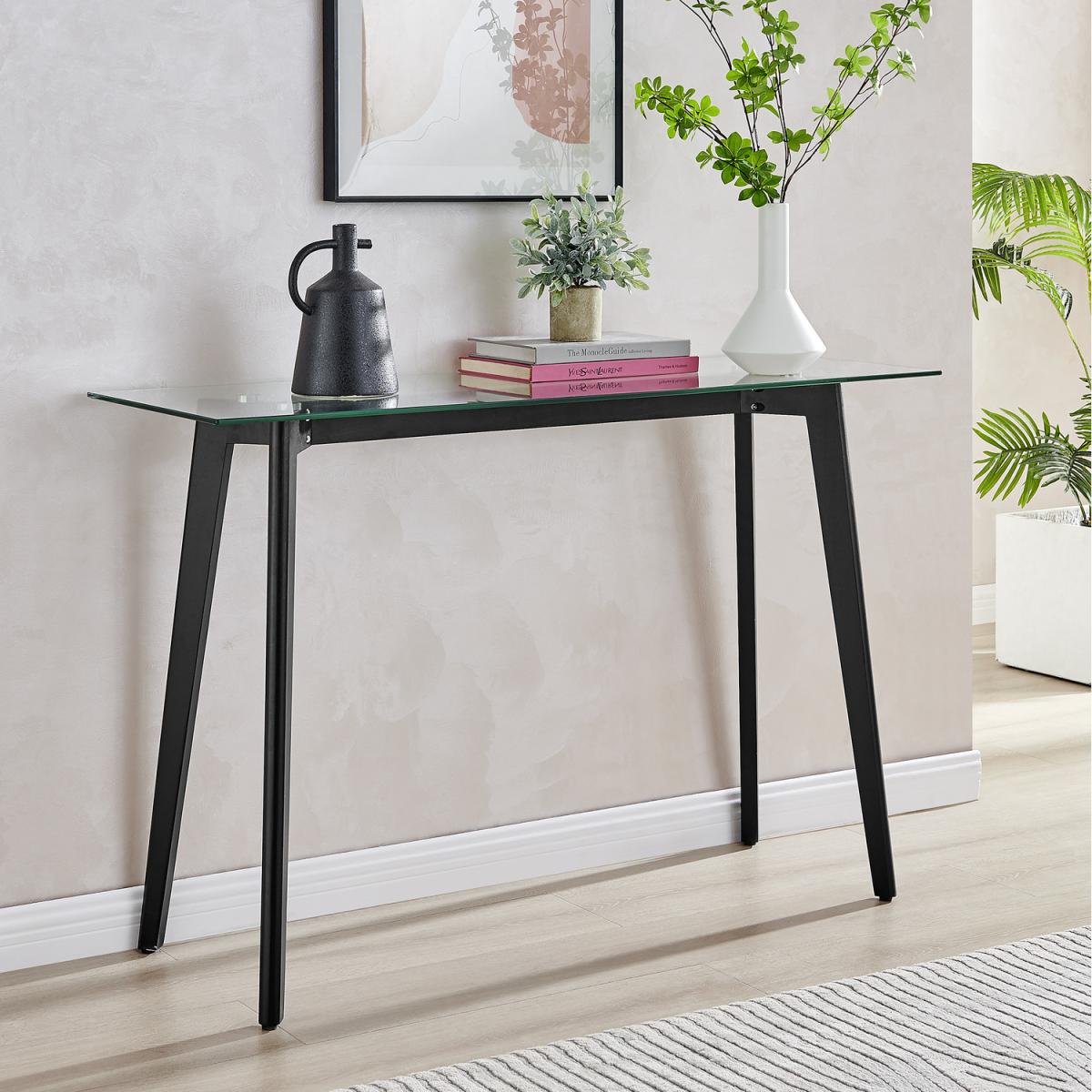 Our Malmo Scandi-inspired glass console table features simple and effortless clear glass and wooden legs, perfect for modern homes. This console table has a 8mm thick tempered glass tabletop sat on four angled beech wood legs with rounded edges. This design is all about keeping things unfussy and light with that minimalist Industrial look and laid-back Scandinavian touch. A great spot for a pot plant, accessories or to pop your house keys in a hallway or living room! This beautifully designed console table will set the scene for a stylish and contemporary home. Want to complete the look? Shop the rest of the Malmo range for on-trend living room furniture!