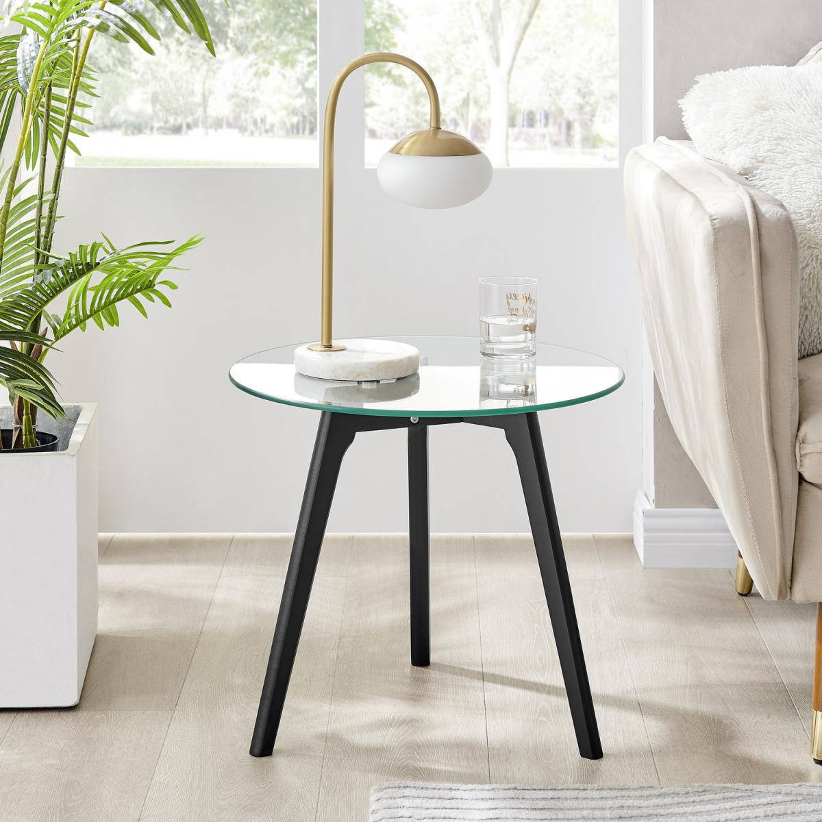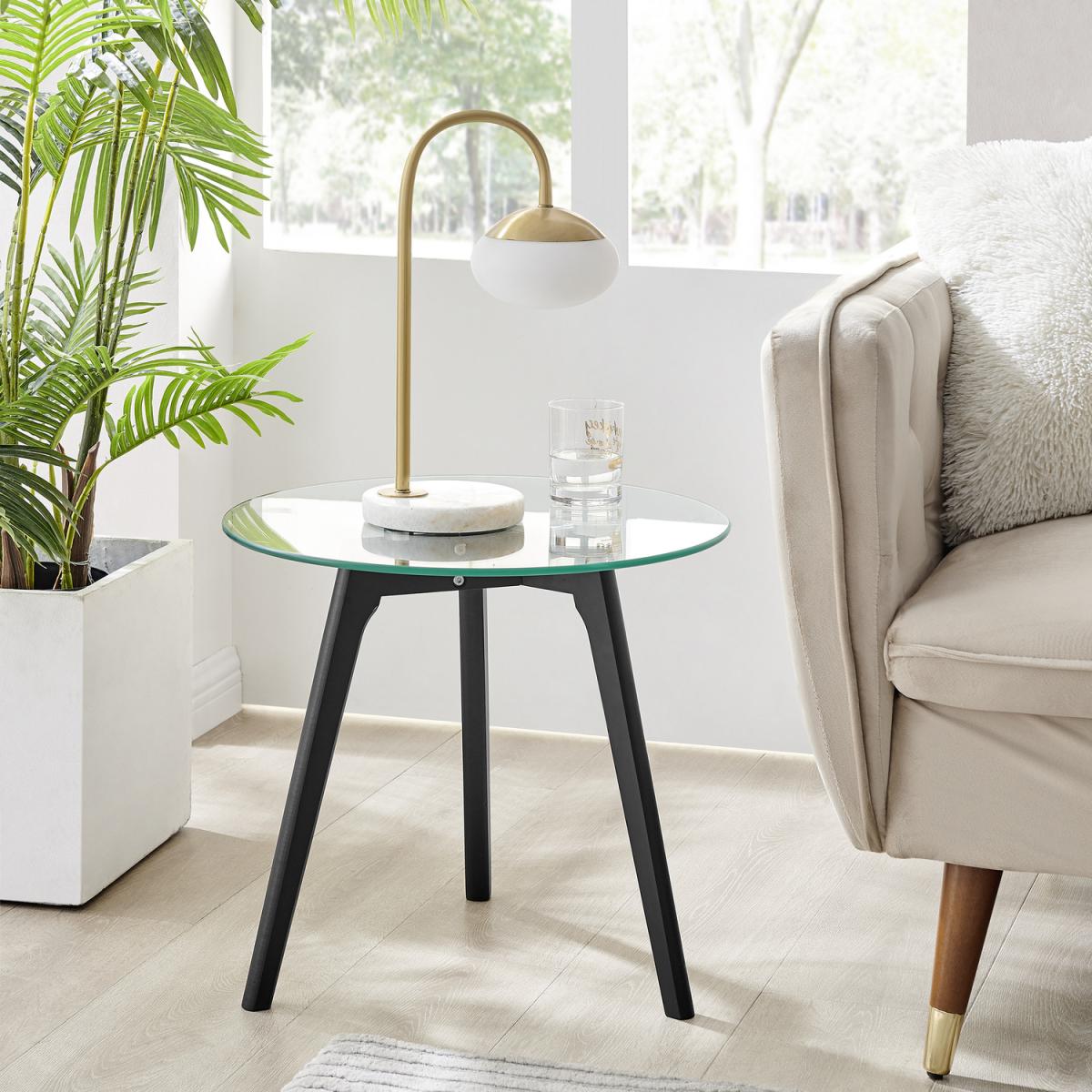 Our Malmo Scandi-inspired round side table features simple and effortless clear glass and wooden legs, perfect for modern homes. This end table has an 8mm thick tempered glass tabletop sat on three angled legs with rounded edges. This design is all about keeping things light, bright and airy with that laid-back Scandinavian minimalist influence. A great spot for a pot plant, the living room essentials and that all-important cup of tea! This beautifully designed side table will set the scene for a stylish and contemporary living room. Want to complete the look? Shop the rest of the Malmo range for on-trend living room furniture!