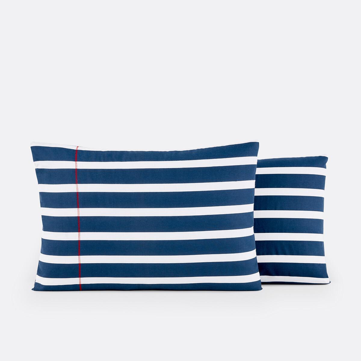 Malo Pillowcase. Nautical styling for the bedroom. ! Cotton is part of our daily lives. We love it for its suppleness and softness. Easy Care, it is ideal for the beds of young and old alike!Product Details • 100% cotton • 144 thread count • Marine striped print • Contrasting topstitching on one side. Care Advice • Machine washable at 60°C • By washing your laundry at 40°C instead of 60°C, you limit energy consumption. Dimensions • 50 x 70cm • 63 x 63cm • OEKO-TEX® Standard 100. Standard 100 certification by OEKO-TEX® tests textile products for harmful substances via an independent, international label.