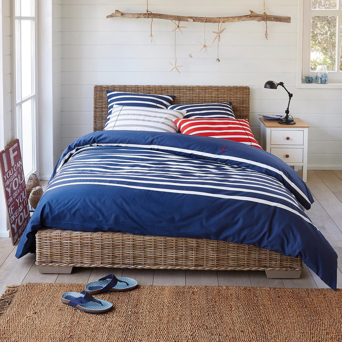 Malo Striped Duvet Cover. Nautical styling for the bedroom. ! Cotton is part of our daily lives. We love it for its suppleness and softness. Easy Care, it is ideal for the beds of young and old alike!Product Details • 100% cotton • 144 thread count • Envelope-style opening • Marine striped print • Marine anchor embroidered on the front. Care Advice • Machine washable at 60°C • By washing your laundry at 40°C instead of 60°C, you limit energy consumption. Dimensions • 140 x 200cm • 200 x 200cm • 240 x 220cm • 260 x 240cm • OEKO-TEX® Standard 100. Standard 100 certification by OEKO-TEX® tests textile products for harmful substances via an independent, international label.
