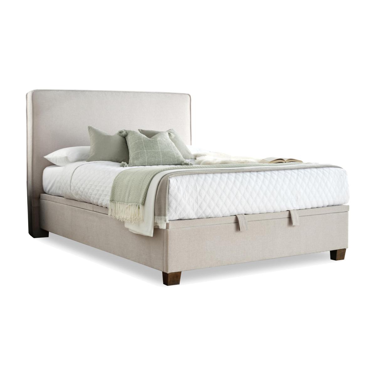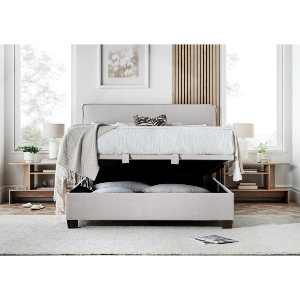 Effortlessly stylish, this ottoman bed frame’s cushioned headboard is elegantly simple and adorned only with piped edging. You’ll love the look and appreciate all that roomy underbed storage space. Why you'll love it Less is more with this fashionably understated ottoman storage bed frame. Relaxed modern-style headboard with piped edges is luxuriously cushioned. With integrated feet, the finish is seamless. Meticulously tailored with hand-finished upholstery. In a choice of colours. Dark wood foot end feet. Spacious underbed compartment for bedding, pillows and clothing. Hydraulic lift system makes the ottoman storage space so easy to open and close. Platform top base aids ventilation for cooler sleep. Safety bar prevents accidental closure. Made with sustainably sourced wood. In double, king and super king bed sizes. This ottoman bed frame is part of the Furniture Village bed frame collection. What you need to know Mattress sold separately. Maximum mattress weight is 50 kg for double, 65 kg for king and 70 kg for super king. Please keep hands clear of the mechanism when opening and closing the ottoman. Do not sit on this ottoman bed frame when opening. Clean regularly using a soft brush or vacuum with the curtain attachment. Deal with any spills promptly. Professional cleaning advised for oil- and grease-based stains. Some fabrics can show wear on areas of more use or in direct sunlight. Flattening and shading of heavy wear areas on pile fabrics like velvet is unavoidable. Be sure to brush pile fabrics only in the direction of the pile. Please read our upholstery care guide for more advice. Item code: MALTEO60MCY-001