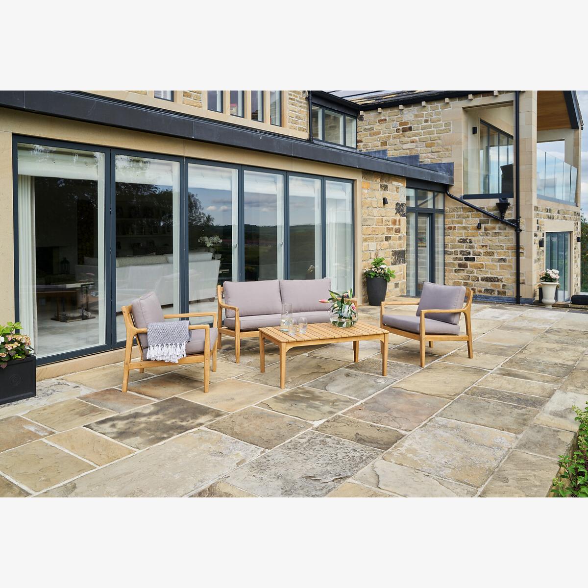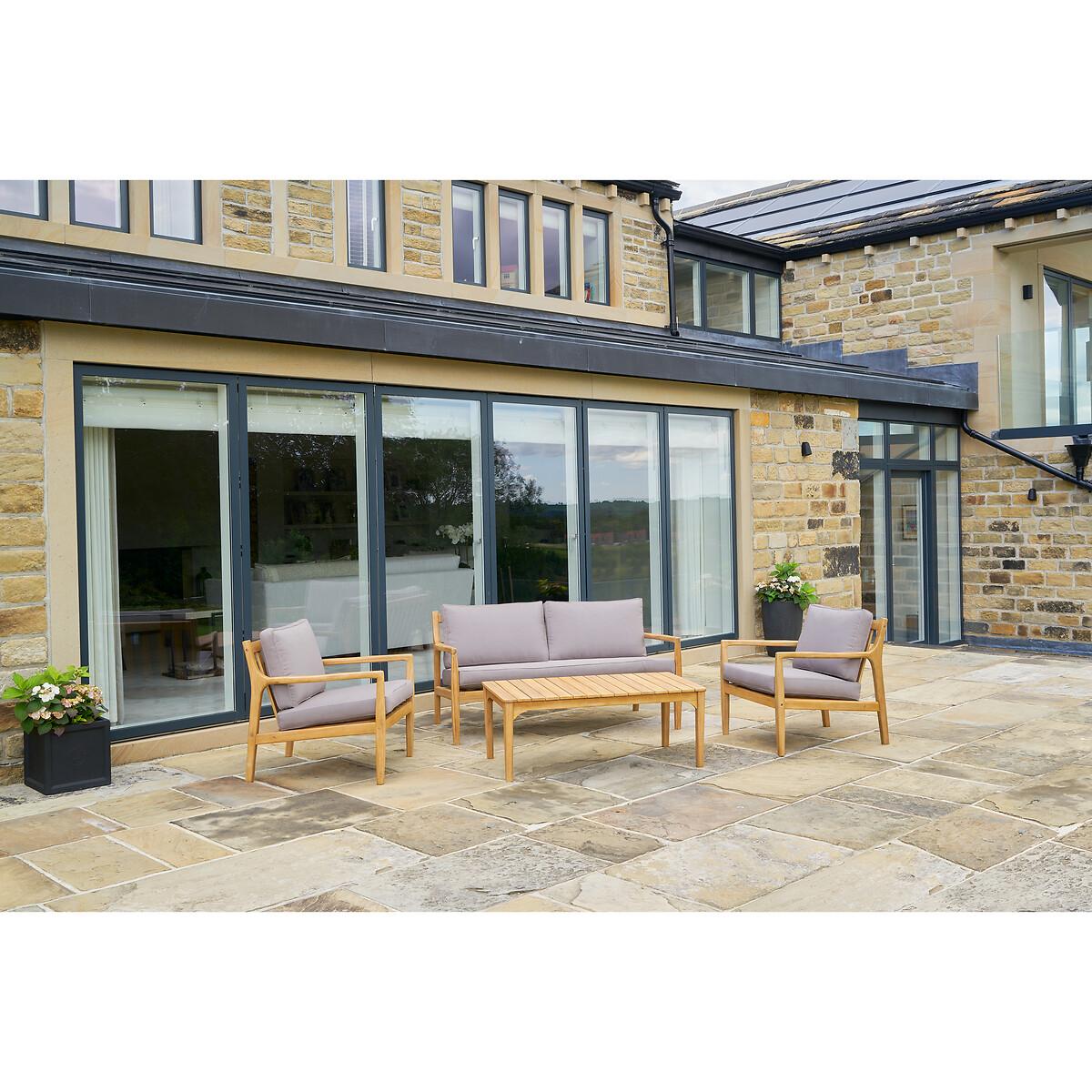 Please note: this product cannot be delivered to all Offshore Islands, Northern Ireland or Republic of Ireland - postcodes starting with; AB, BT, DD, IV, KW1-14, PA21-38, PH, TR17-27 & ALL ROI.The Malta Seating Set offers the same refined, stunning design as the corner set but in an alternate seating combination. It includes a two-seater sofa, two armchairs and a coffee table, a set that will give your garden a contemporary update with its modern natural finish, Acacia wood frame and complemented with soft grey cushions. The Malta set can complement any outdoor space or indoor setting alike, and is equally perfect for use in a conservatory or garden room. With its sleek, slimline wooden frame, it is not distinctly recognised as outdoor furniture making it multifunctional and allowing it to be useful even when the weather isn’t quite sunny enough for sitting outside. The high-quality materials ensure the set is durable and weatherproof making it virtually maintenance-free and long-lasting. All cushions are fire retardant; further ensuring that all details of this set are of the highest quality. Product Dimensions:Sofa: 148cmx75cmx73cmChair:75cmx73cmx73cm. Coffee Table:110cmx60cmx42cm. Packaged Dimensions:Parcel 1:78cmx 76.5cmx 33cm Weight: 14kg Parcel 2:78cmx 77cmx 33cm Weight: 14kg Parcel 3:140cmx 77cmx 33cm Weight: 24kg Parcel 4:112cmx 64cmx 13cm Weight: 12kg. Please note this item is a large piece of furniture that will require some self assembly. Please ensure you have space to receive delivery. This product will be dispatched by one of our trusted suppliers. You’ll be contacted by their selected courier about your delivery. PACIF01