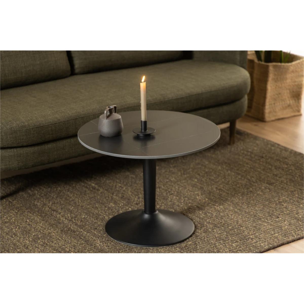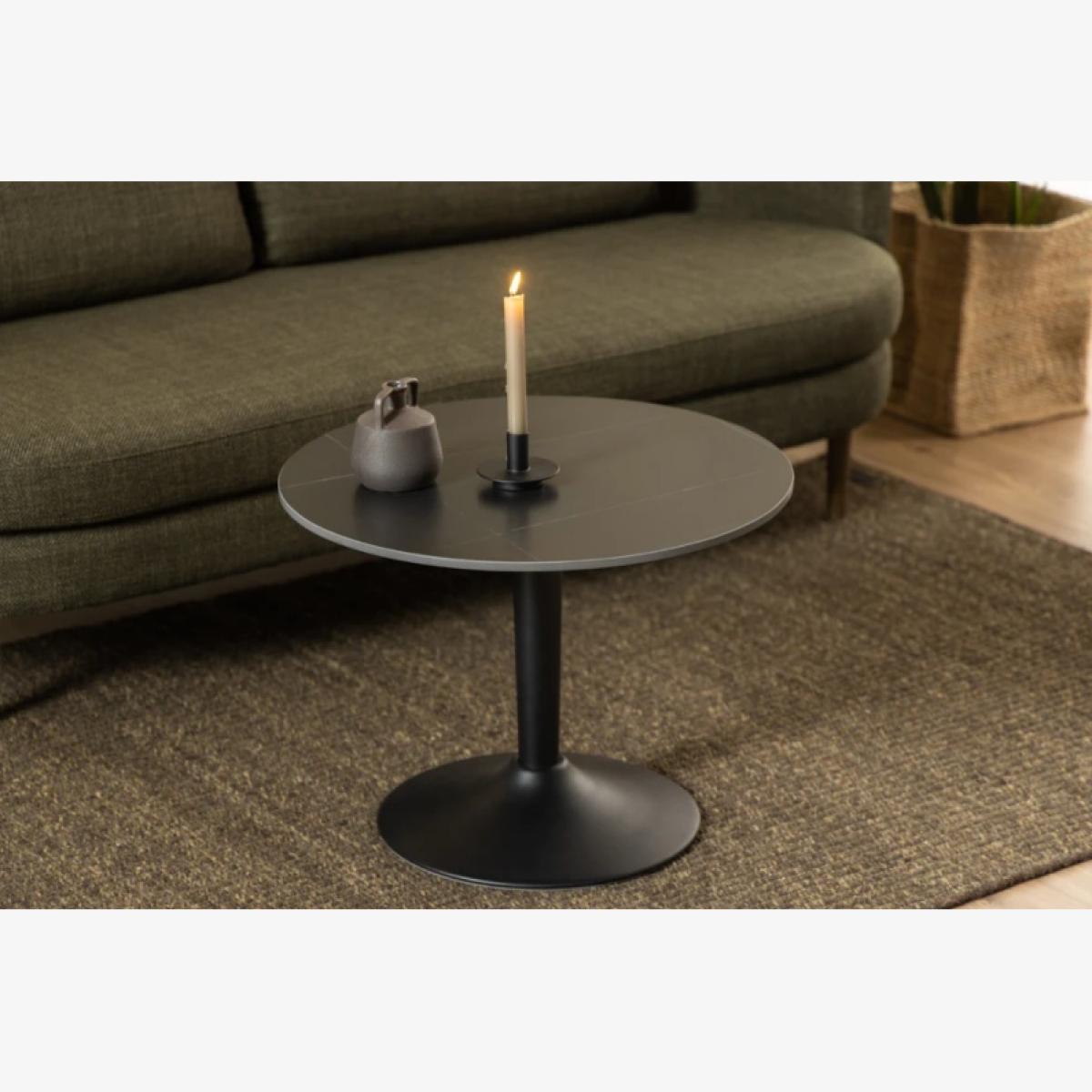 Reinvigorate your home with sleek and contemporary Malta collection. Boasting a minimalist yet stand-out design, this range will easily integrate into a range of modern aesthetics. Create many cosy moments around the Malta coffee table. Featuring a large round tabletop with a slim trumpet base, this table radiates refined excellence. It’s the perfect balance of circular and straight lines that create an uncluttered and elegant solution that will be a real talking point in any home. It comes in a stunning matt black and has an incredibly durable ceramic tabletop that is both heat-resistant and scratch-resistant. If you love this look, why not buy the matching furniture available for a more cohesive look to your home. Key Features: Circular coffee table Trumpet base Ceramic tabletop Heat and scratch resistant Colour:Matt black Matching furniture available Dimensions: Height: 45cm Width: 60cm or 90cm Diameter All screens vary in colour reproduction and whilst every effort has been made to display the colour as accurately as possible it is for guidance only.