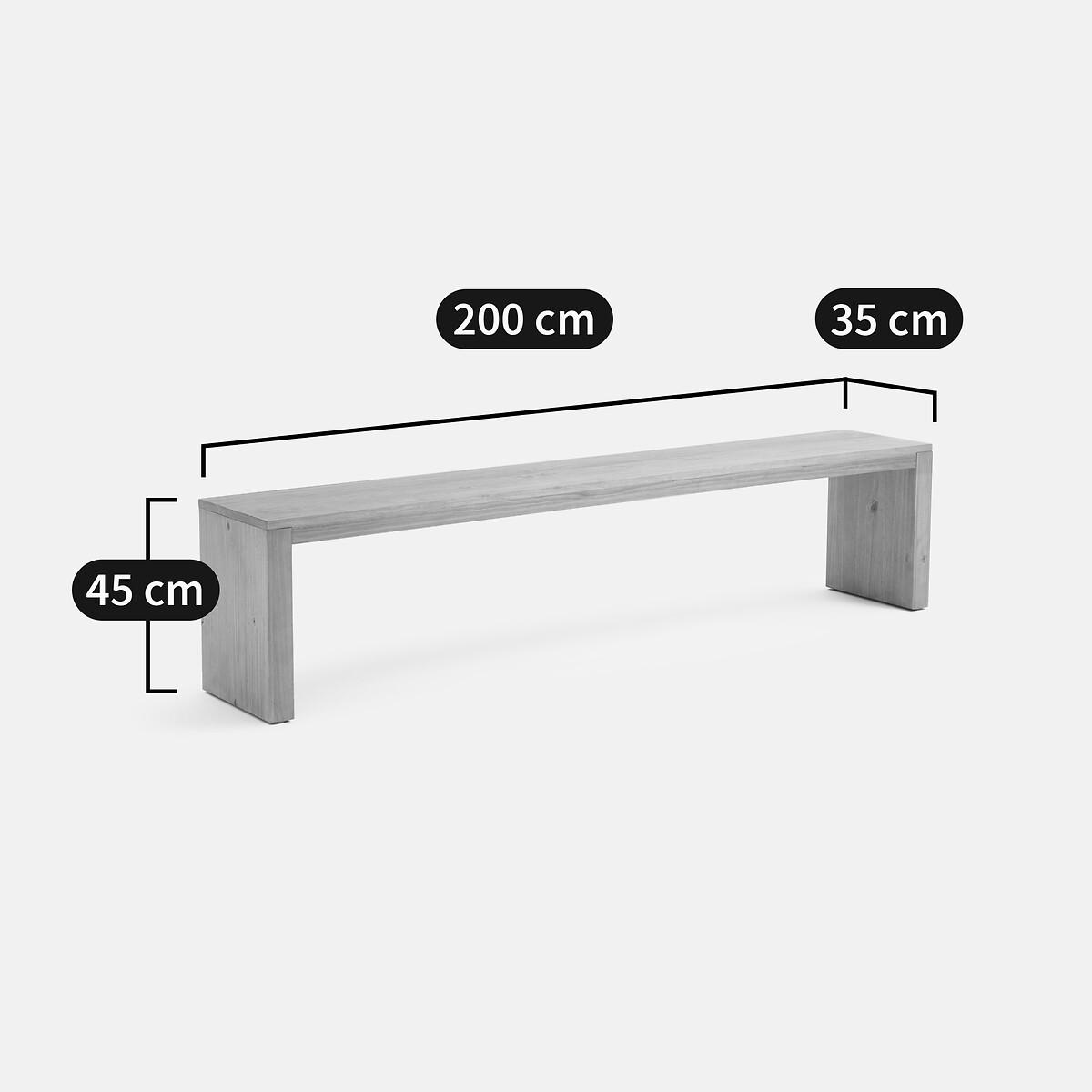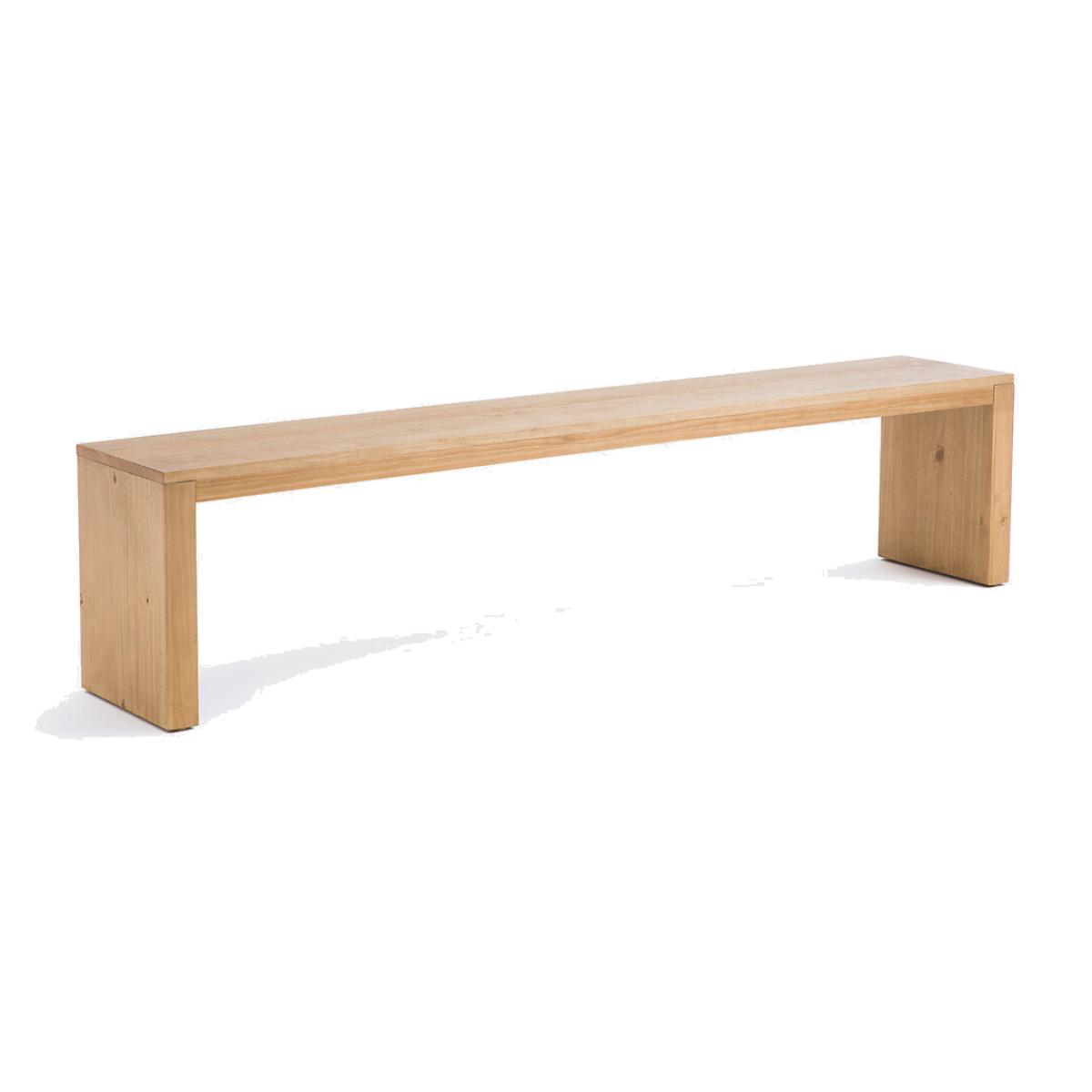 The Malu bench in solid pine is a versatile addition to any room in your home. Whether it's for when you're putting your shoes on in the hallway, at the end of a bed, in a bedroom or, of course, socialising at the dinner table, its 2-metre length offers a generous, welcoming space. Product Details • 3-Seater • Solid pine with a waxed finish • FSC® Mixed certified wood • Top thickness 5cm • Feet thickness 3cm • Plastic pads on feet. Dimensions • Width: 35cm • Height: 45cm • Depth: 200cm • Weight: 15kgDelivery:. Sold pre-assembled. Available for home delivery. Note! Please check that all access points are large enough to accommodate your delivery (doors, stairs, lifts). • WOOD FROM MORE SUSTAINABLY MANAGED FORESTS AND CONTROLLED SOURCES. FSC® Mix wood contains at least 70% FSC® certified and/or recycled wood, the remainder being FSC® controlled wood. Dimensions and weight of parcel • 2 parcels • Parcel 1 : L200 x H6 x D35cm, 10.5kg • Parcel 2 : L44 x H12 x D35cm, 4.5kg