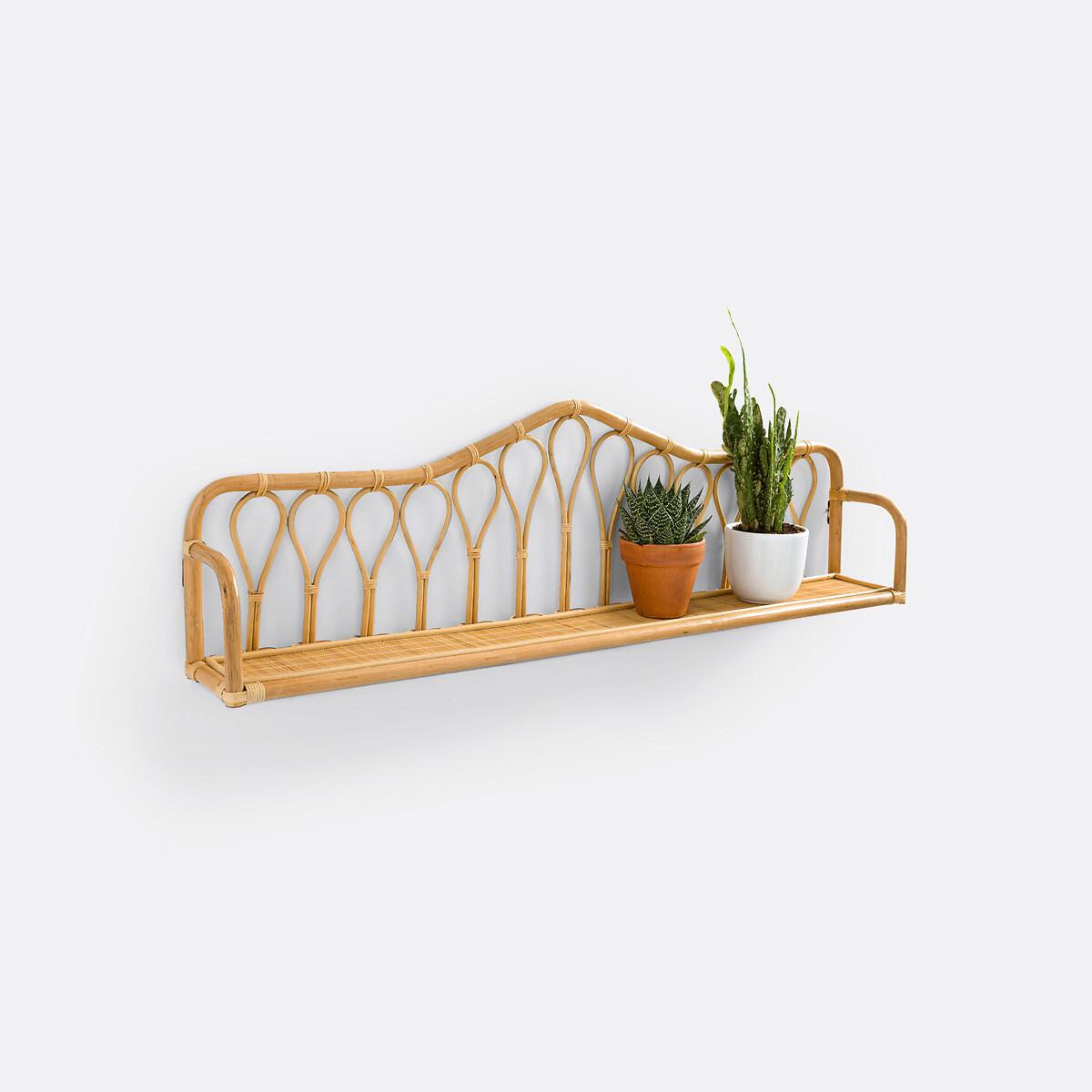 Vintage look, bohemian style and artisanal manufacturing, this is the Malu shelf! Ideal for showcasing your favourite decorative objects or storing your books. Very on-trend, rattan is now present everywhere. Product Details • Made from rattan • Fixings in iron • To be fixed to the wall (screws and plugs not supplied)Quality Info • Handcrafted, each shelf is unique: colours and dimensions may vary from product to product. Dimensions • Length: 100cm • Max height: 30cm • Depth: 14cm