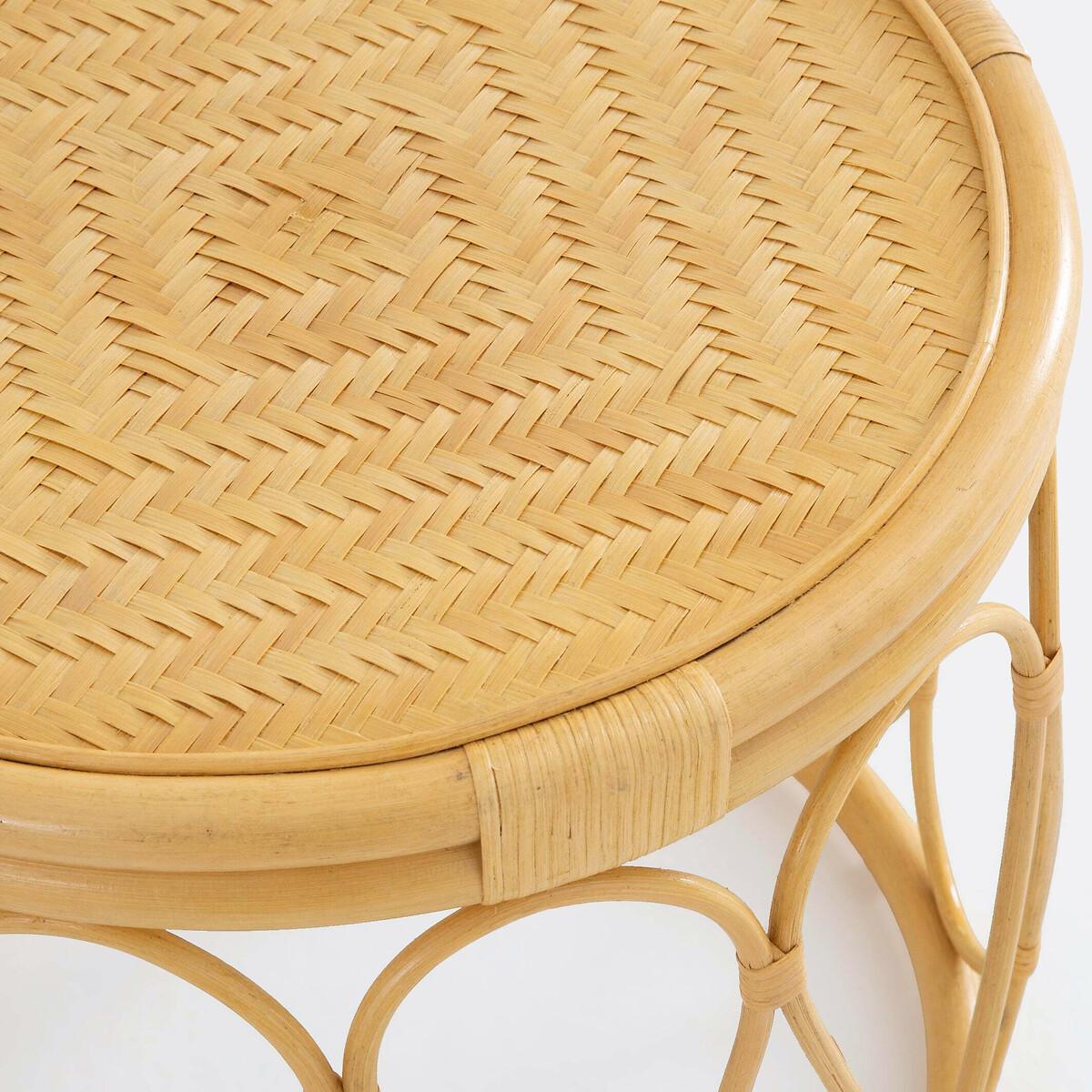 The Malu bedside table. The rattan Malu table has plenty of charm thanks to its natural finish, and will work well in a bedroom or living room as a side table. Product Details • Cylindrical shape • Structure in rattan cane and woven rattan, top in woven bamboo • Nitrocellulose varnish finish • Plastic pads on feet • Artisanal craftsmanship • Supplied ready assembled. Discover the rest of the Malu collection online. Dimensions • Diameter: 45cm • Height: 45cm • WOOD FROM SUSTAINABLY MANAGED FORESTS. FSC® certified wood comes from forests that are environmentally, socially and economically well managed. Home Delivery. Your Malu table is sold pre-assembled. It will be delivered to your door!Note! Please check that all access points are large enough to accommodate your delivery (doors, stairs, lifts).Parcel Dimensions • 47 x 47 x 48cm • 3.4kg