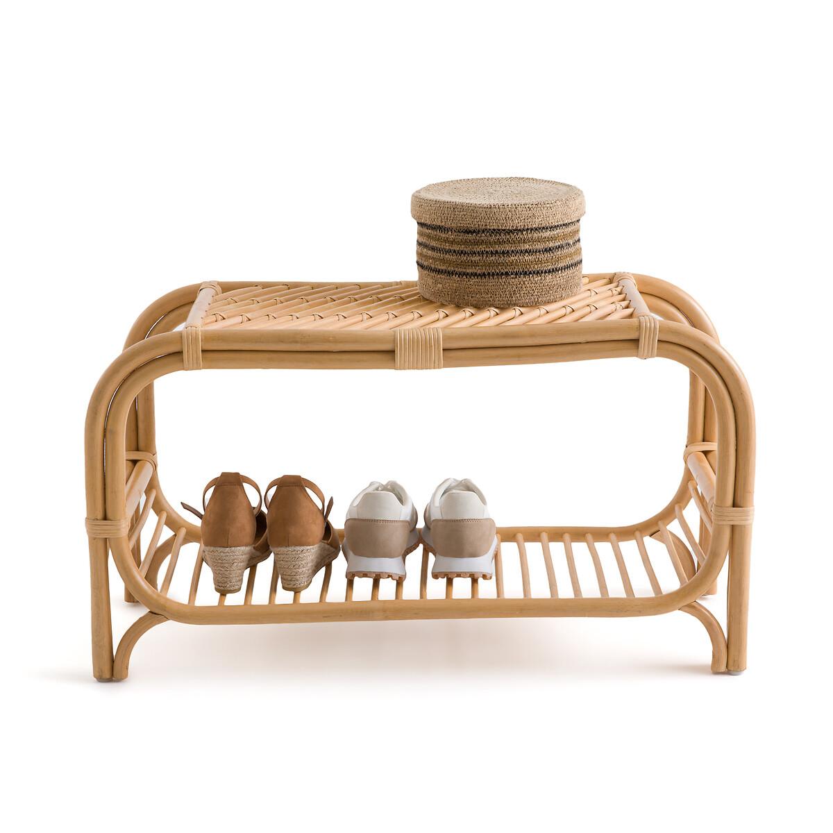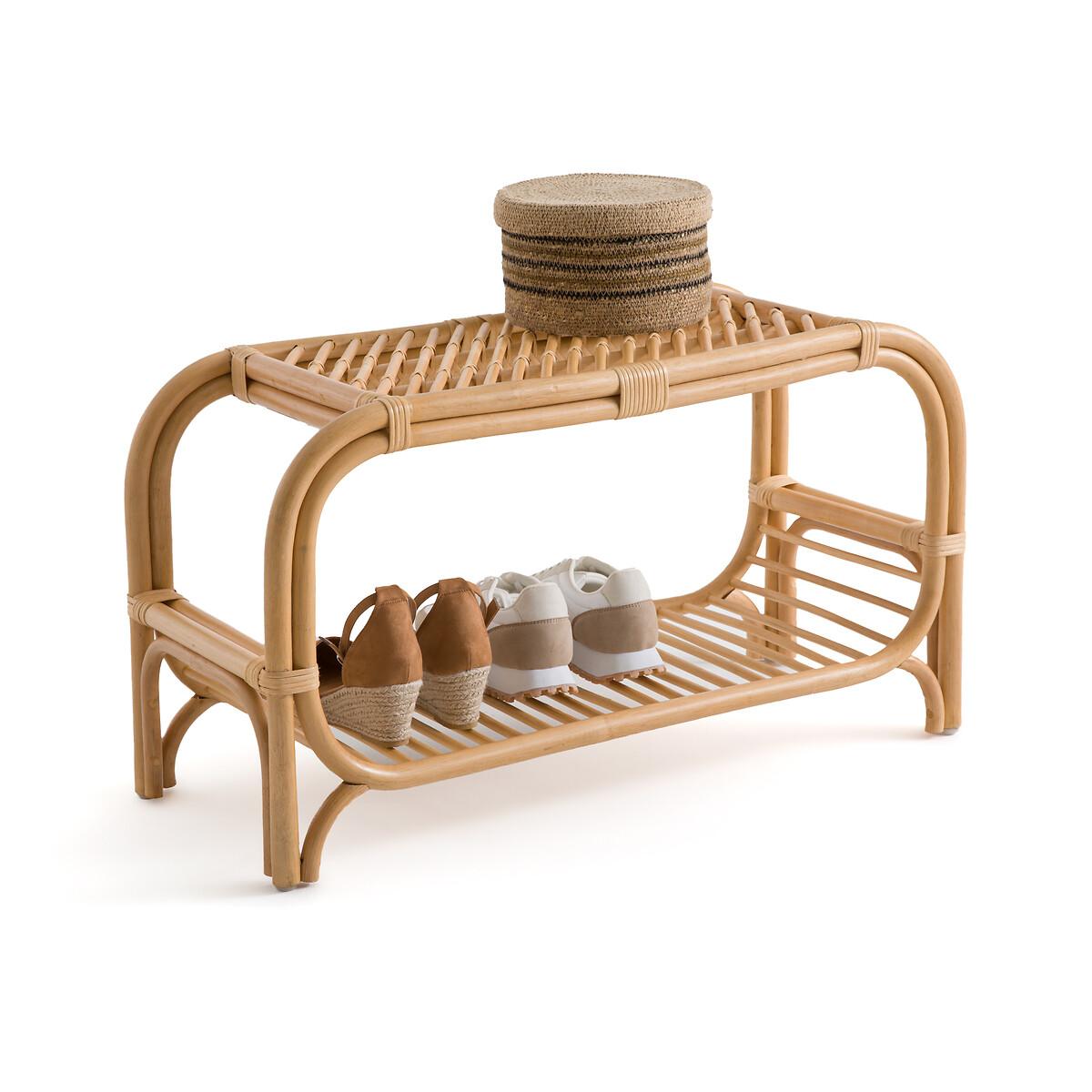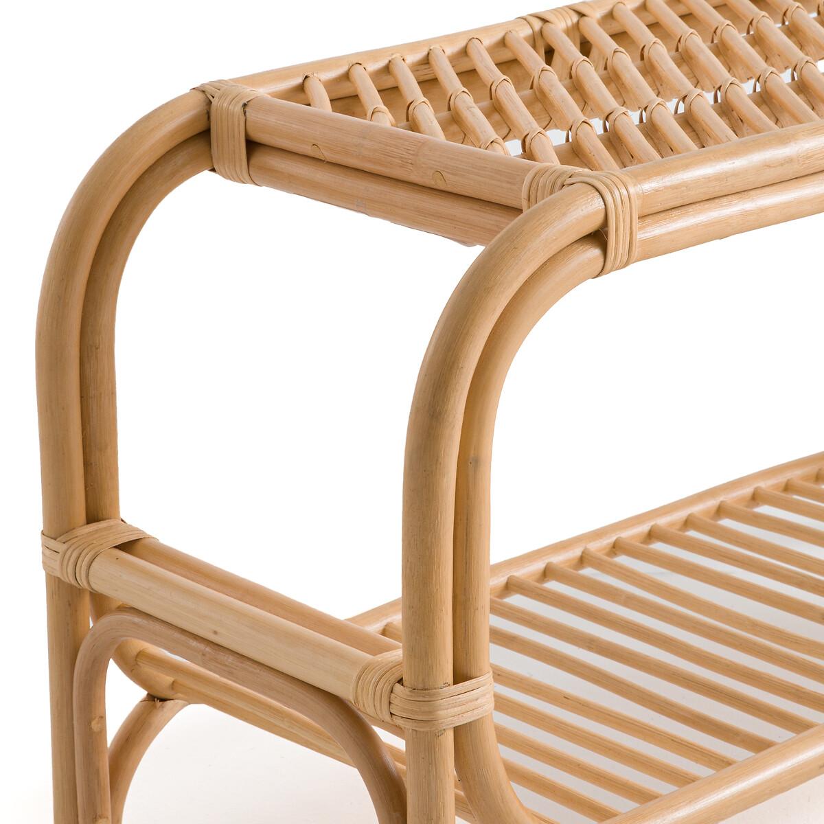 In rattan cane, with a bohemian style and a small format: the Malu bench is ideal for sitting down and taking off your shoes when you get home. Its shelf is perfect for storing shoes. It can also be used at the end of the bed in a bedroom. Decorative and functional. Product Details • In rattan cane with nitrocellulose finish • 1 seat + 1 rounded openwork shelf • Storage: 3 pairs of shoes on the shelf (size 38, without heels and not high)Dimensions. Overall • Width: 78cm • Height: 43cm • Depth: 32cm • Weight: 3kg. Usable space • Seat: L50 x D32cm • Height of legs: 9cmDelivery:. Sold pre-assembled. Note! Please check that all access points are large enough to accommodate your delivery (doors, stairs, lifts).Dimensions and weight of parcel1 parcel • L81 x H45 x D35cm. 4.8kg