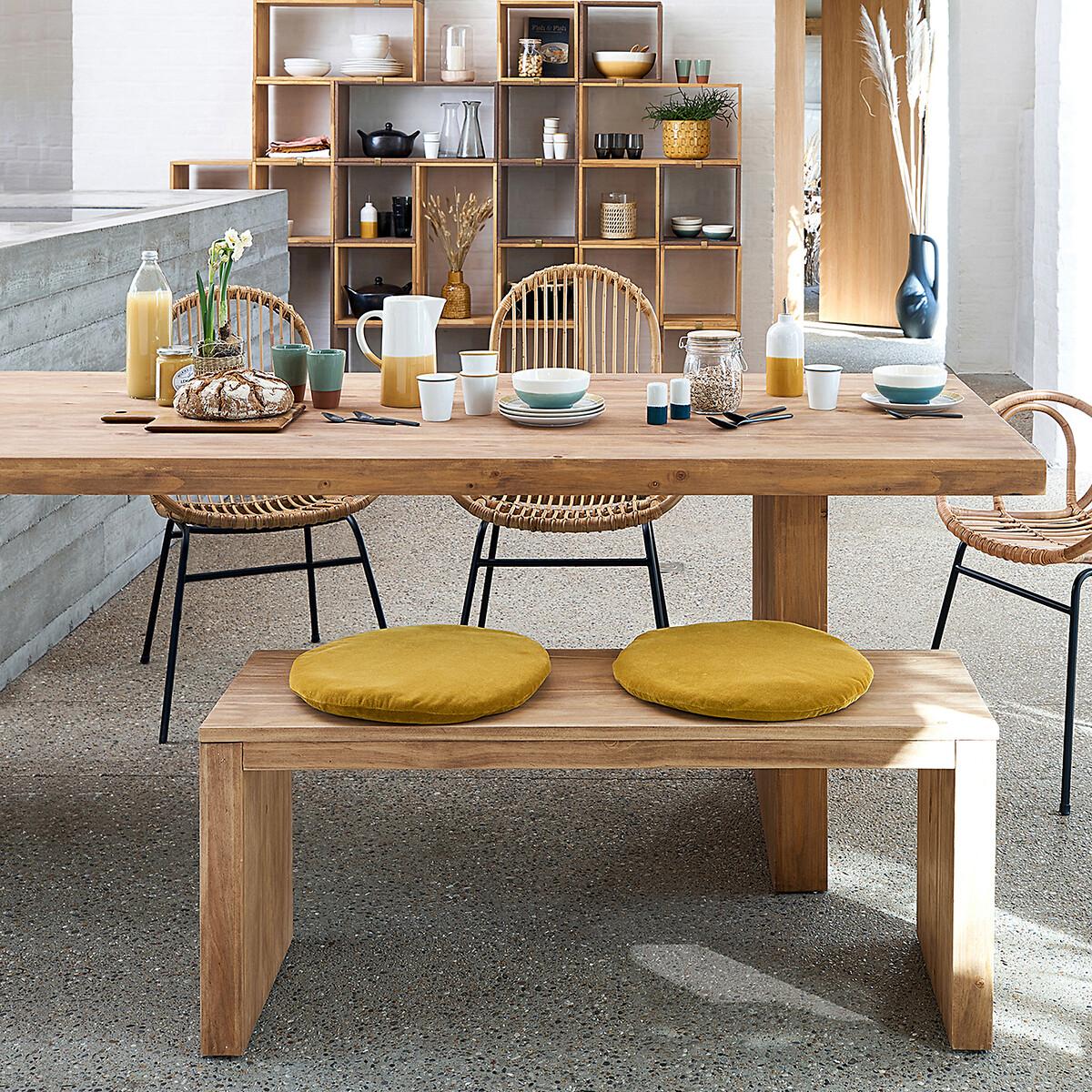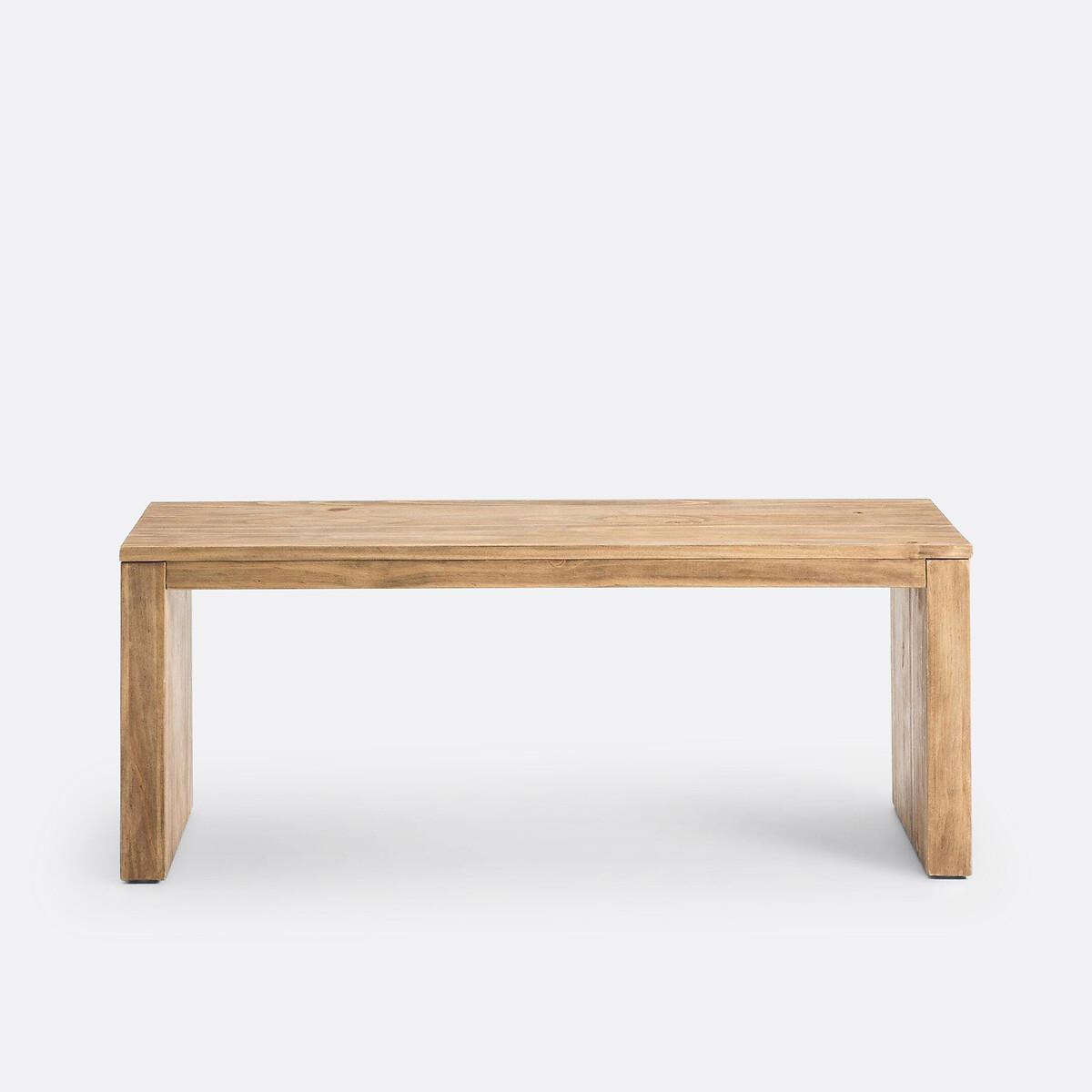 The Malu solid pine bench. Its welcoming simplicity invites you to sit down. :The Malu bench should be highly prized for its timeless elegance. Coordinates with the Malu table sold on LaRedoute.. Product Details • Seats 2 • Solid pine, stained finish, nitrocellulose varnish • Top thickness 5cm • Feet thickness 3cm • The solid pine top is slightly recessed on the underside. Dimensions • Width: 110cm • Height: 46cm • Depth: 35cm • This product requires assembly. Parcel Dimensions1 parcel • L113 x H17 x D38cm • 12kg