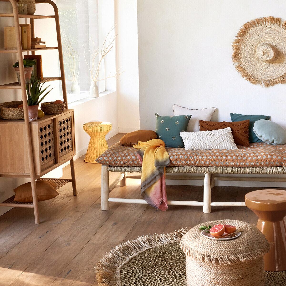 The Malu side table. Whether you use it as a side table, bedside table or stool, this woven rattan piece of furniture will add a Bohemian touch to your home. A work of art in its own right!