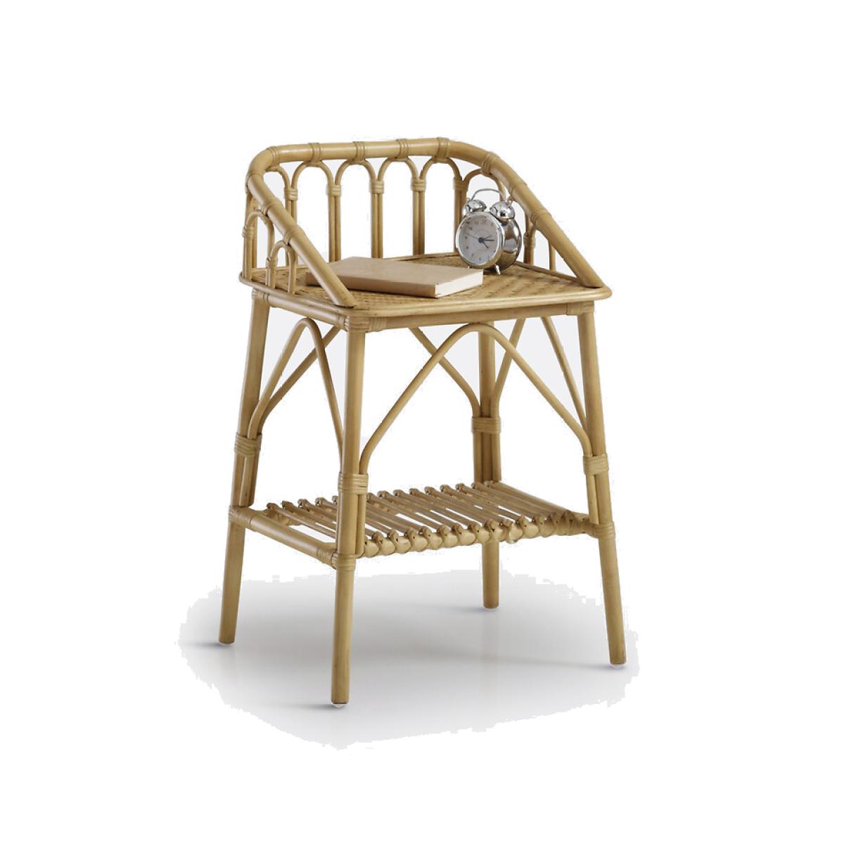 Malu vintage rattan bedside table with 2 shelves. Lots of charm and allure for the Malu rattan bedside table which has a clear varnished finish. Product Details • 2 shelves, one of them woven. • Openwork slatted shelf at the base. • Natural rattan and rattan core. • Hand-woven bamboo shelf. • Clear varnish finish. Dimensions • Length: 46cm • Height: 72cm • Depth: 40cmDelivery:. Sold pre-assembled. Available for home delivery. Note! Please check that all access points are large enough to accommodate your delivery (doors, stairs, lifts). • WOOD FROM SUSTAINABLY MANAGED FORESTS. FSC® certified wood comes from forests that are environmentally, socially and economically well managed. Dimensions of parcel:1 parcel • L47 x H73 x P41 • 3kg
