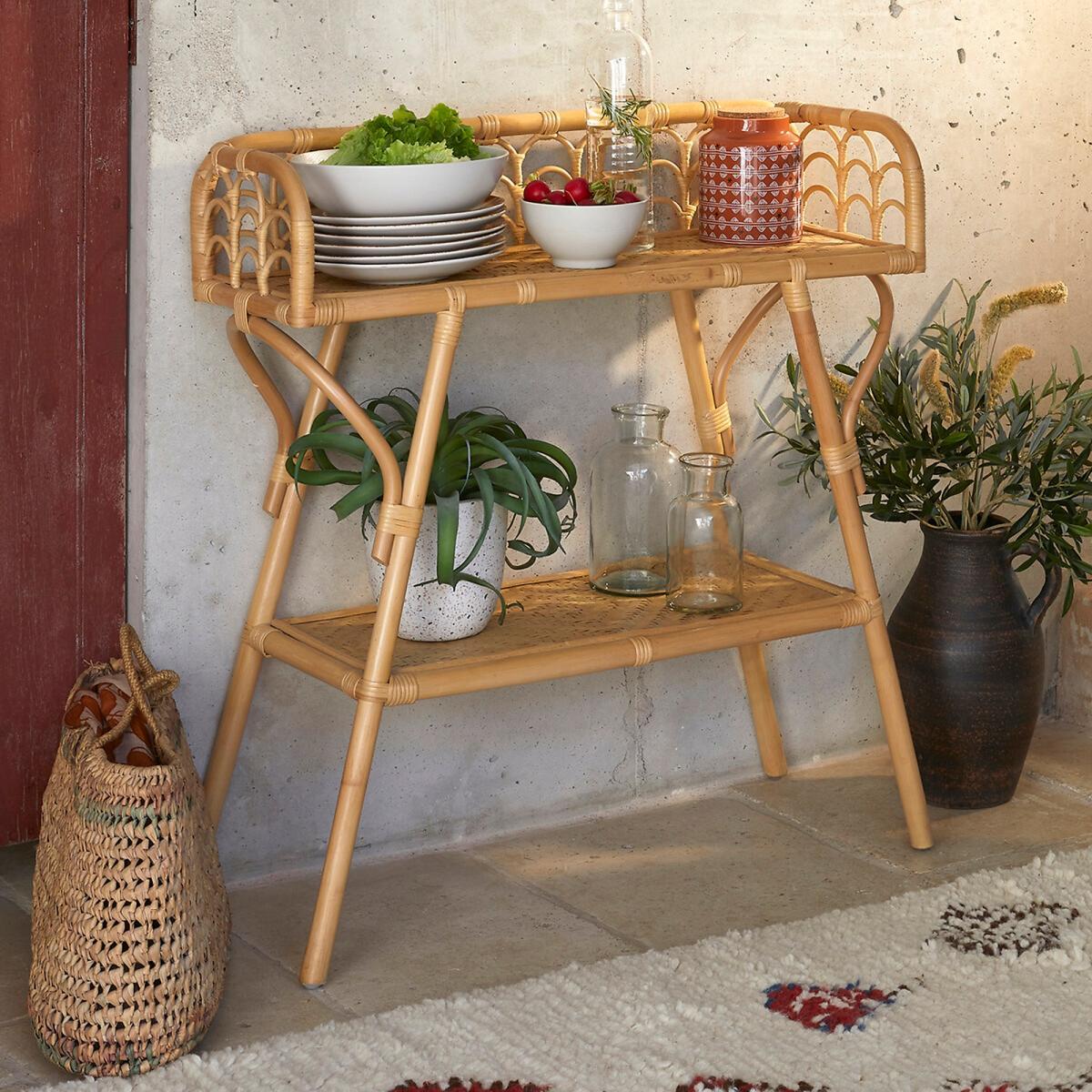 Want a natural touch in your interior? Discover the vintage handcrafted Malu rattan cane console. Its two-level top offers a nice space to accommodate books and other decorative objects...