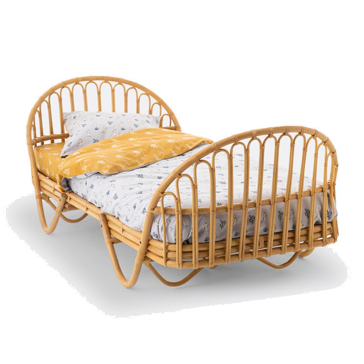The Malu rattan child bed. We love its vintage style, inspired by the 60s. Product Details • Woven rattan cane • Rattan base included • Sleeping area 90 x 190cm • Artisanal craftsmanship • Sold assembledDimensions. Overall • Width 104cm • Length 218 cm • Height 83cm • Weight: 19.1kgDelivery:. Sold pre-assembled. Available for home delivery!Note! Please check that all access points are large enough to accommodate your delivery (doors, stairs, lifts).Dimensions & weight of parcel1 parcel • L236 x H107 x D85cm. 30.9kg