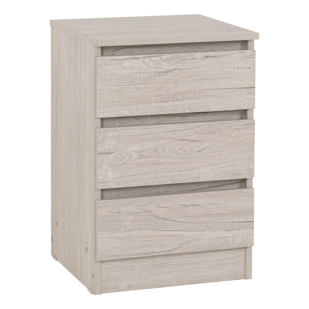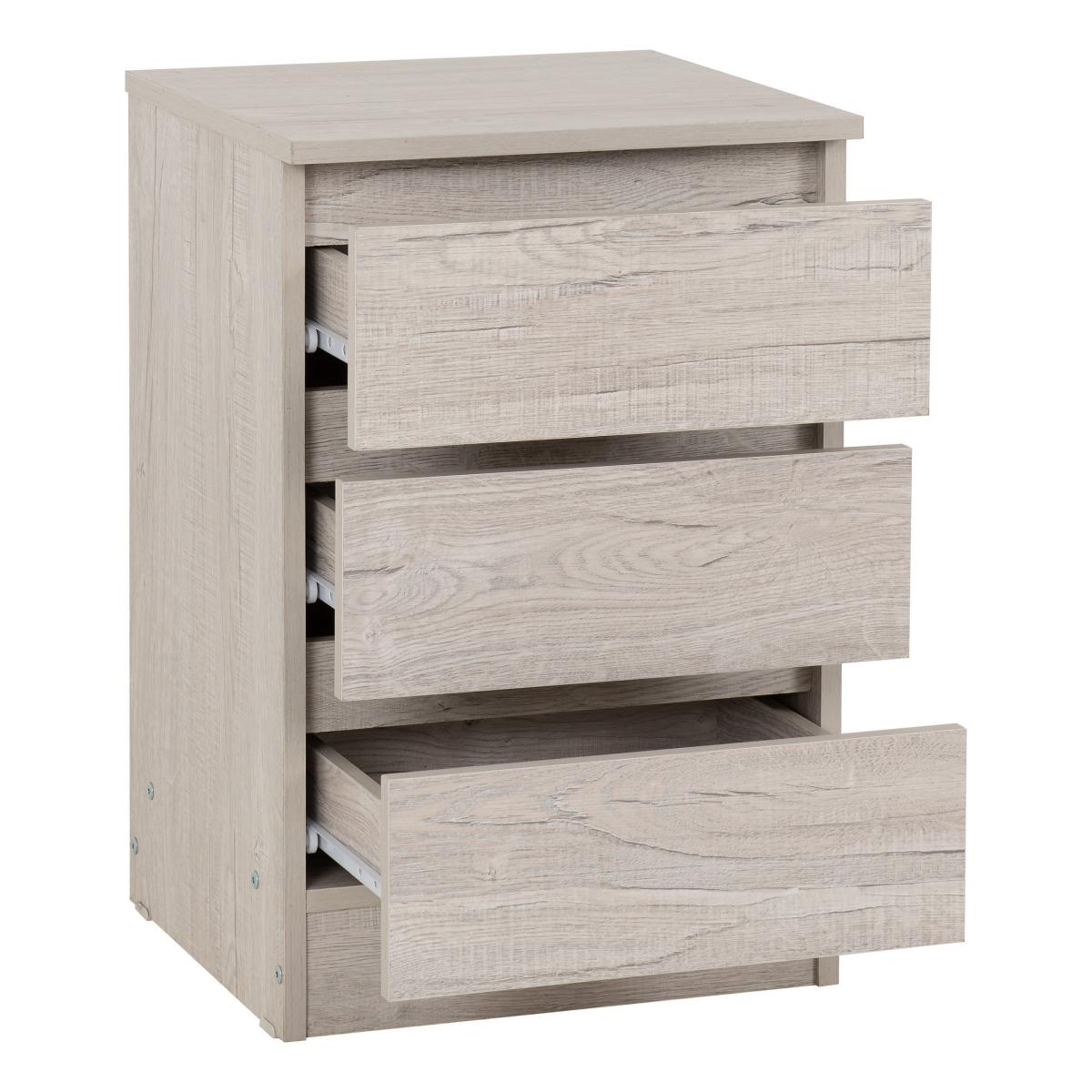 I’m a fan of this Malvern bedside table because its pale “Urban Snow” oak effect keeps a room feeling light and uncluttered, yet the three drawers give you plenty of hidden storage. It slots effortlessly into Scandi-inspired, coastal or contemporary schemes, especially when paired with soft greys, muted blues or warm neutrals. For practical styling, top it with a slim-based lamp and a small ceramic pot plant to add texture without crowding the surface. A neat tray for glasses or your watch helps keep essentials to hand, and layering a couple of books underneath lends a lived-in look. If you’re furnishing the whole bedroom, matching the table with a similarly finished wardrobe or chest of drawers will create a cohesive feel.