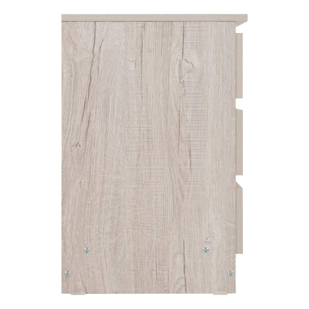 * 3 spacious drawers* Available in multiple wooden finishes* Quick assembly Available in a variety of finishes to complement your interior, this bedside table combines contemporary design with practical storage solutions. Featuring three spacious drawers, it provides ample space for keeping essentials close at hand while maintaining a clutter-free environment. The sturdy construction ensures durability, while the sleek and minimalist design adds a touch of modern elegance to your bedside.
