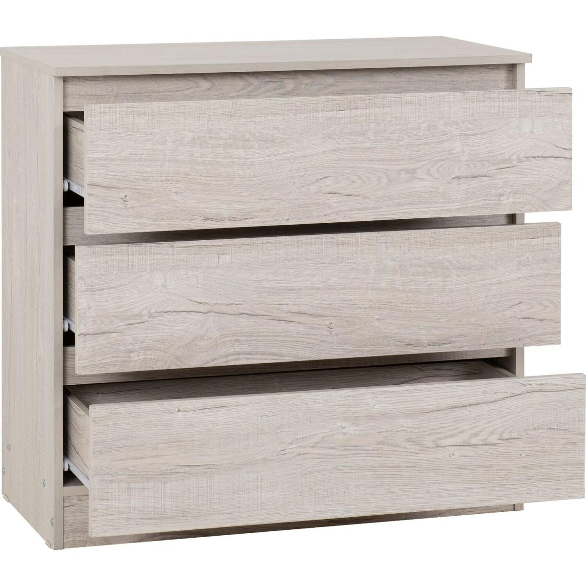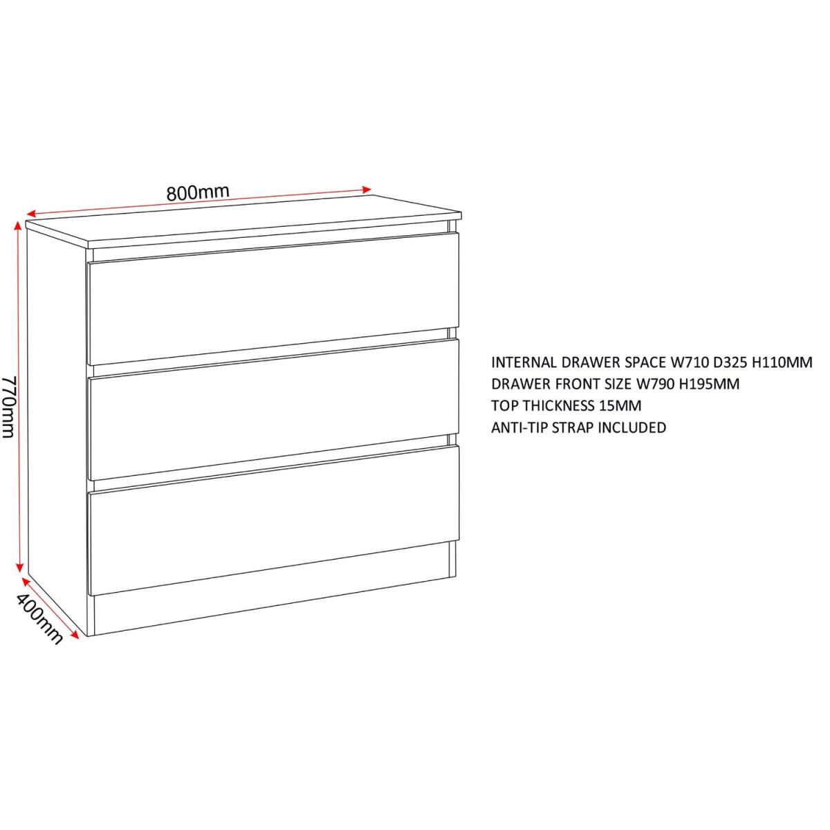 This three-drawer chest solves storage woes with a splash of modern design. The streamlined silhouette and wood grain add to its minimalist appeal, while the deep drawers are ideal for storing clothing, media, electronics, and more. It is available in a range of finishes to suit your existing decor. UK Mainland delivery only, between 9am - 9pm (weekdays) the courier will contact you on the day of delivery to offer a time slot. This takes place within 10 working days (Ground floor only). Please also ensure that we have a note of your up-to-date address and contact information, to be passed to the couriers.
