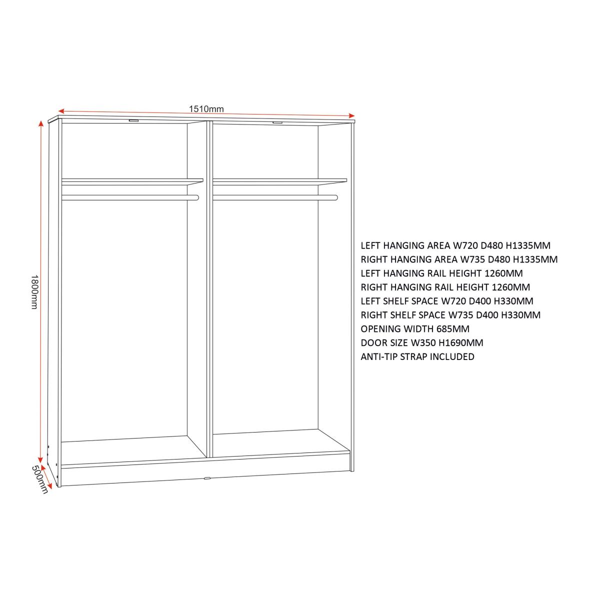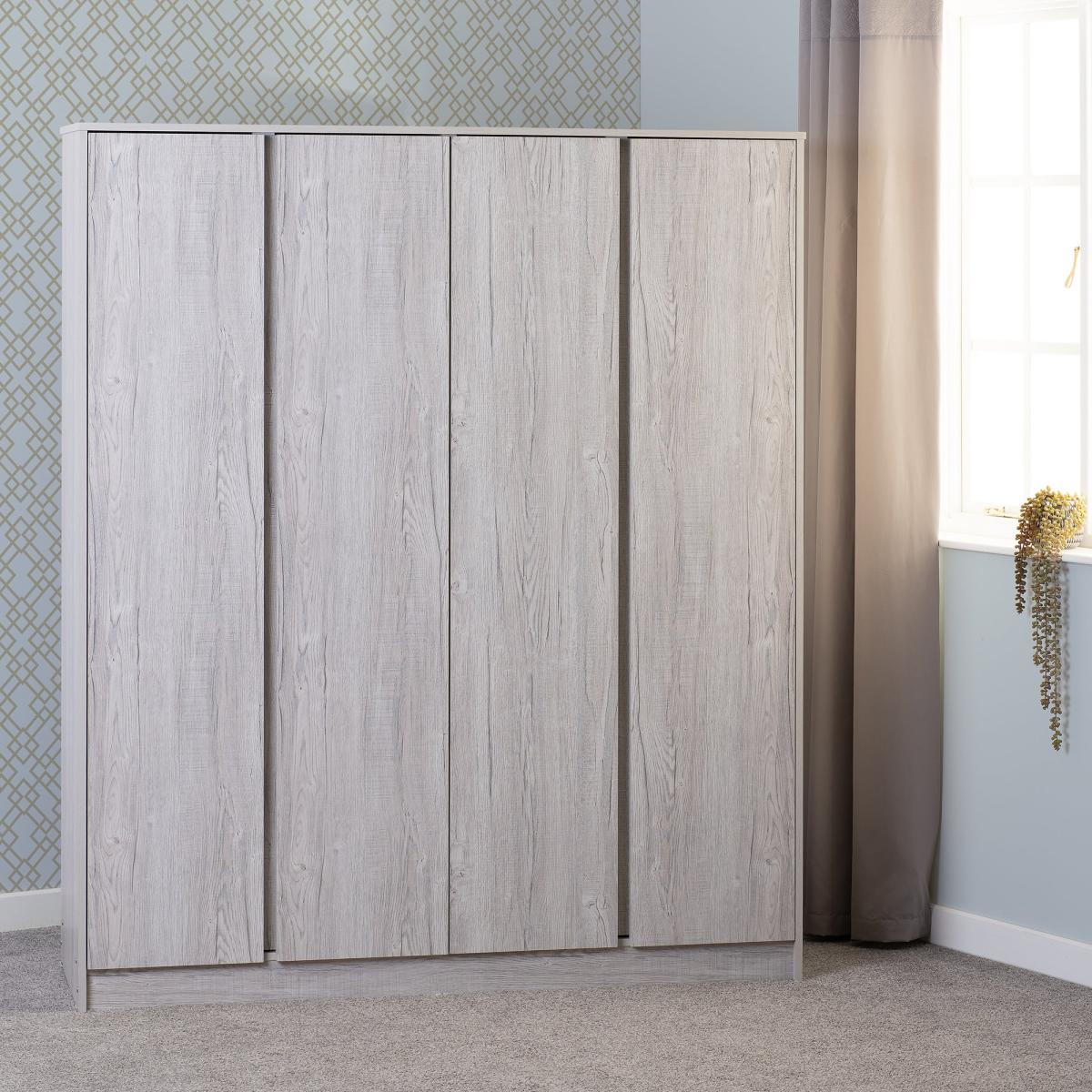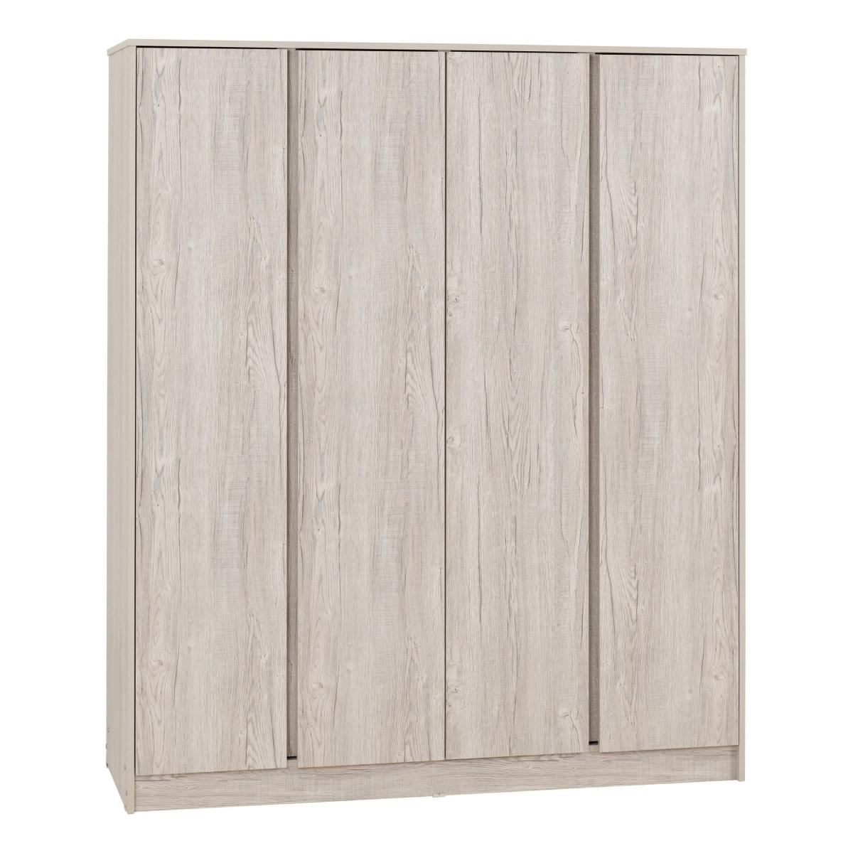 * Shelving and hanging space* Available in multiple wooden finishes* Quick assembly This 4 door wardrobe features a expansive storage solution with a combination of hanging rails and shelves, providing ample space to organise your clothes and accessories effortlessly. Its four doors open to reveal a well-organised interior, making it easy to keep your garments neatly arranged and easily accessible. Built with durability in mind, this wardrobe boasts a sturdy construction that promises longevity and reliability. Its sleek design, complemented by discreet handles and a smooth finish, adds a touch of sophistication to your bedroom decor while offering practical functionality.