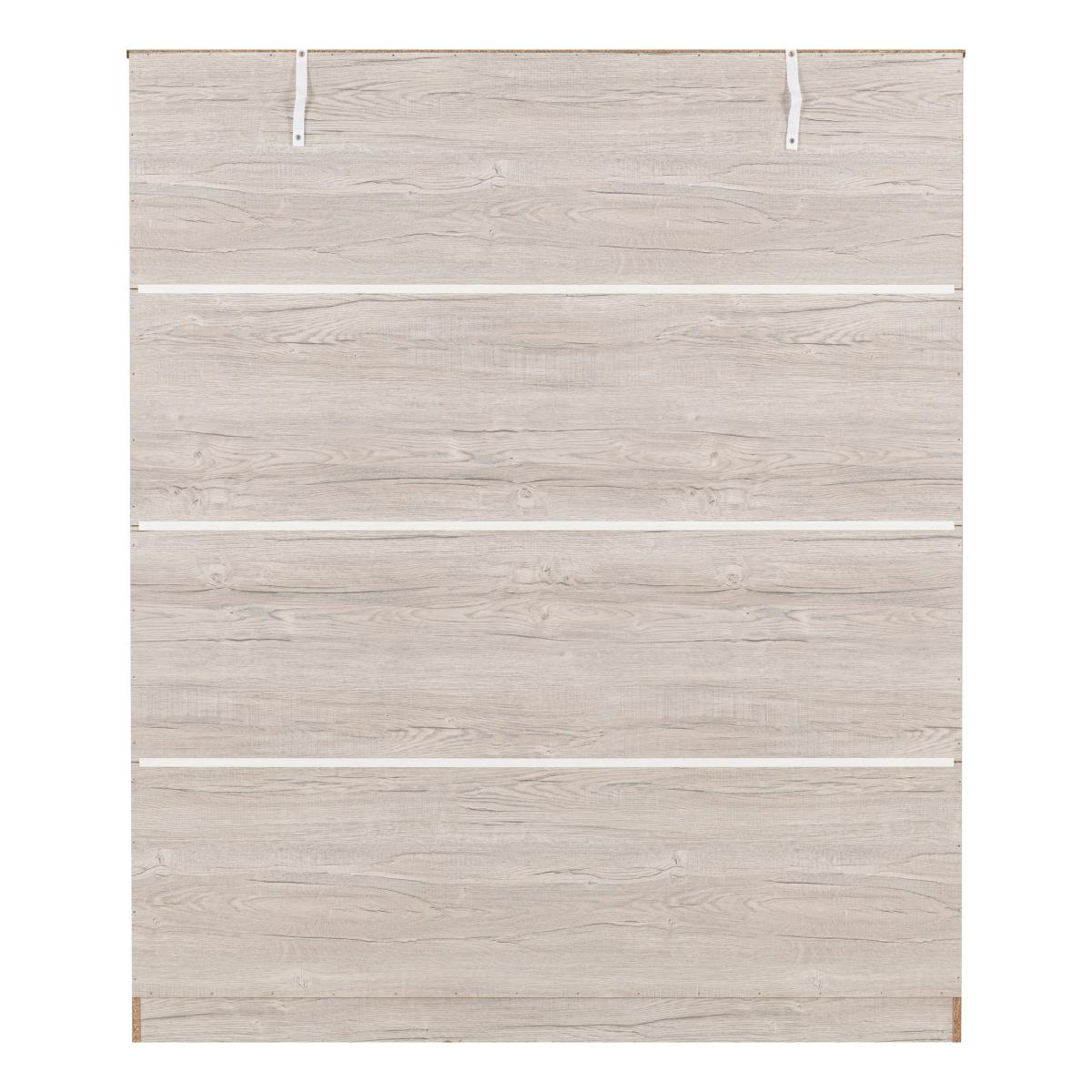 I’m a fan of this four-door “snow-wash” wardrobe for its clean, almost Scandinavian feel and light oak-effect finish that brightens a bedroom without overwhelming it. The simple profile and handle-less doors mean it slots straight into minimalist, contemporary or Shaker-style schemes, and the pale tone is an excellent backdrop for richer accent colours or textured wallpapers. For practical styling, divide the interior into zones - use slimline velvet hangers on one side and stackable fabric drawers or woven baskets on the other to keep accessories tidy. Top it with a couple of minimal ceramic vases or a compact mirror tray, and add a slim, full-length mirror nearby to maximise the sense of space.