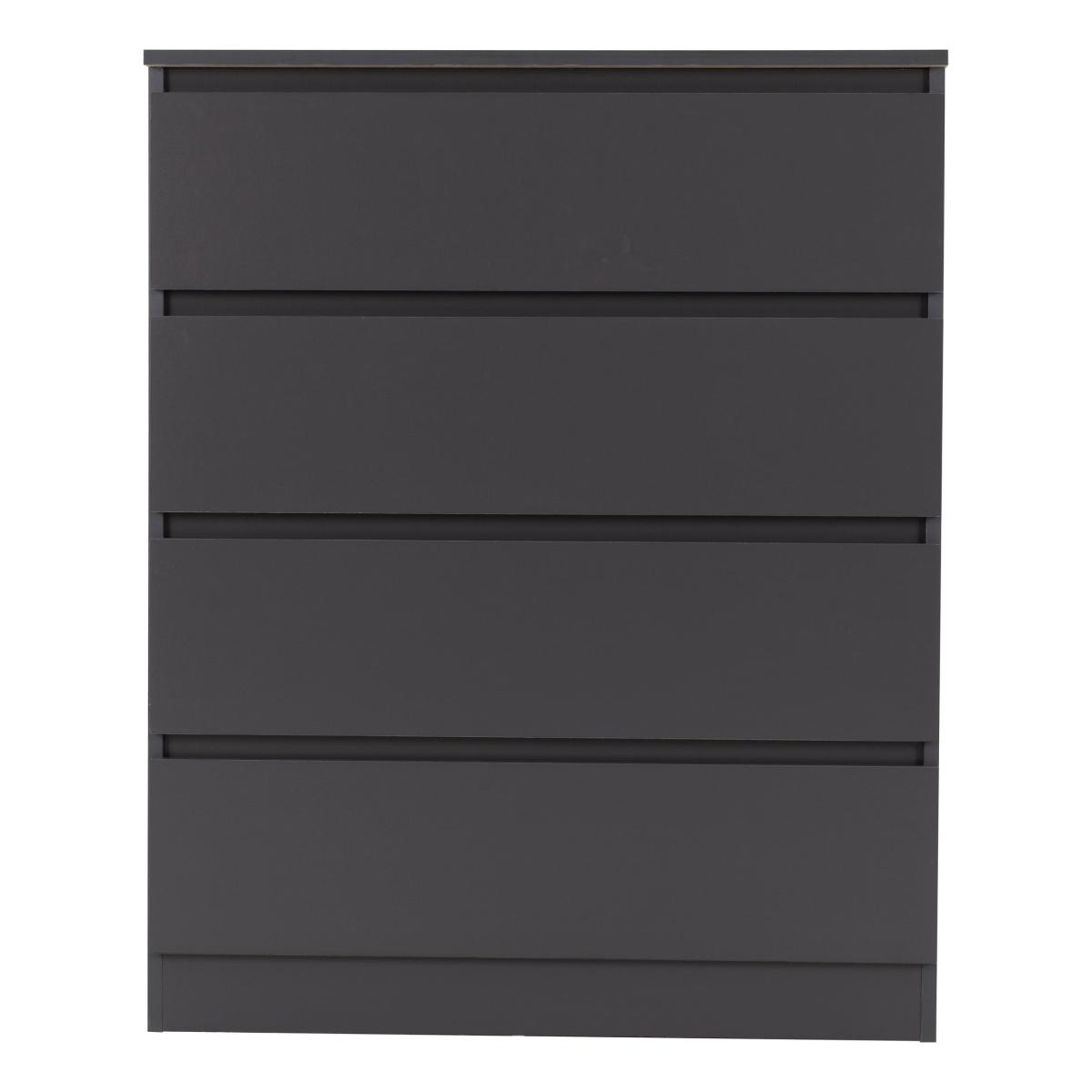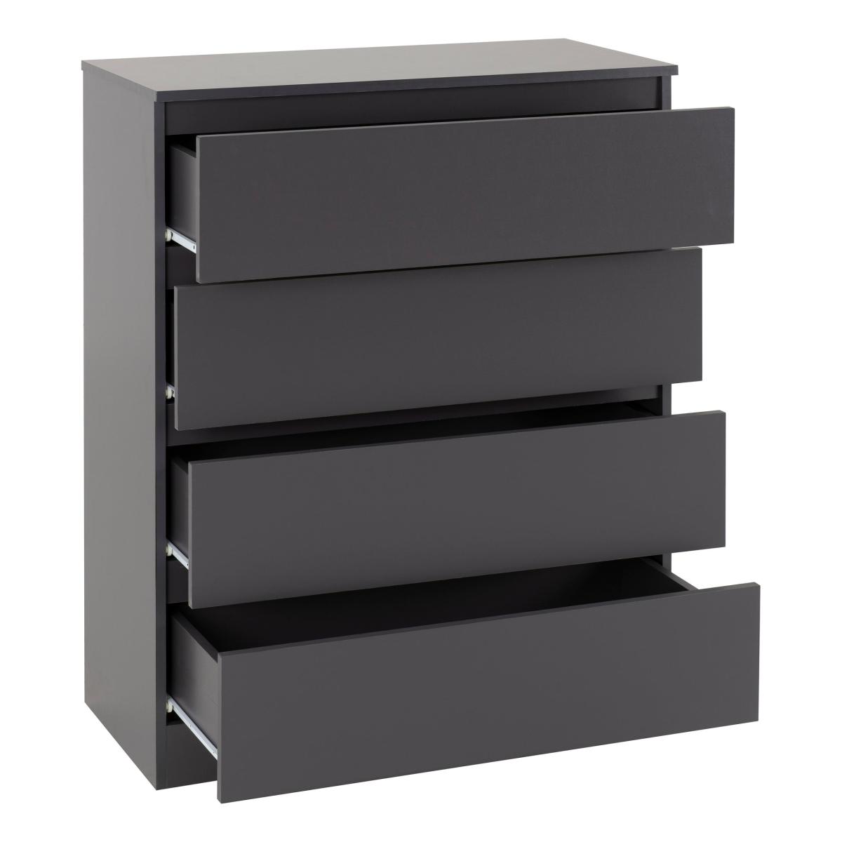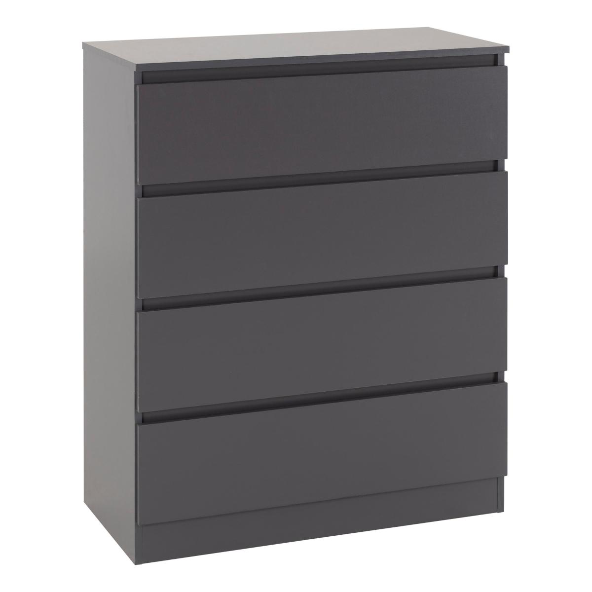 * 4 spacious drawers* Available in multiple wooden finishes* Quick assembly Available in various finishes to complement your decor, this chest of drawers combines sleek design with practical storage solutions. Featuring four spacious drawers, it offers ample space to neatly organise clothing, accessories, and personal items. The sturdy construction ensures durability, while the minimalist design and discreet handles add a touch of modern elegance to any bedroom setting.