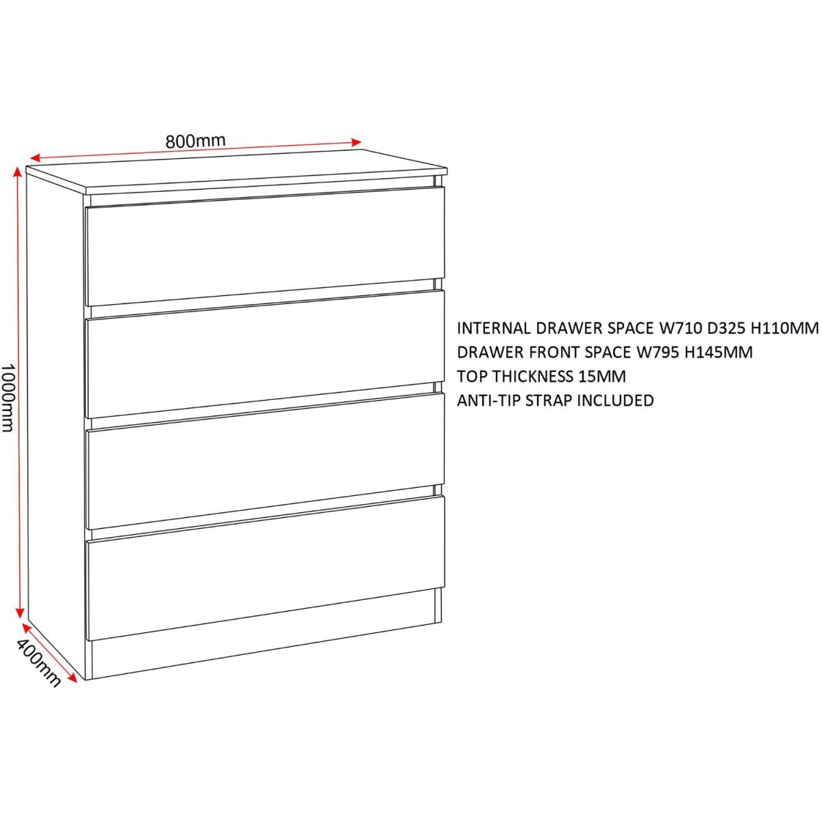 Solve storage woes with contemporary flair using this chest of drawers. The chests modern design emphasizes its streamlined silhouette, while four drawers are ideal for storing everything from clothing to linen to electronics to media and more. It is available in a range of finishes to suit your existing decor and assembly is required. UK Mainland delivery only, between 9am - 9pm (weekdays) the courier will contact you on the day of delivery to offer a time slot. This takes place within 10 working days (Ground floor only). Please also ensure that we have a note of your up-to-date address and contact information, to be passed to the couriers.