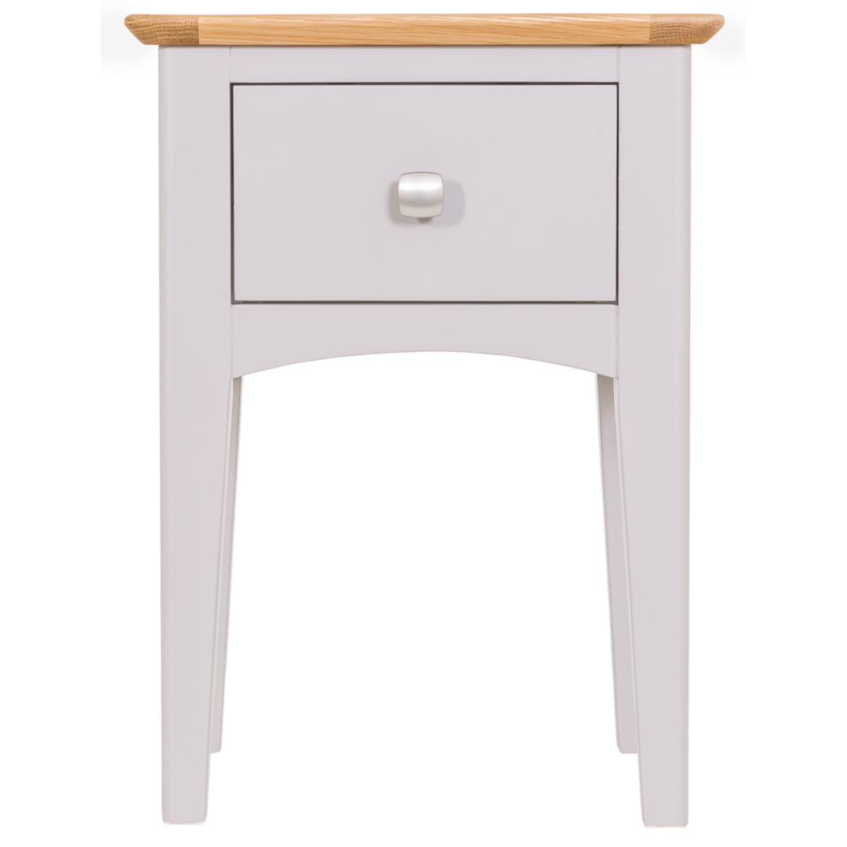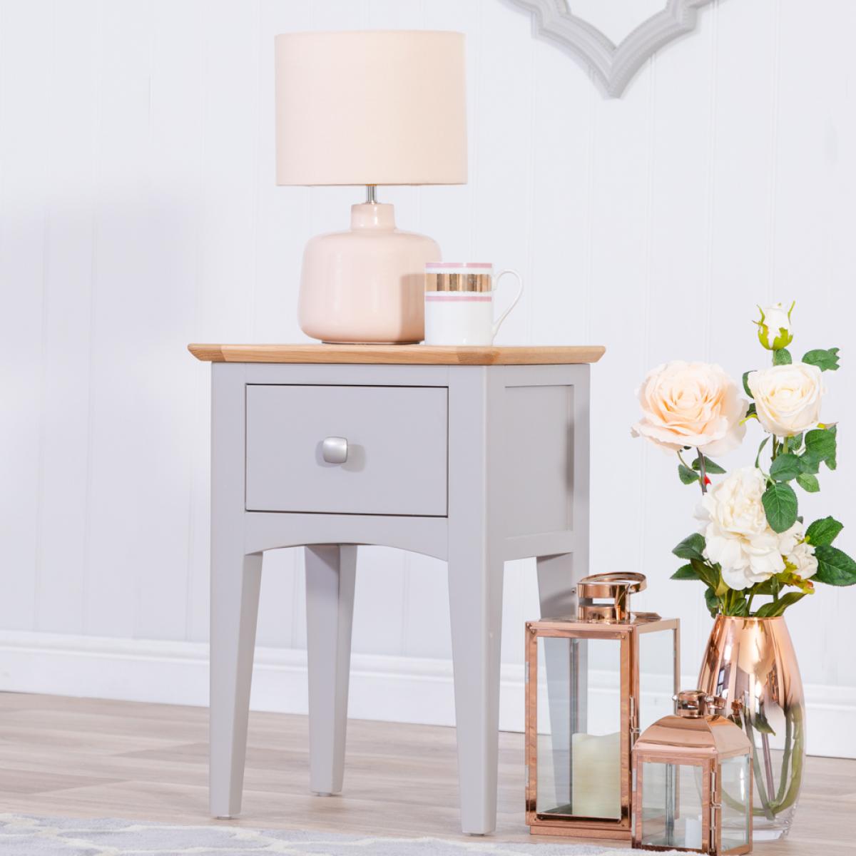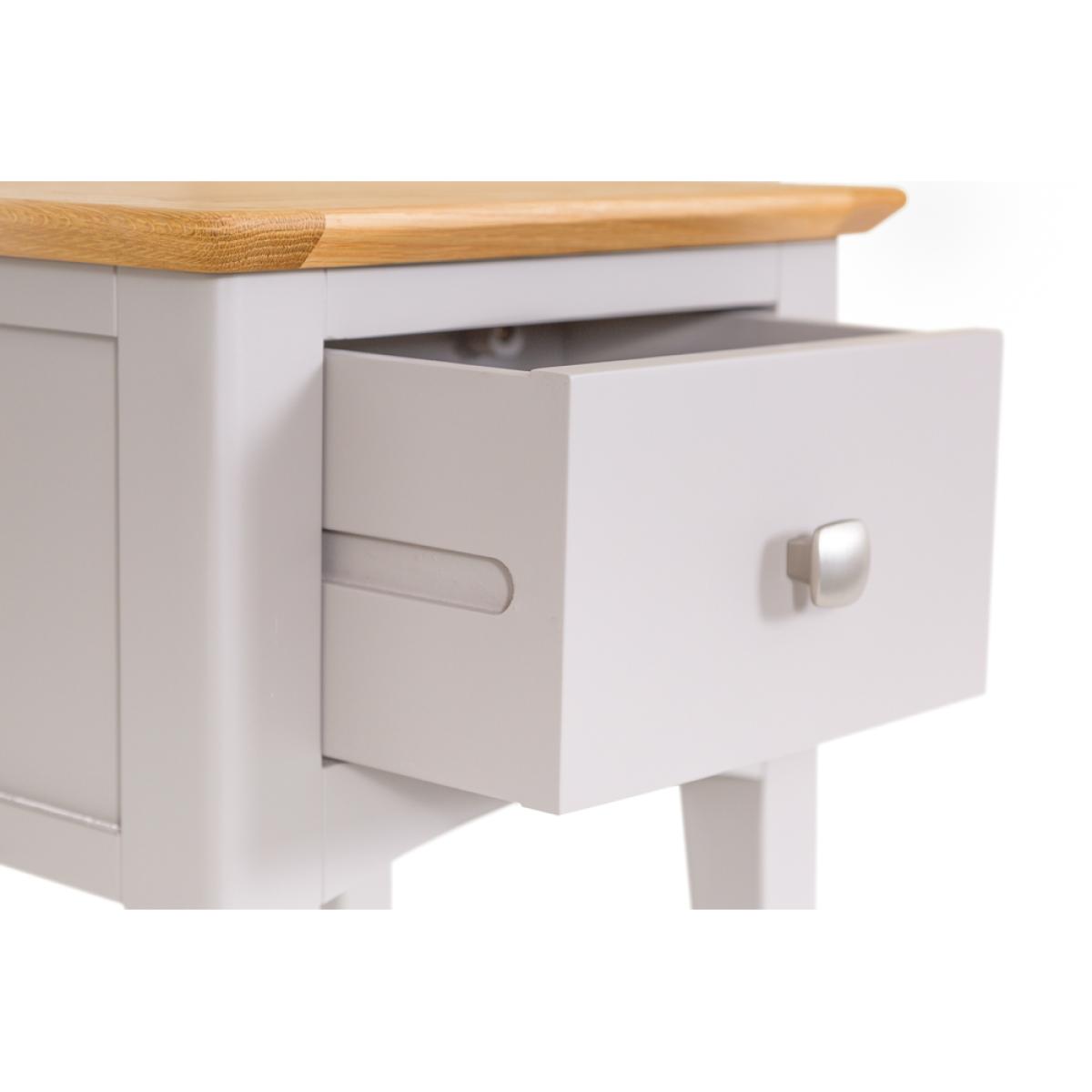 Treating yourself to a new Side Table has never felt as good as ordering the Malvern Shaker Grey Painted Oak Lamp Table With Drawer. It’s an inspired homage to the authentic world of Shaker design, and one which will arrive fully assembled and ready to adorn your home. The choice of metal and wooden handles makes for a piece that combines slender legs and artisan finishing to create a look you’ll treasure forever. As you stand back and admire the exquisite contrast between the light oak top and the grey painted finish you’ll instantly start thinking about matching accessories from the Malvern Shaker range.