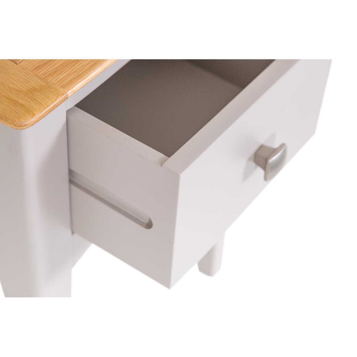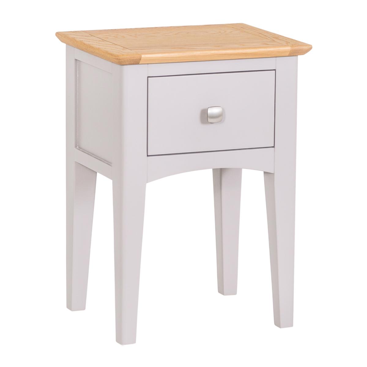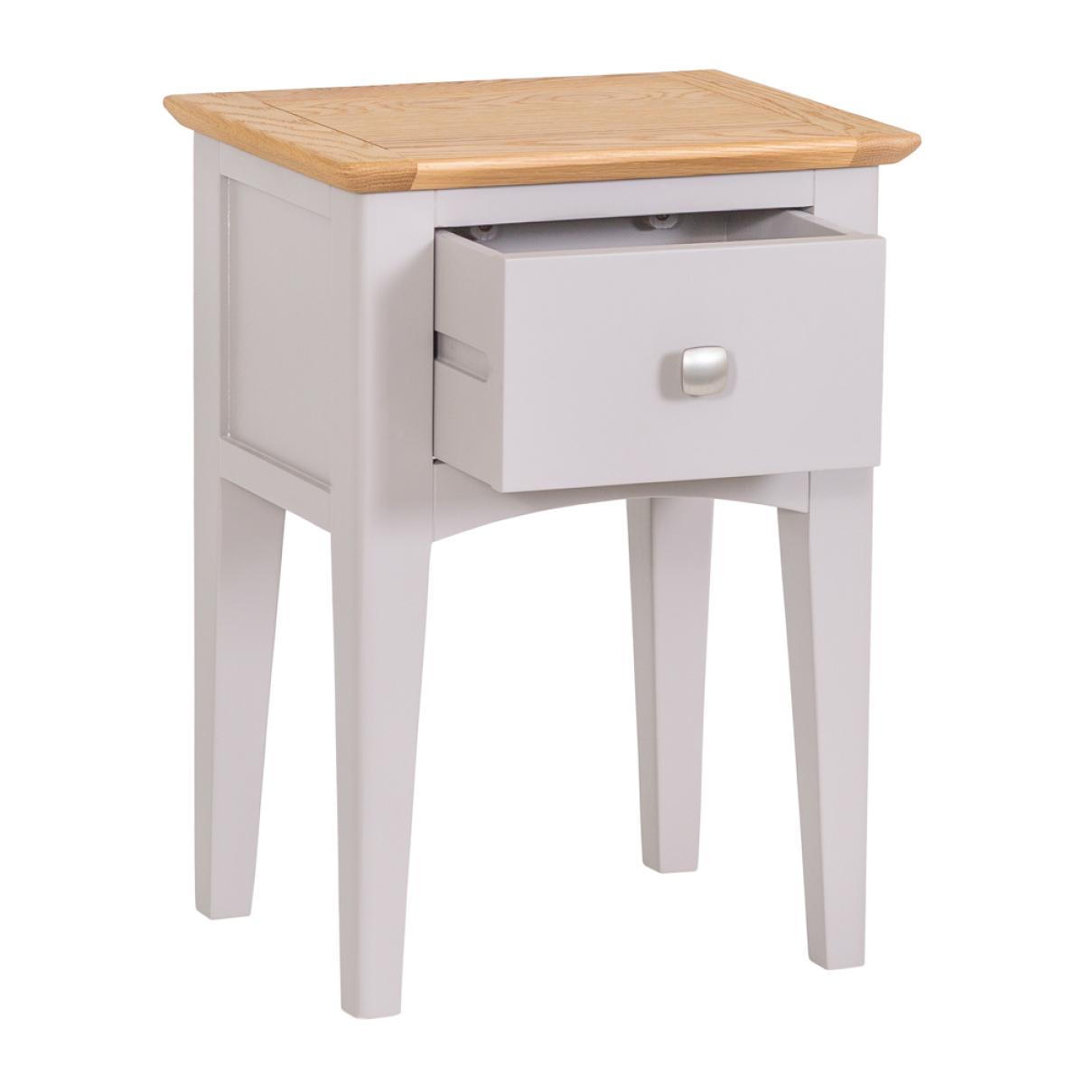 Treating yourself to a new Side Table has never felt as good as ordering the Malvern Shaker Grey Painted Oak Lamp Table With Drawer. It’s an inspired homage to the authentic world of Shaker design, and one which will arrive fully assembled and ready to adorn your home. The choice of metal and wooden handles makes for a piece that combines slender legs and artisan finishing to create a look you’ll treasure forever. As you stand back and admire the exquisite contrast between the light oak top and the grey painted finish you’ll instantly start thinking about matching accessories from the Malvern Shaker range.