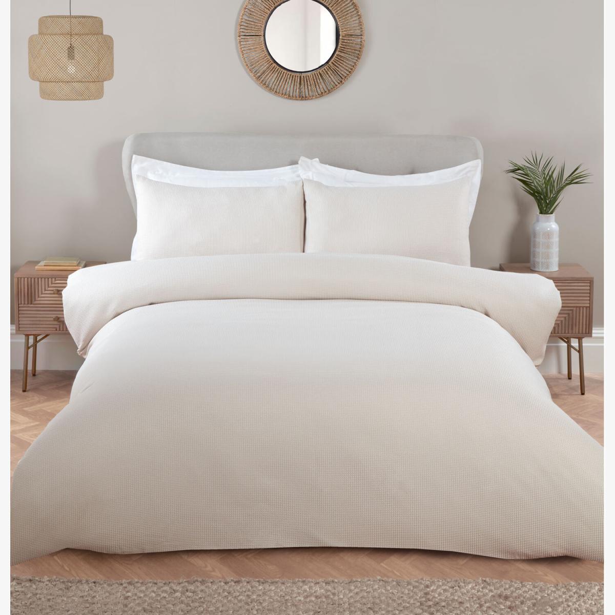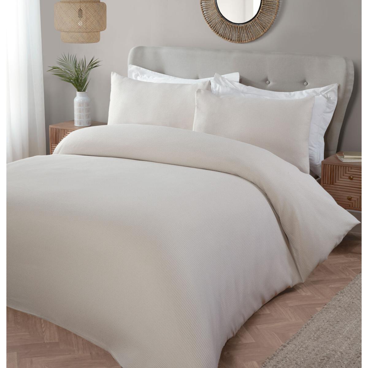 Malvern Waffle Duvet Cover and Pillowcase Set - Natural / Double