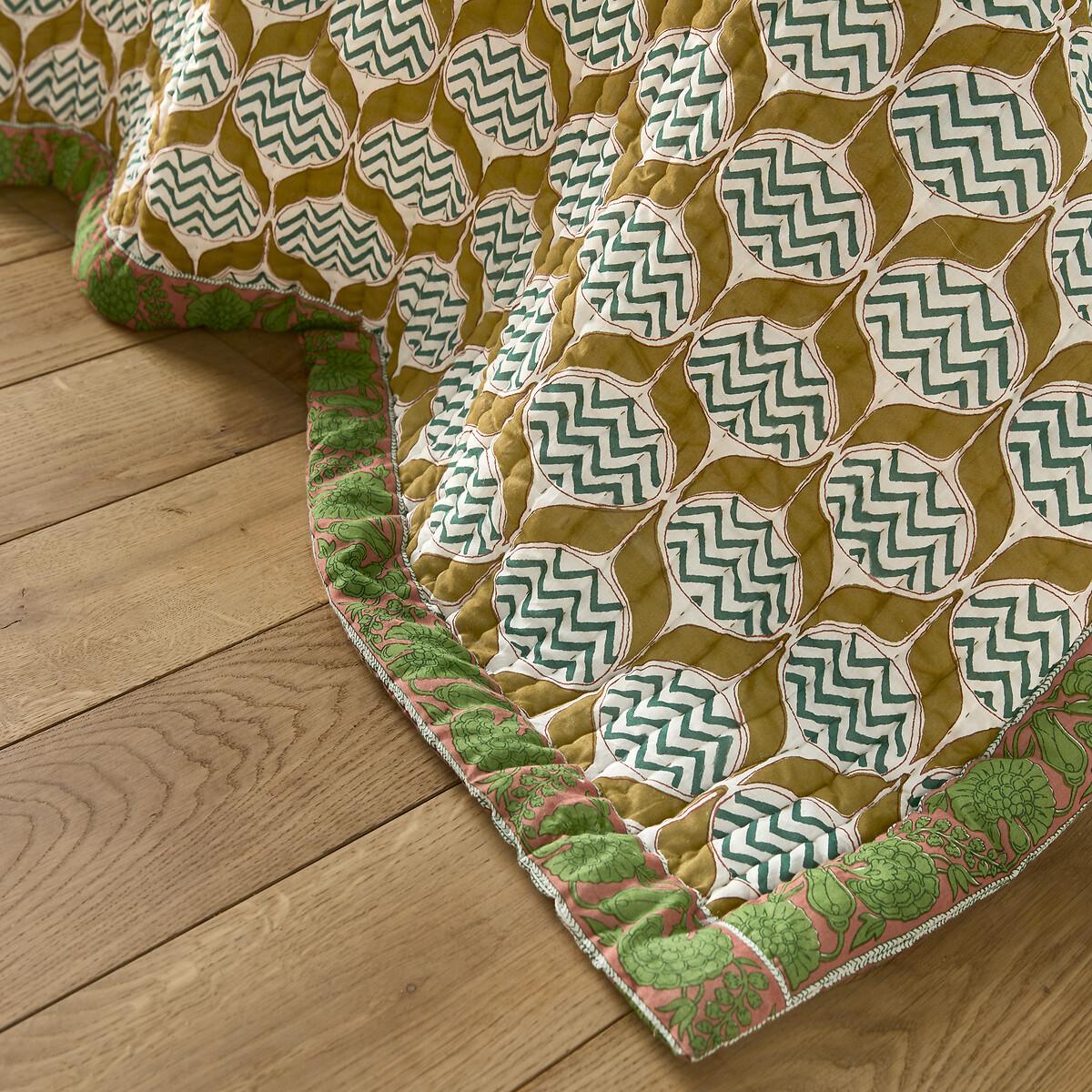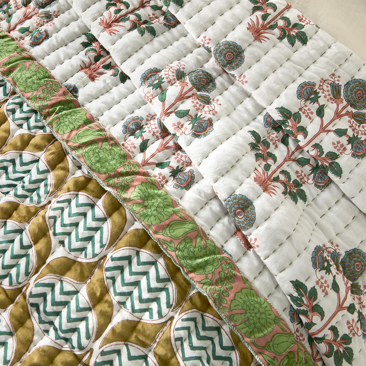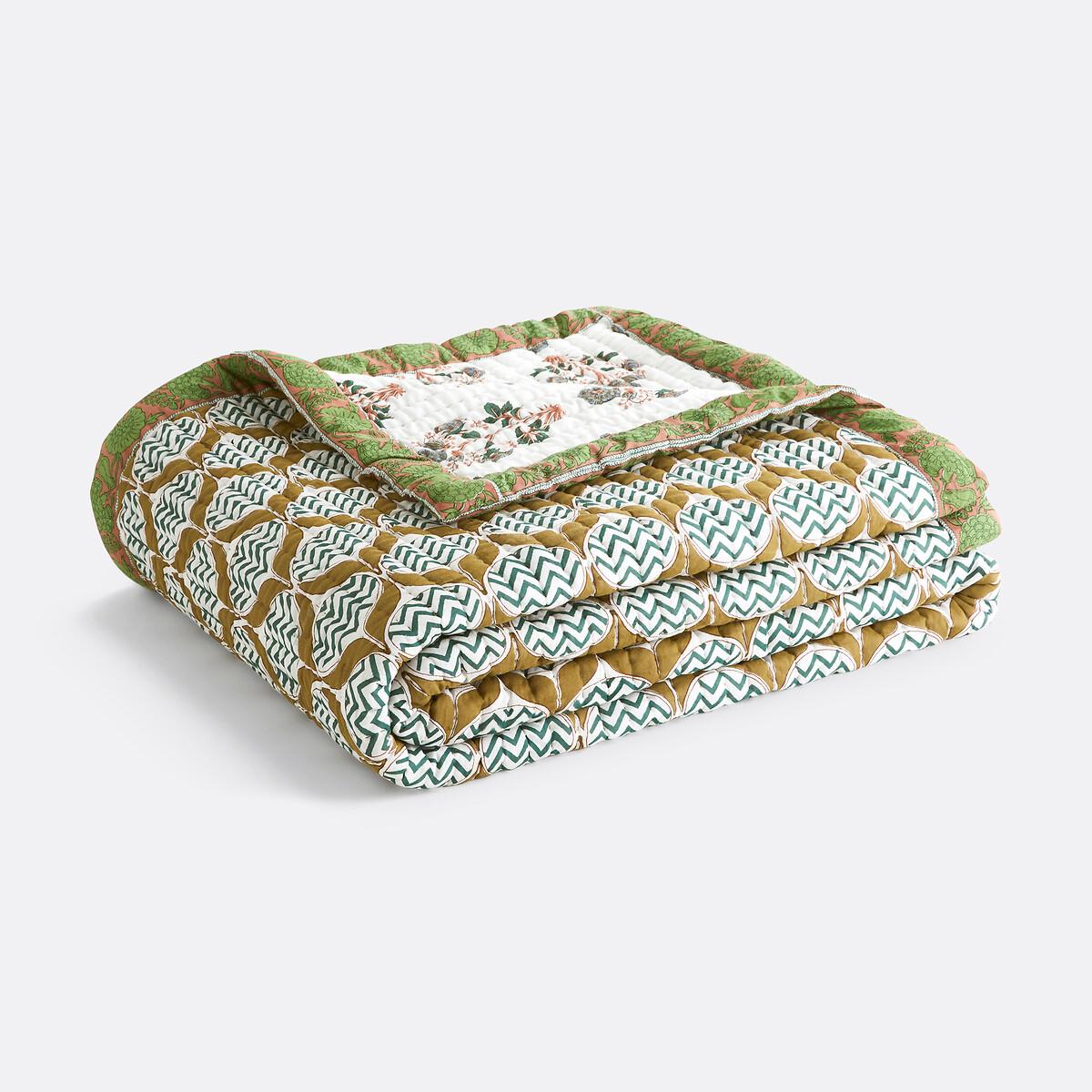 Blooming patterns and block print style prints adorn the Malyam kantha bedspread. The patterns and stitching effects bring bohemian notes to your interior decor. Light, soft and supple, cotton voile is distinguished by its airy appearance. An elegant and delicate material for supreme comfort. Product Details • 100% cotton • Cotton voile • Geometric print on the front, floral pattern print on the back • Kantha style stitching finish and frame on the front and back • Stuffing 100% polyester. Care Advice • Machine washable at 30°CDimensions • 180 x 230cm • 230 x 250cm • OEKO-TEX® Standard 100. Standard 100 certification by OEKO-TEX® tests textile products for harmful substances via an independent, international label.