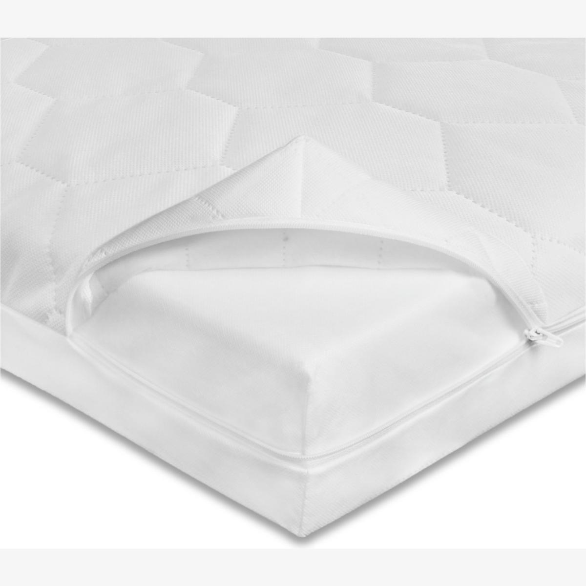 This Mamas and Papas spring mattress offers long lasting support during your baby's early stages of development. The removable cover is wipe clean and water repellent, and includes an inner protector that gives your little one an additional sleeping surface while the cover is in the wash. All materials used are free from PVC and hypoallergenic. A good night's sleep needs proper support and Mamas & Papas Pocket Spring Mattress features individually pocketed springs that respond to your child's moving and growing shape. The mattress design promotes better airflow to keep baby cool, while the hypoallergenic properties protect them from allergens. Keep it clean with a removable and washable cover, and a wipe clean inner. All mattresses supplied by Mamas & Papas conform to BS EN 16890:2017+A1:2021. Suitable for cots. Hypoallergenic. Allergenic. Anti-allergenic. Core material polyester. Cover: 100% polypropylene,. Removable washable cover. General information: Size L120, W60, D10cm. Manufacturer's 2 year guarantee.