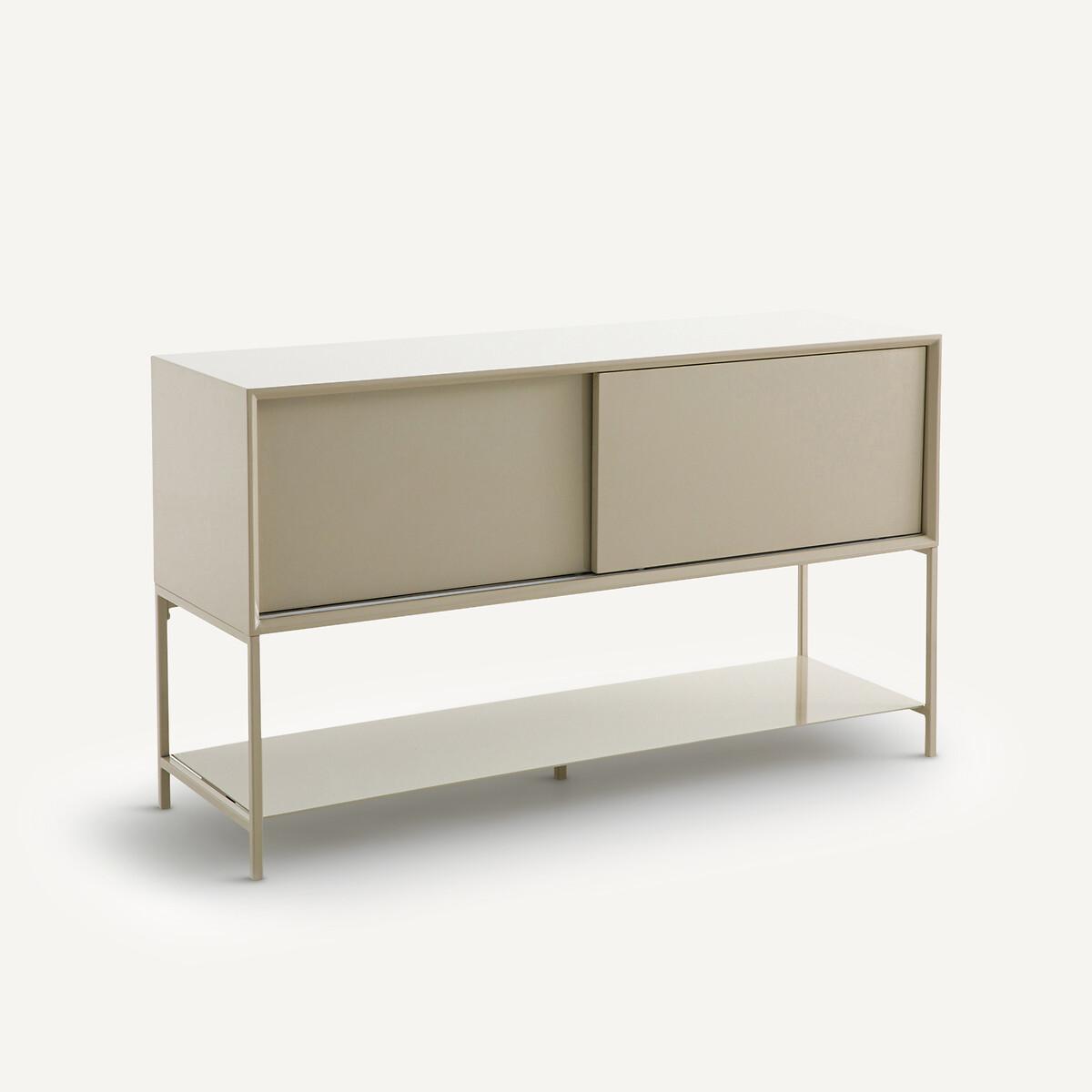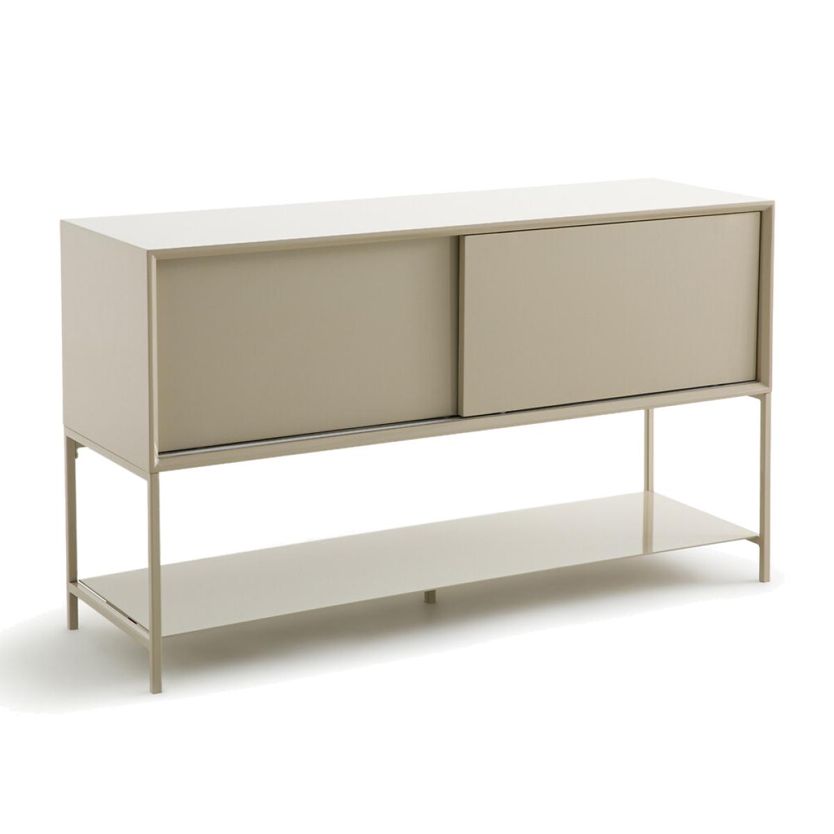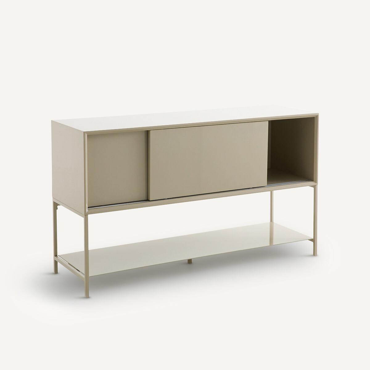 Mambo buffet sideboard. A design borrowed from the fifties for this sideboard which brilliantly combines an ultra-shiny lacquered finish and the strength of metal. Product Details • Unit and sliding doors in eucalyptus MDF, polyurethane finish • FSC® certified wood • Iron base and bottom shelf • Glossy lacquer finish. Care instructions • Wipe a soft cloth with a little water over the surface. • Avoid placing hot objects on it, we recommend using coasters. • This product is susceptible to scratches. Ban scratching sponges. • We recommend the use of small pads under objects directly in contact with the surface: vases, cups... Dimensions Overall • Width: 120cm • Height: 69.5cm • Depth: 39cm. Usable space • 1 compartment : L57 x H32 x D36cmDelivery:. Sold pre-assembled. Available for home delivery. Note! Please ensure all passageways and doorways are wide enough. • WOOD FROM SUSTAINABLY MANAGED FORESTS. FSC® certified wood comes from forests that are environmentally, socially and economically well managed. Dimensions and weight of parcel1 parcel • L130 x H56 x D42cm, 46kg