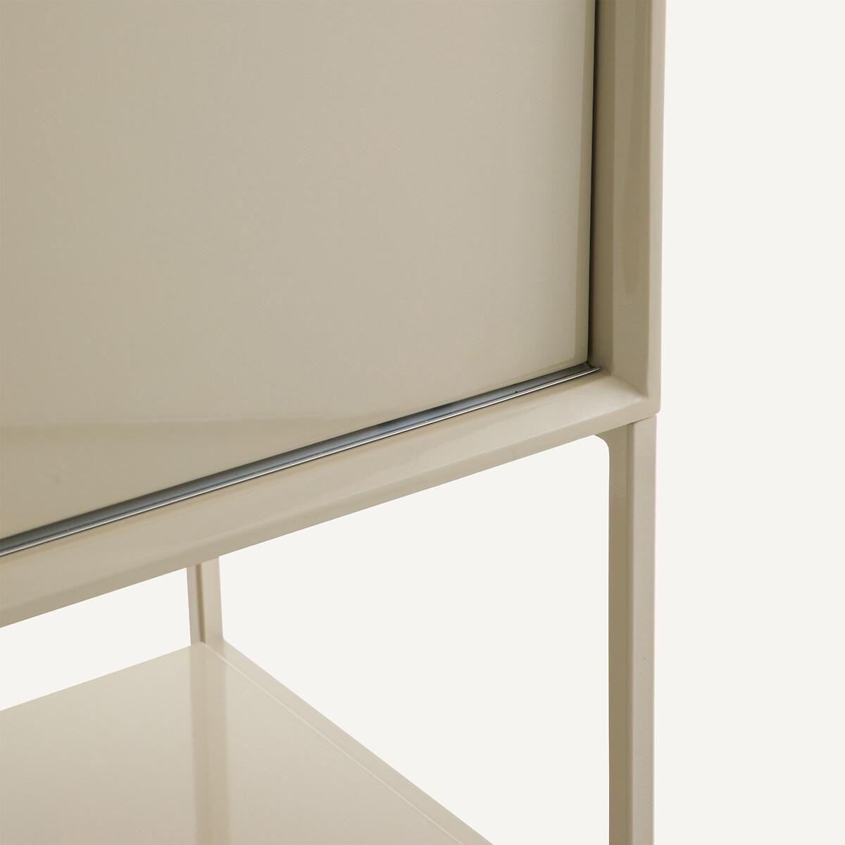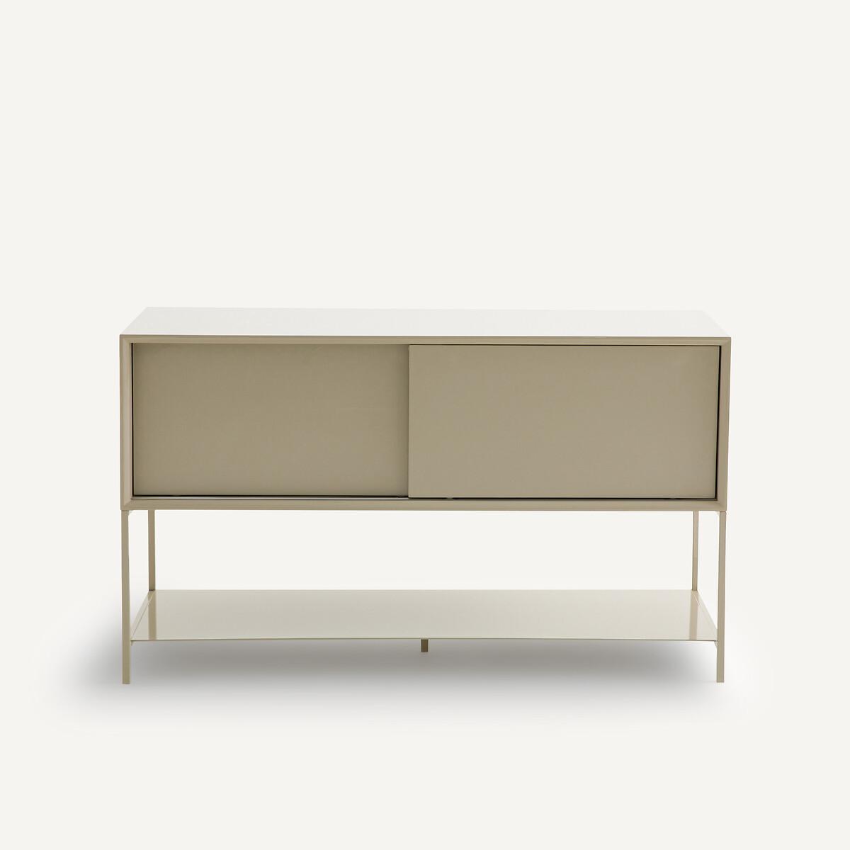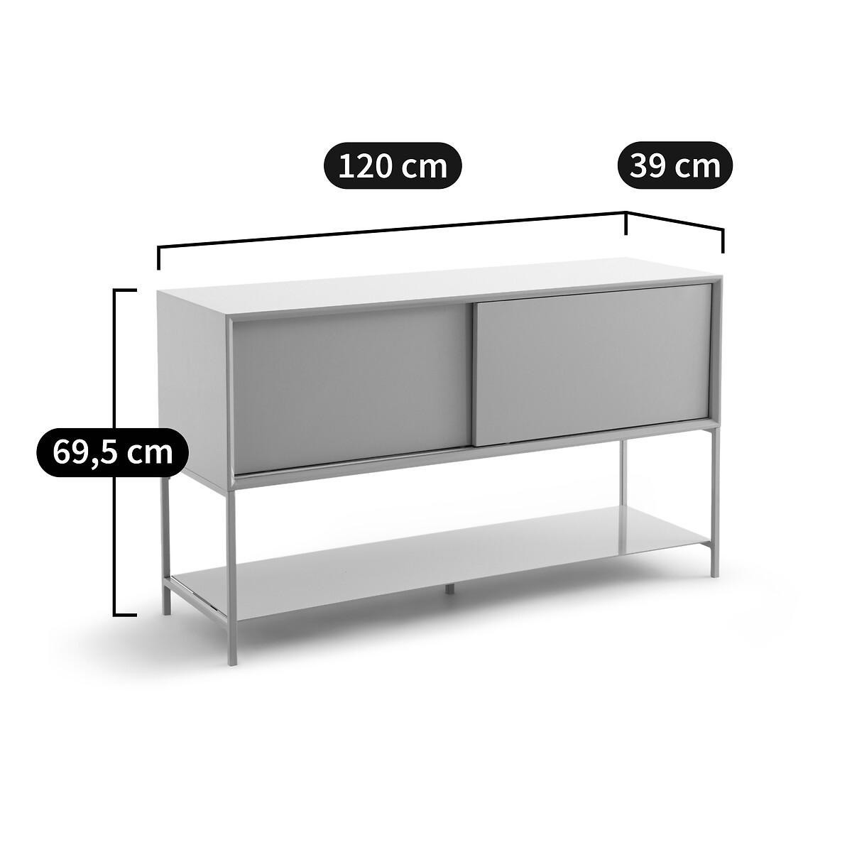 Mambo buffet sideboard. A design borrowed from the fifties for this sideboard which brilliantly combines an ultra-shiny lacquered finish and the strength of metal. Product Details • Unit and sliding doors in eucalyptus MDF, polyurethane finish • FSC® certified wood • Iron base and bottom shelf • Glossy lacquer finish. Care instructions • Wipe a soft cloth with a little water over the surface. • Avoid placing hot objects on it, we recommend using coasters. • This product is susceptible to scratches. Ban scratching sponges. • We recommend the use of small pads under objects directly in contact with the surface: vases, cups... Dimensions Overall • Width: 120cm • Height: 69.5cm • Depth: 39cm. Usable space • 1 compartment : L57 x H32 x D36cmDelivery:. Sold pre-assembled. Available for home delivery. Note! Please ensure all passageways and doorways are wide enough. • WOOD FROM SUSTAINABLY MANAGED FORESTS. FSC® certified wood comes from forests that are environmentally, socially and economically well managed. Dimensions and weight of parcel1 parcel • L130 x H56 x D42cm, 46kg