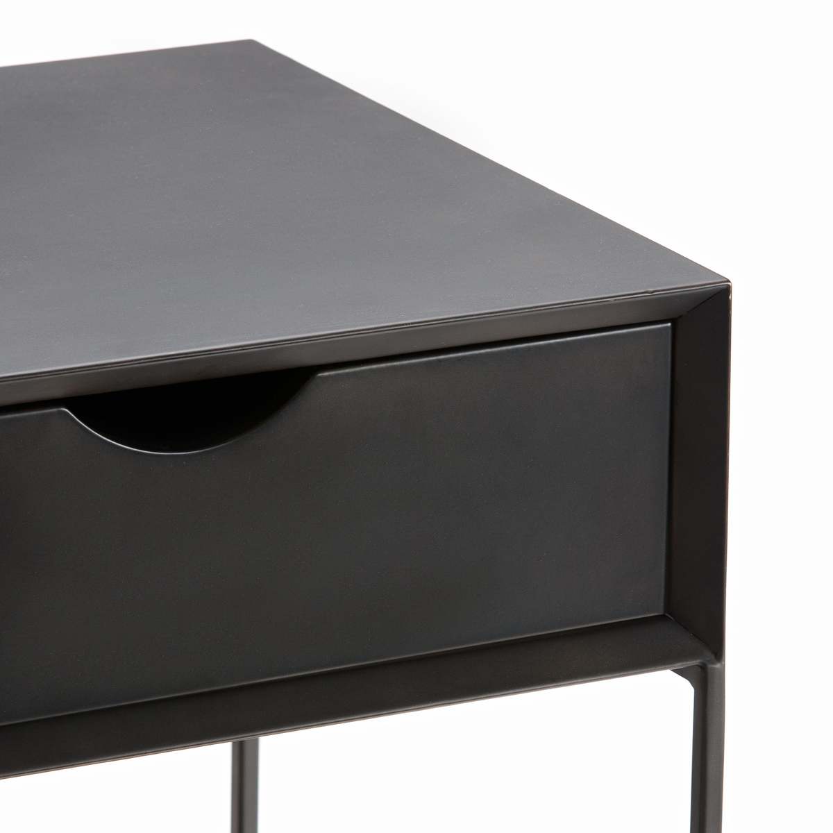 I love the Mambo bedside table for its sleek, minimalist design and versatile appeal. The black metal finish gives it an industrial edge, making it a great fit for modern, contemporary, or even monochrome interiors. It works particularly well in spaces that embrace clean lines and understated elegance, but can also add a touch of sophistication to more eclectic or eclectic schemes. To style it, consider pairing it with a simple table lamp, a small plant for colour, and maybe a stack of books to keep it functional yet effortlessly chic. Its practical drawer makes it ideal for storing nighttime essentials, while the open bottom shelf offers additional space for decorative objects or everyday items.