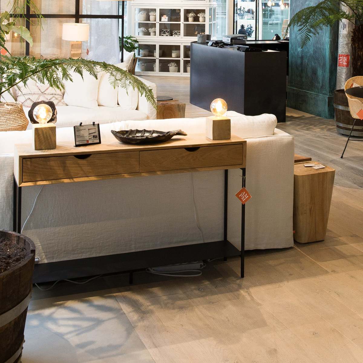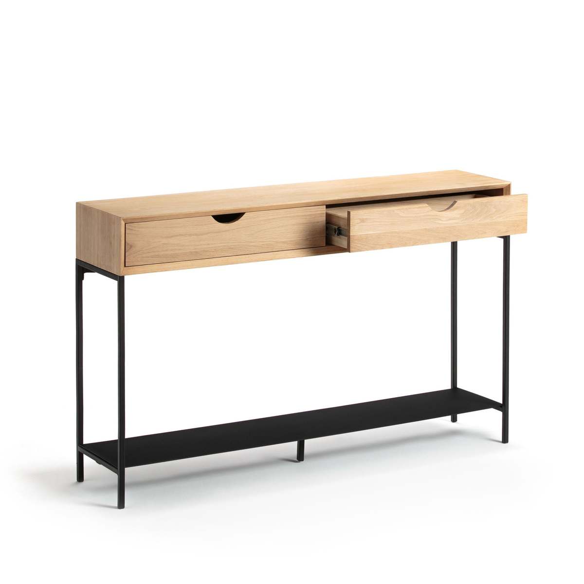 A design borrowed from the fifties for this console that mixes brilliantly, the warmth of a beautiful oak veneer and the rigor of the metal.
