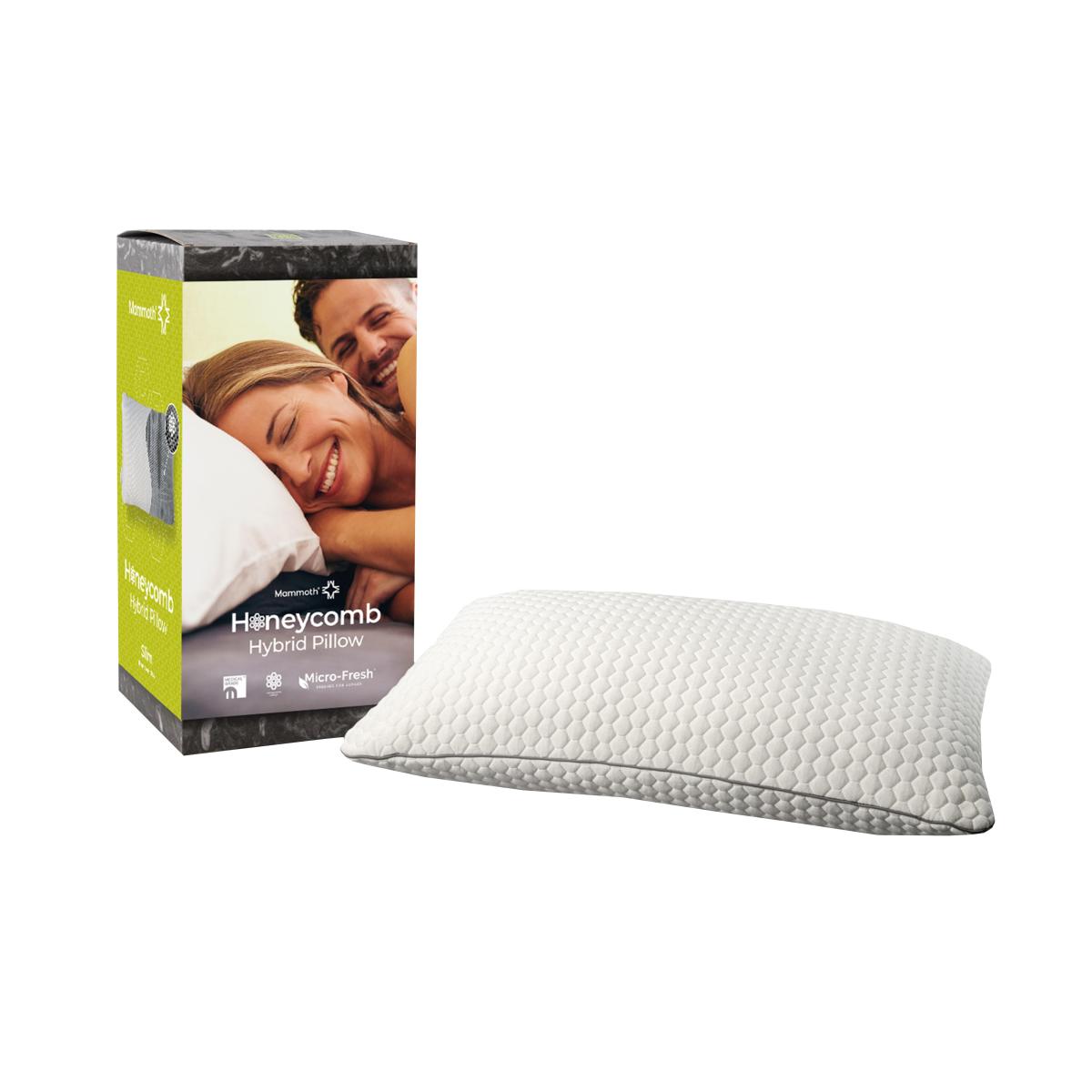 The Hybrid pillow from Mammoth is designed to give you restful, rejuvenating sleep night after night. Why you'll love it. This pillow features Mammoth’s unique Medical GradeT M foam for pressure relief. Optimises postural support to ease away the strains of the day. Sumptuous ball fibre filling wrapped around a layer of SkyFoamT M to keep you cool and comfortable. Micro-FreshT. M anti-bacterial and anti-viral cover keeps your pillow surface hygienic. Exclusive to Furniture Village. This pillow is part of the bedding range at Furniture Village. What you need to know. When the packaging is first removed from your new pillow, a faint odour may be present. This is perfectly harmless and will dissipate after airing. Due to hygiene reasons, we are unable to refund or exchange pillows. Dimensions. Width: 74 cm (30 inches). Depth: 18 cm (8 inches). Height: 48 cm (19 inches).