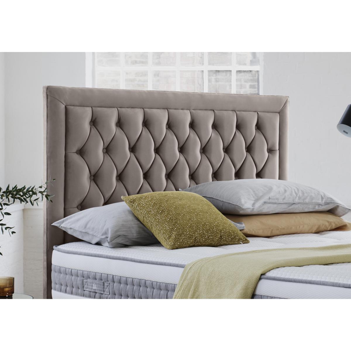 At the heart of the Mammoth Prestige mattress and divan set collection is Mammoth’s body-cushioning Medical Grade™ Foam. This unique material is scientifically proven to improve quality of sleep thanks to its PostureCell™ comfort technology which promotes perfect spinal alignment and absorbs movement while keeping you comfortably cool. The range includes four mattresses, two of which also feature foam-encapsulated pocket springs for optimal support. Beautifully upholstered divan bases offer a choice of optional storage drawer configurations. The Mammoth Prestige collection has been created by Mammoth exclusively for Furniture Village. Made in Britain. Stunning upholstered headboard crafted in Britain. Contemporary geometric style in a choice of fabrics. Designed to complement Mammoth Prestige divan beds. Beautifully blending traditional upholstery techniques with contemporary flair, the floor standing Mammoth Prestige Hendricks headboard makes any divan bed simply more stylish and elegant. It’s wonderfully well crafted by Mammoth, makers of fabulously comfortable and innovative mattresses and divan beds, and is upholstered in a wide range of fabric choices. Beautifully cushioned and extremely comfortable, this stunning headboard features neat rows of traditional buttoning, an arrangement which creates a diamond-patterned effect, framed within a padded border. Exclusively available at Furniture Village, the Mammoth Prestige Hendricks headboard is offered in all standard beds sizes, from single to super king. While it’s intended to be paired with the Mammoth Prestige Pocket 2000 divan base, it will also attach with ease to any divan bed in the Mammoth Prestige collection. Made in Britain. Please note. This Mammoth Prestige headboard is designed to be attached to a Mammoth Prestige divan base and may not attach successfully to divan bases from other manufacturers.