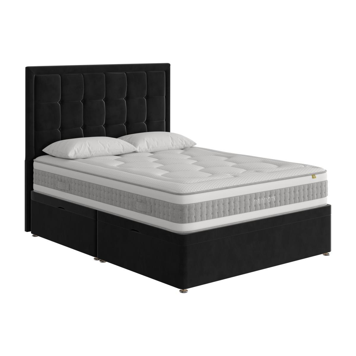 Offering the perfect blend of cooling and cushioning Mammoth Medical Grade™ Foam with high-quality pocket spring support, the mattresses and divan sets in the Mammoth Prestige Pocket Plus 4000 range are designed to support the sleep and health needs of elite athletes – and anyone who demands a wonderful night’s sleep. Made in Britain exclusively for Furniture Village by Mammoth, this well-crafted collection offers a wide choice of mattresses, divan sets with optional storage drawers, and both side- and end-opening ottoman divan sets. Superior Mammoth mattress with Medical Grade™ Foam and pocket springs plus neatly tailored divan base with side-opening ottoman storage. Your perfect bed – and it’s only available at Furniture Village. Why you'll love it. Superior Mammoth ottoman divan set with Medical Grade™ Foam and pocket springs. Mammoth mattresses are the choice of the nation’s elite athletes. Cooler than memory foam, Medical Grade™ Foam is scientifically proven to improve sleep. Relieves pressures, absorbs motion and encourages spinal alignment. Features Mammoth’s PostureCell™ technology. Castellated mattress structure encourages air flow and disperses heat. With 4000 pocket springs in king size arranged in seven zones. Hypoallergenic. Platform-top base has end-opening ottoman storage space. Designed in partnership with the Chartered Society of Physiotherapy. Made in Britain exclusively for Furniture Village. What you need to know. Mattress type: Mammoth Medical Grade™ Foam and pocket spring. Depth: 29 cm. Firmness: Medium feel, although may feel firmer at first. Springs: 4000 pocket springs in king size. Pillow top: No. Fillings: 9 cm of Mammoth Medical Grade Foam with PostureCell™ comfort technology. Borders: Velvet central panel, loop stitching, tape edge on top and bottom. Cover: Polyester with natural fibres in upper surface. Requires turning: No.<. Base type: Platform top with end-opening ottoman storage. Sizes: Single, small double, double, king and super king. Mattress care: Air for 4 hours before using to remove any odour. Allow at least 4 hours for mattress to attain its full size. Indentations caused by settlement of fillings or body weight are normal and are not considered defects. If used on a slatted bed frame, slats must be no more than 7.5 cm apart. Spaces wider than this may cause excess dipping of the mattress and invalidate the guarantee. Always use a mattress protector. Rotate regularly. Divan base care: Take care when opening and closing the ottoman base and do not sit on the bed with the ottoman in the raised position. Clean upholstery weekly using a soft brush or vacuum with the curtain attachment. Professional cleaning advised for oil- and grease-based stains.