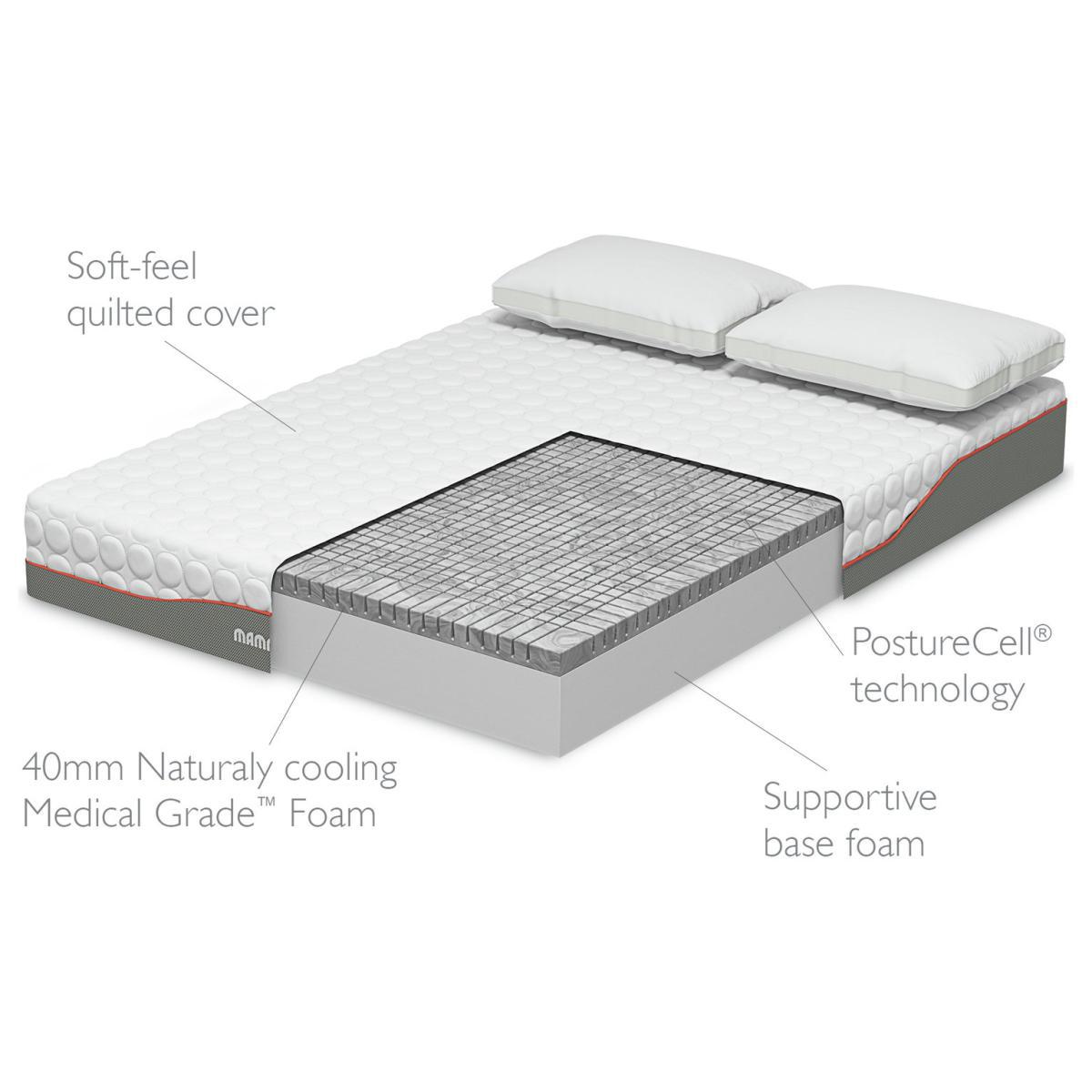 The Rise Plus Mattress is a comfort evolution. It uses healthcare technology and innovates to ease aches and improve sleep. The 240mm deep mattress contains: 40mm naturally cooling medical grade foam – increasing the comfort, Posture. Cells technology, 3 support zones and a deep quilted cover. Mammoth - recommended by health professionals and used by professional athletes. Scientifically tested and shown to improve sleep. Mammoth in exclusive partnership with the Chartered Society of Physiotherapy. Part of the Rise collection. Firm feel. Memory foam mattress. Knit cover with deep quilt finish. No roll together. Mattress size W150, L200, D24cm. No-turn mattress. Rotate mattress regularly. Made in the UK. General information:Manufacturer's 10 year guarantee.