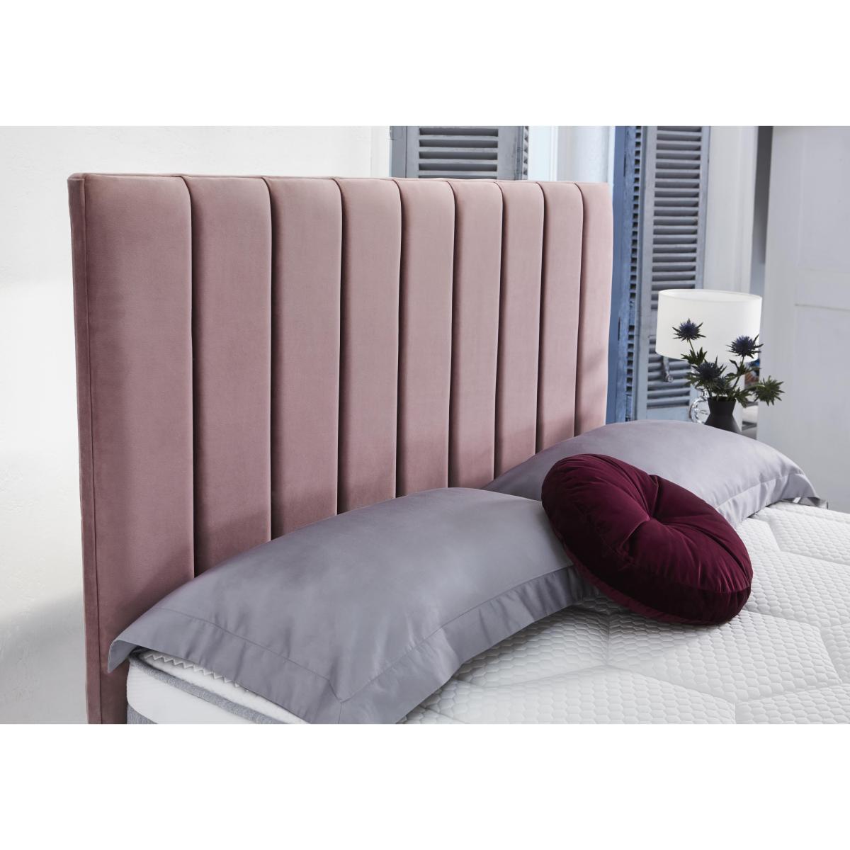 At the heart of the Mammoth Prestige mattress and divan set collection is Mammoth’s body-cushioning Medical Grade™ Foam. This unique material is scientifically proven to improve quality of sleep thanks to its PostureCell™ comfort technology which promotes perfect spinal alignment and absorbs movement while keeping you comfortably cool. The range includes four mattresses, two of which also feature foam-encapsulated pocket springs for optimal support. Beautifully upholstered divan bases offer a choice of optional storage drawer configurations. The Mammoth Prestige collection has been created by Mammoth exclusively for Furniture Village. Made in Britain. Stunning upholstered headboard crafted in Britain. Contemporary geometric style in a choice of fabrics. Designed to complement Mammoth Prestige divan beds. There’s nothing quite like a gorgeous headboard for providing the perfect furnishing touch to a stylish, comfortable and well-designed bedroom, and the fabulous Mammoth Prestige Seagram headboard certainly ticks all the boxes. Made in Britain, this impressive floor standing headboard features neat vertical rows of traditional fluting which give it a modern panelled look, an overall effect that ensures it’ll look beautiful in both classic and contemporary bedrooms. It’s well cushioned too, making it the ideal place for sitting up in bed with a magazine or a book. It’s upholstered from top to bottom in a choice of high quality fabrics that are available in a wide range of sophisticated colours. While it’s designed to accompany the Mammoth Prestige Plus 290 divan base, it will affix easily to any of the divan bases in the Mammoth Prestige collection. The Mammoth Prestige Seagram headboard is available in all bed sizes from single bed to super king size. A Furniture Village exclusive. Please note. This Mammoth Prestige headboard is designed to be attached to a Mammoth Prestige divan base and may not attach successfully to divan bases from other manufacturers.