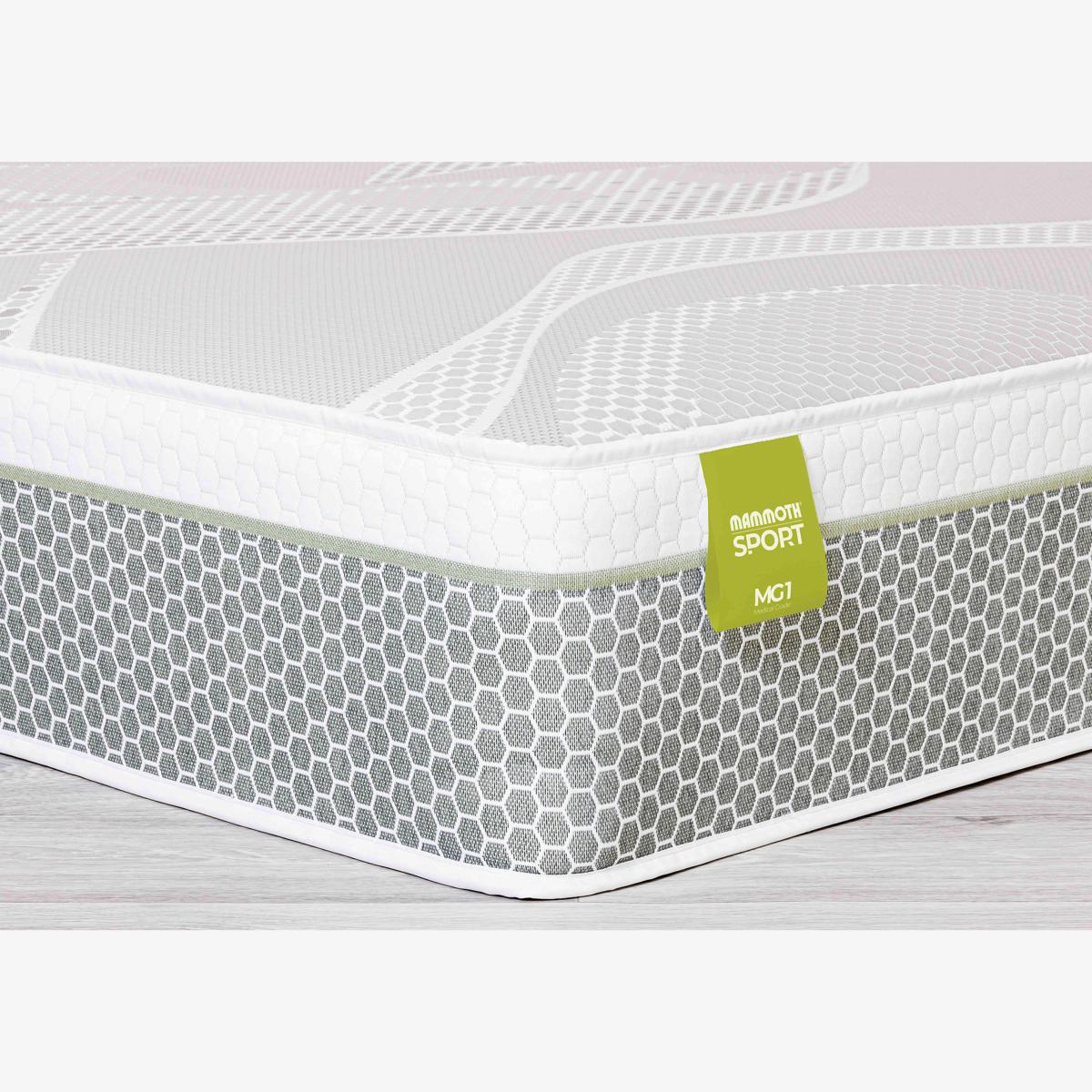The combination of individually pocketed springs and Medical Grade™ Foam means that everyone can sleep like an elite athlete. Advanced firm-feel comfort at a great-value price. Why you'll love it You’ll sleep better with this Medical Grade™ Foam sport mattress. The athlete’s choice – at a great-value price. Firm feel with 1000 pocket springs in king size. Layered with Medical Grade™ Foam, scientifically proven to help improve sleep. Mammoth’s unique foam promises better pressure relief and faster cooling. Hypoallergenic – it’s treated with probiotics to reduce allergens, dust mites and bacteria. No need to turn. Handcrafted in the UK by Mammoth for Furniture Village. Only available online. This mattress is part of the Mammoth Sport range. What you need to know Mattress type: Pocket spring. Depth: 28 cm. Firmness: Firm. Springs: 1000 in king size. Pillow top: No. Fillings: Medical Grade™ Foam, memory foam. Cover: Knitted fabric, woven fabric. Requires turning: No. Sizes: Single, small double, double, king, super king. Mattress care:Air for 4 hours before using to remove any odour. Indentations caused by settlement of fillings or body weight are normal and are not considered defects. If used on a slatted bed frame, the space between slats must be no wider than 7.5 cm. Spaces wider than this may cause excess dipping of the mattress and invalidate the guarantee. Always use a mattress protector. Rotate regularly.