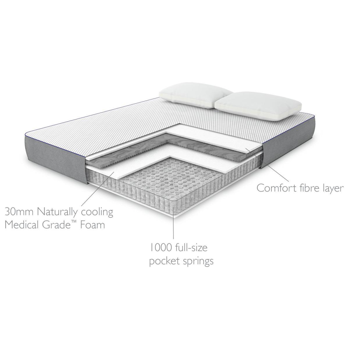 The Mammoth Wake Advance Mattress provides revolutionary comfort and support. It uses healthcare technology to ease away your aches and improve sleep. The 200mm deep mattress contains 30mm of naturally cooling medical grade foam and 1000 pocket springs for advanced support and comfort. Mammoth - recommended by health professionals and used by professional athletes. Scientifically tested and shown to improve sleep. Mammoth in exclusive partnership with the Chartered Society of Physiotherapy. Part of the Wake collection. Medium feel. Pocket sprung mattress with 858 springs. Knit cover with flat top finish. No roll together. Mattress size W135, L190, D20cm. No-turn mattress. Rotate mattress regularly. Made in the UK. General information:Manufacturer's 6 year guarantee.