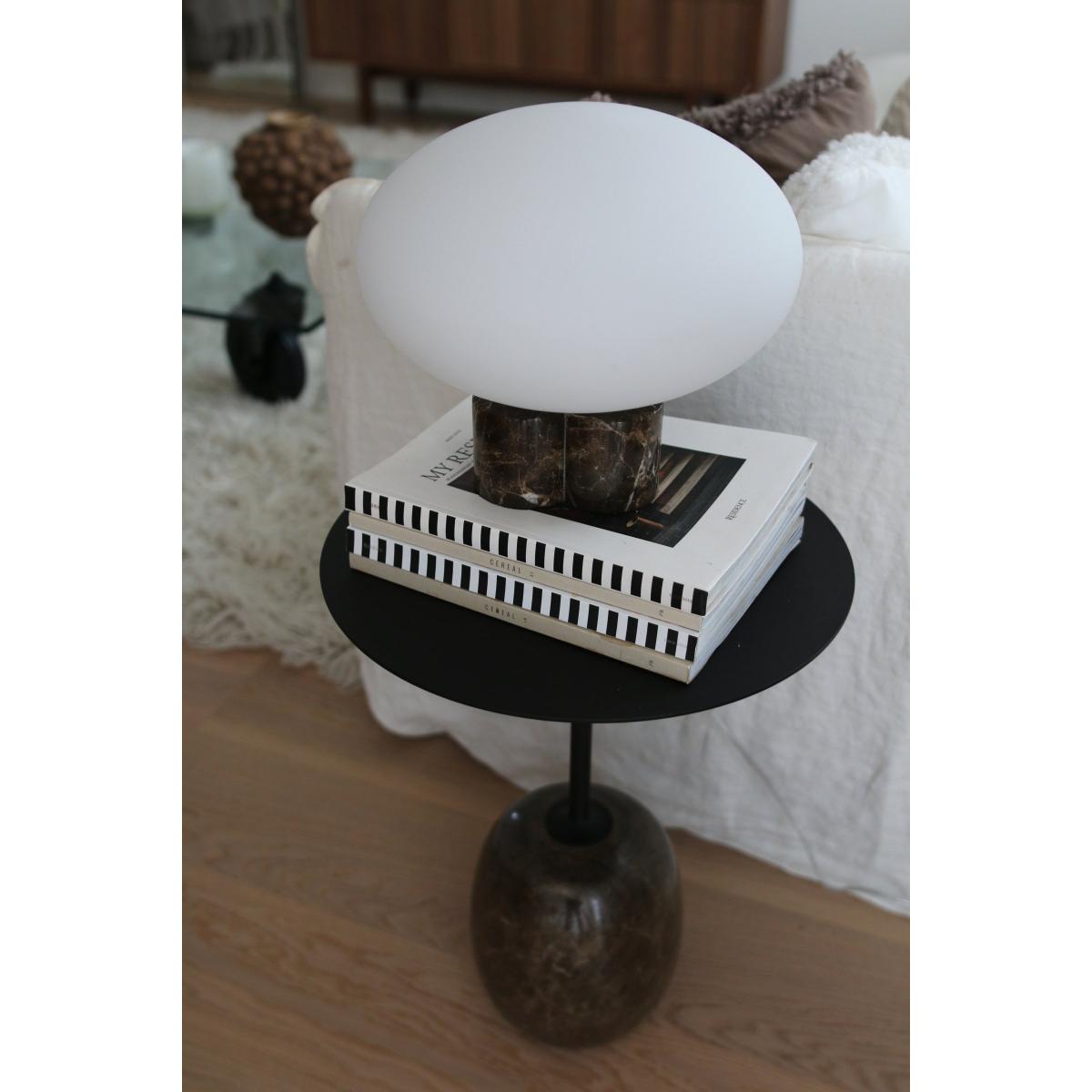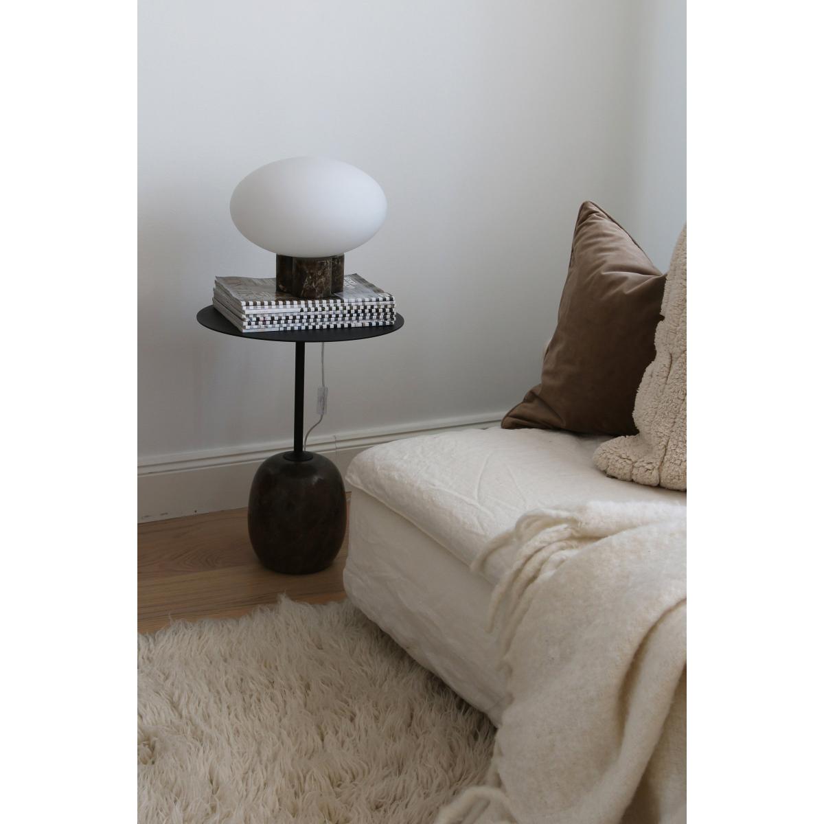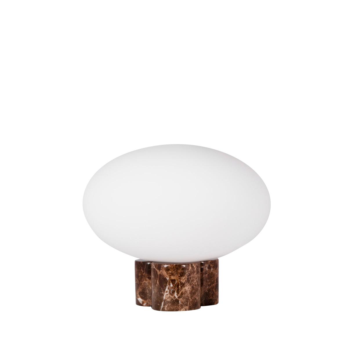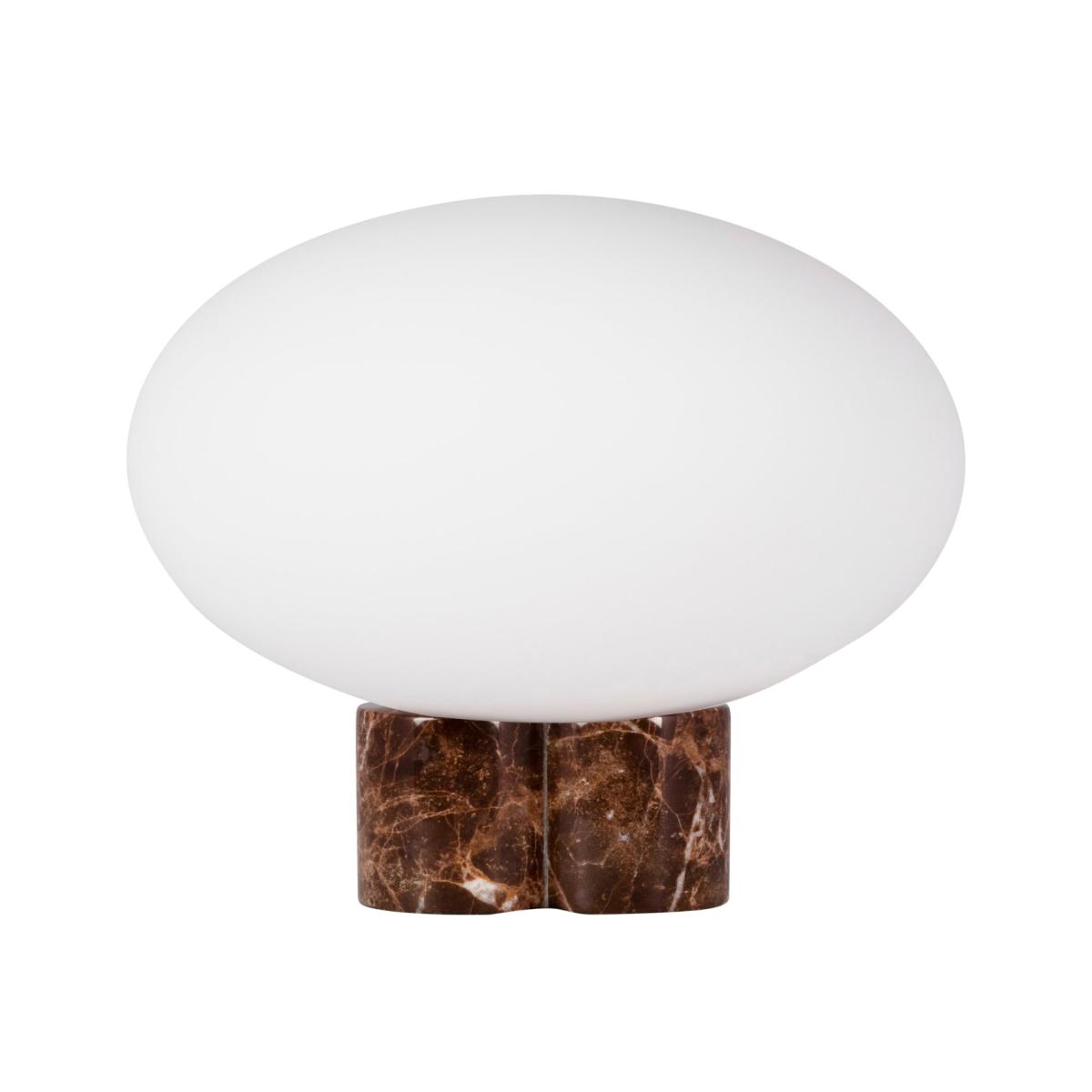 The Mammut table lamp is a versatile piece that adds both warmth and visual interest to a variety of interiors. Its sizeable, oval shade offers a diffused, soft light perfect for creating a cosy atmosphere in living rooms or bedroom corner setups. The brown marble base provides an earthy, tactile contrast that works especially well in contemporary, Scandinavian, or even eclectic spaces. To style it effectively, consider pairing with other natural materials like wood or textiles in neutral tones to highlight its organic appeal. It’s also practical as a bedside or side table lamp, providing ambient lighting while serving as a sculptural accent when not lit.