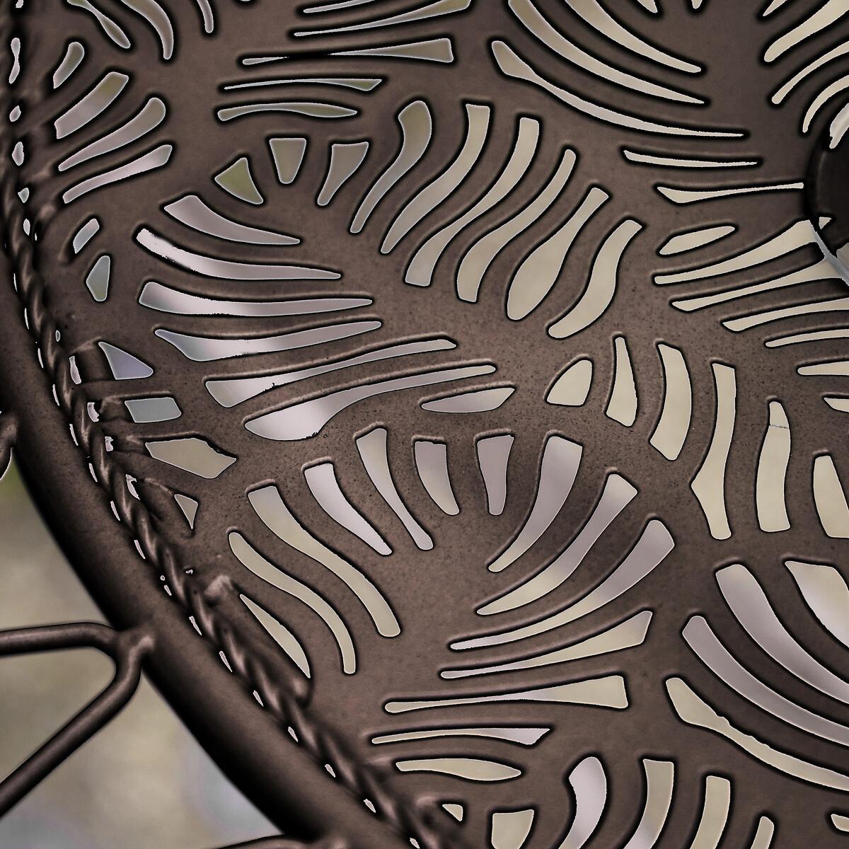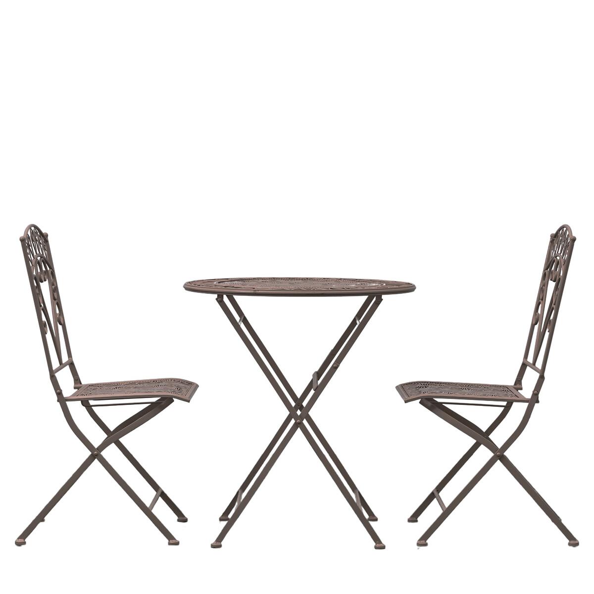 Please note: this product cannot be delivered to all Offshore Islands, Northern Ireland or Republic of Ireland. Ideal for balconies, smaller outdoor spaces and cosy garden corners, this lovely set offers a bistro cafe style. Crafted from metal in an unusual lovely pink finish, the design is inspired by nature, with the pattern on the table top and chair seats evocative of leaves and trees. The table and chairs fold for easy storage when not in use. It is also available in a deep metal patina finish. Direct sun exposure can cause metal to heat up. Always take care when out in the sun. Composition:Iron 100%Product Dimensions:Table: 70x70x76cm - 6kg. Chair: 40x47x92cm - 5kg. Please remember to measure your available space before ordering. Packaged Dimensions:Parcel 1: 101x72x10cm - 7.2kg Parcel 2: 107x43x19cm - 10.65kg. This product will be dispatched by one of our trusted suppliers. You’ll be contacted by their selected courier about your delivery.