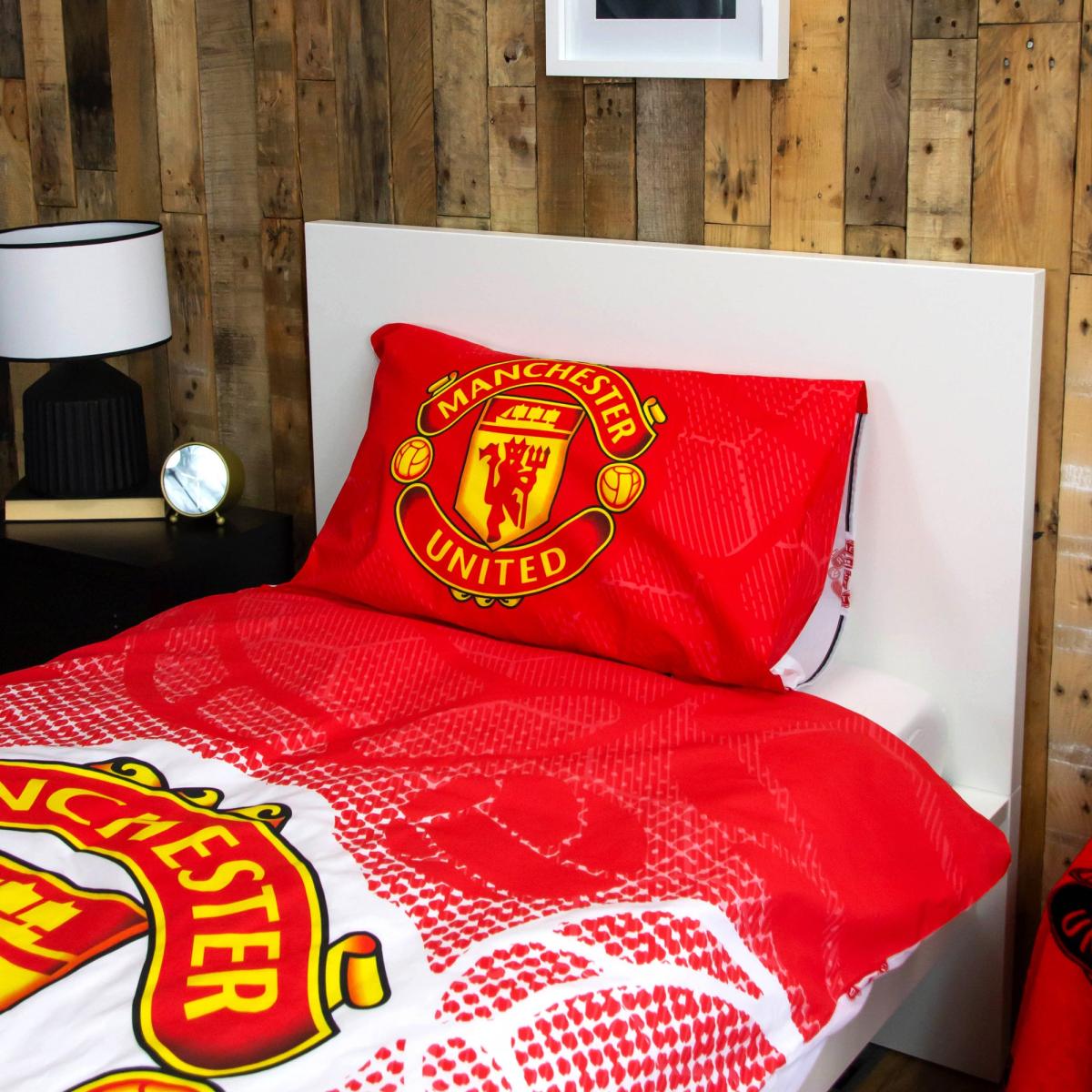 Manchester United Crest Single Duvet Cover and Pillowcase Set Red