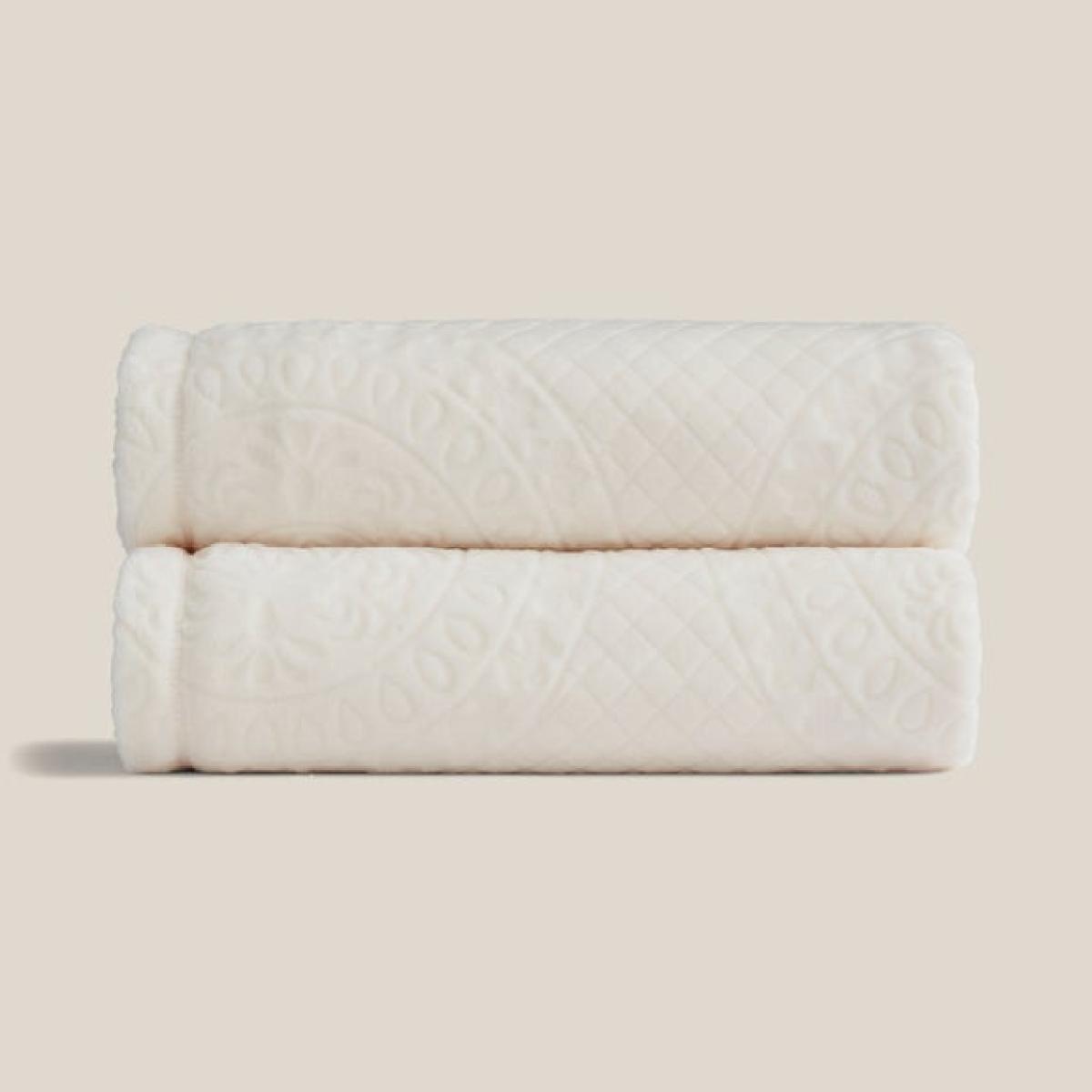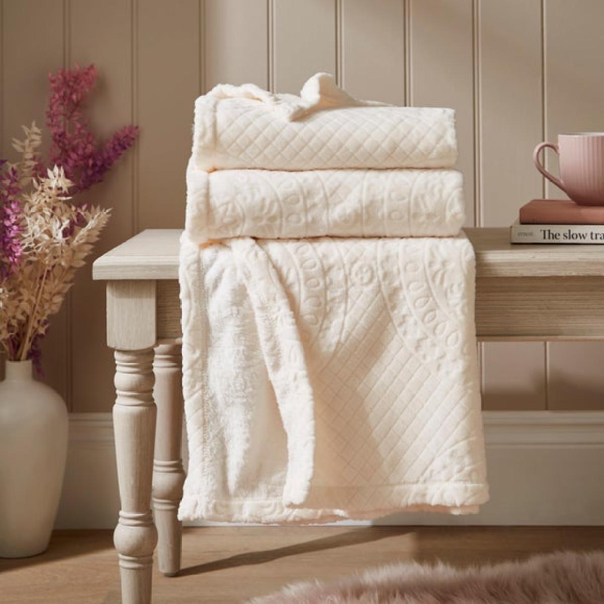 * Mandalay pattern * Choice of colours * Soft, plush fleece * Two sizes available Add warmth and texture to your space with the Mandalay Fleece Throw, available in soft mushroom or ivory tones. The embossed mandala pattern adds a real global style, and the plush fleece fabric offers an irresistibly cosy feel, perfect for curling up year-round. Choose from two sizes, ideal for draping over sofas, layering on beds or snuggling on the sofa. Finished with reinforced edges for long-lasting durability, and machine washable for easy care, it’s a stylish and practical addition to any room.