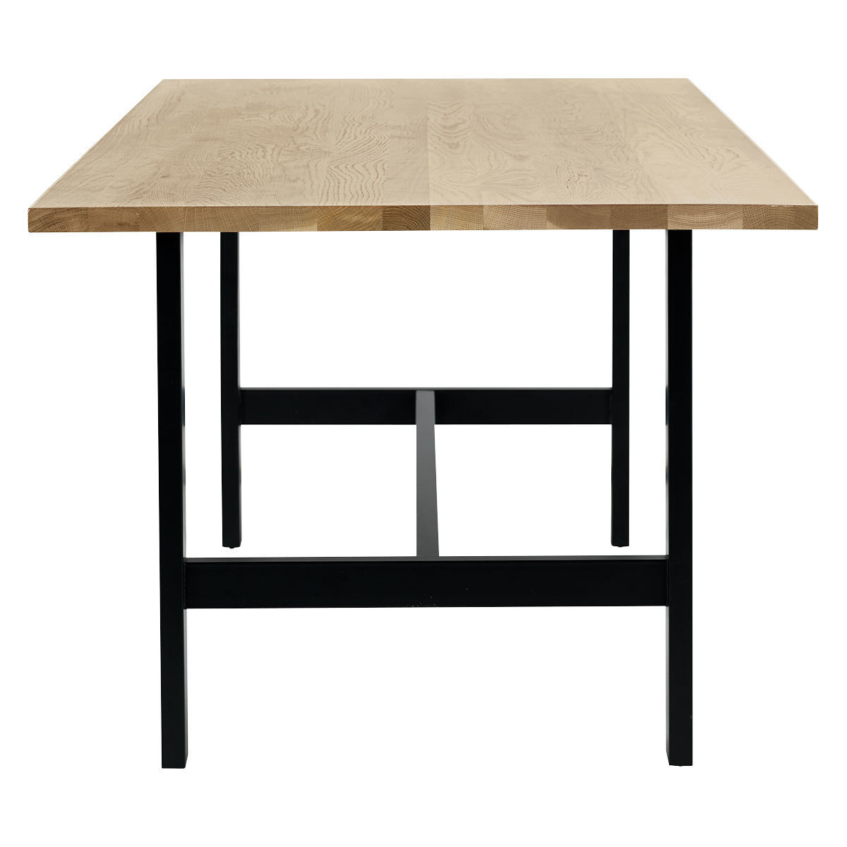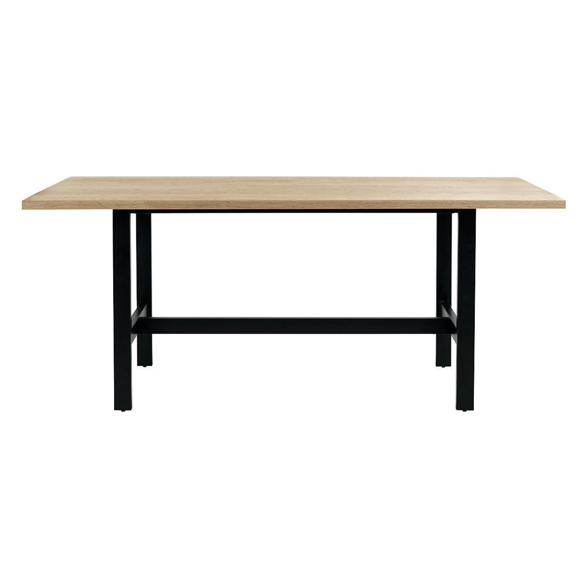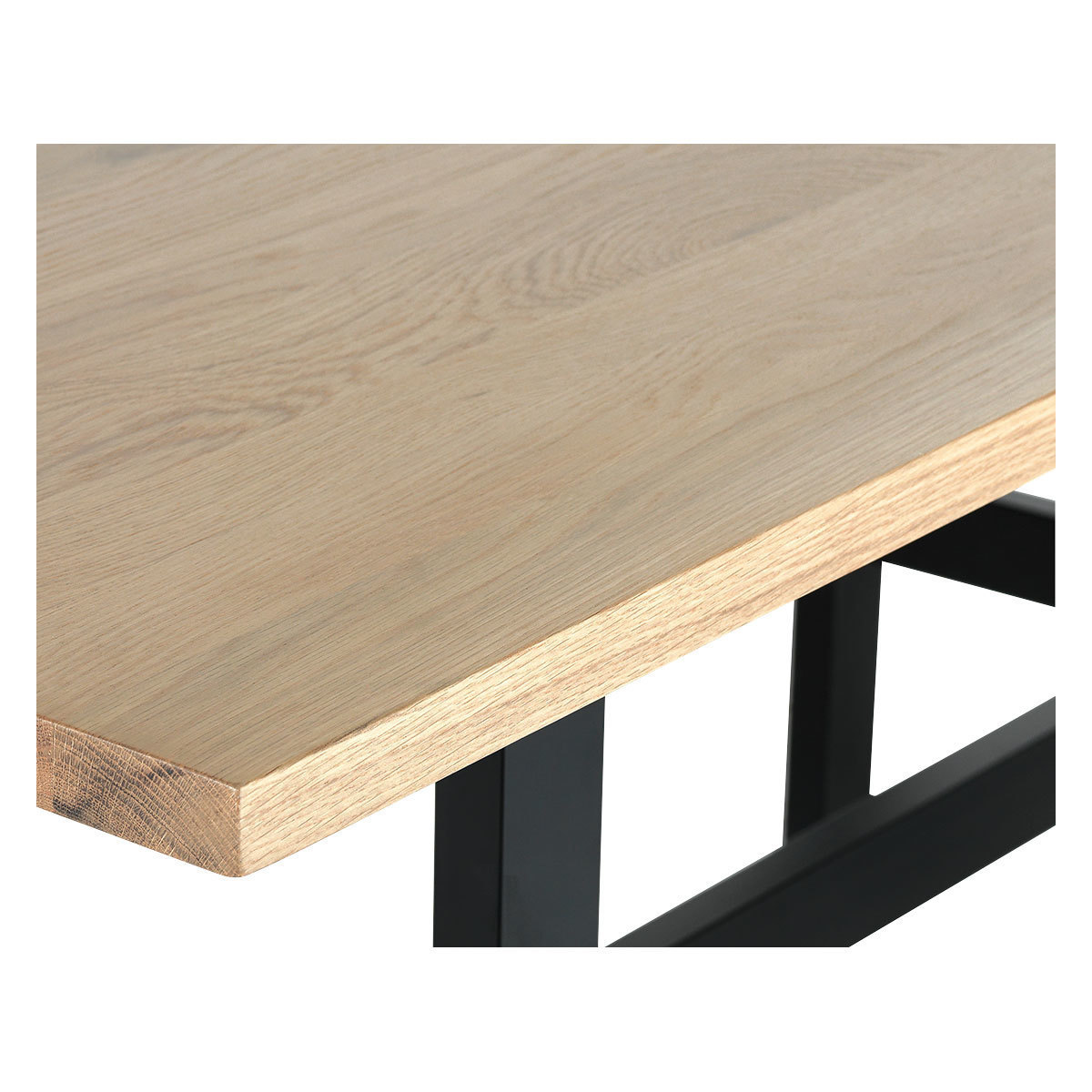 Manford 6 Seat Solid Oak Dining Table With Black Metal Frame, Natural